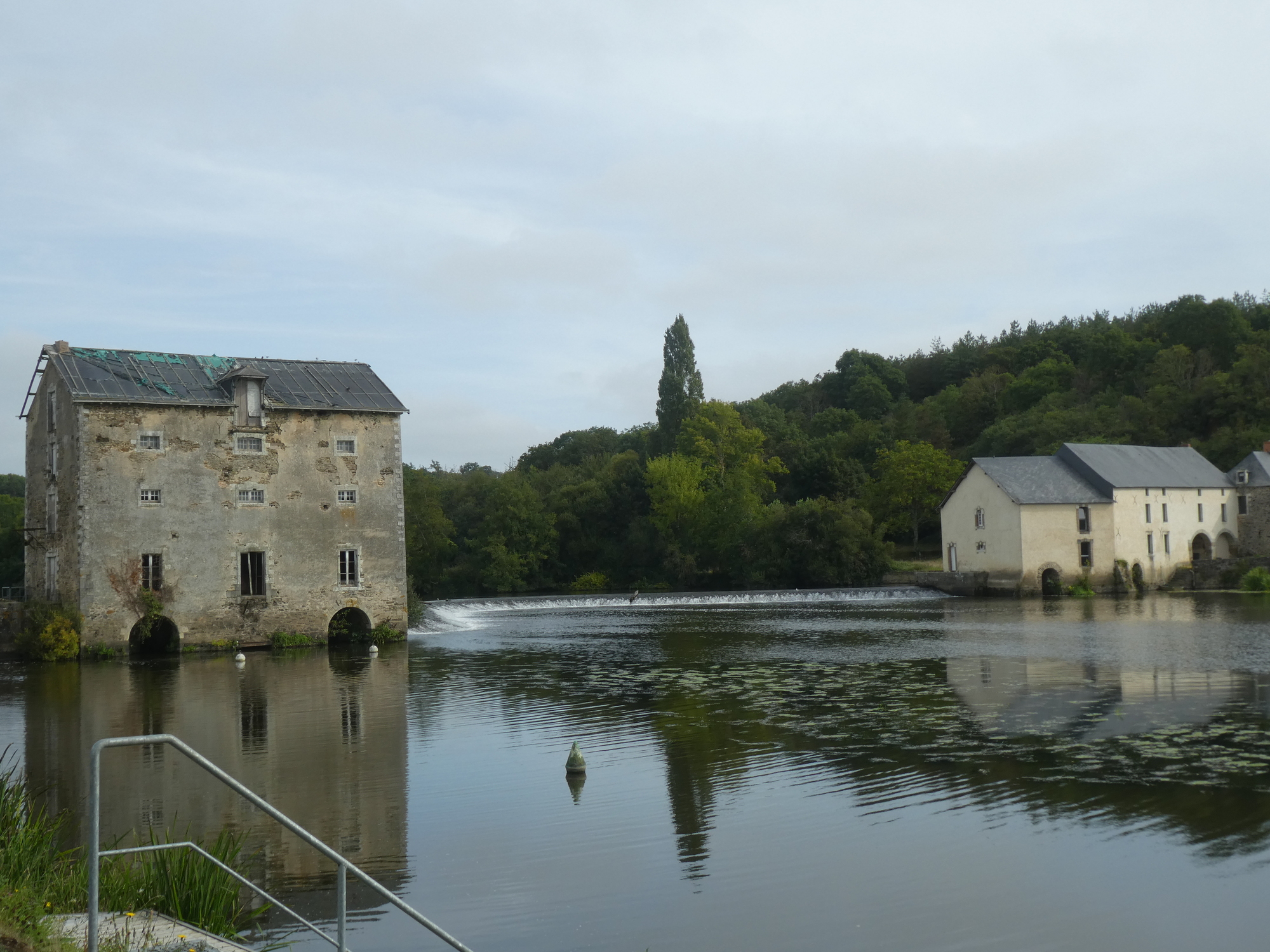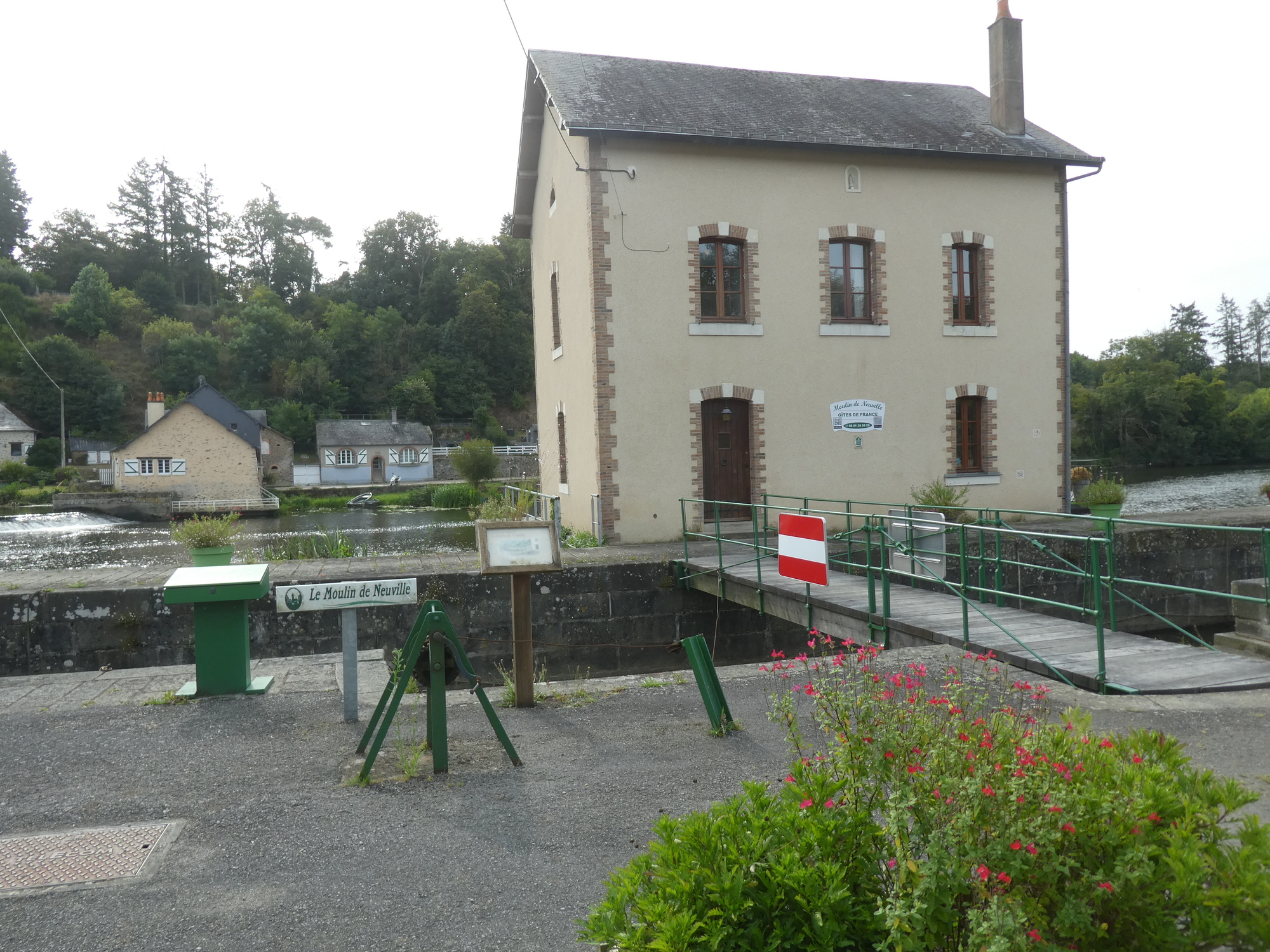 Some of the riverside buildings were rather large and grand - like this one. Whatever its original function, it didn't seem much in use right now. OK, a little digging reveals this as Château de la Rongère: In the 13th century, the old feudal place of Rongère controlled the river below. This feudal fiefdom has been passed down from generation to generation in the same family since 1294: at that time, Henri de Fougères, Lord of Rongère, sold the estate to Macé de Quatrebarbes who passed it on to his current descendants, the Chavagnac family, to this day.The current castle was therefore built very close to the feudal mound, the only vestige of the old stronghold.Three wings were successively built, Louis XIII, Louis XIV, Louis XV, the first two of which were restored in 1890. A very beautiful "French garden" created at the beginning of the 18th century added to the majesty of the place. Sculptures embellished the site in the 19th century. Like most chateaux today , this is one you can visit for a small fee.