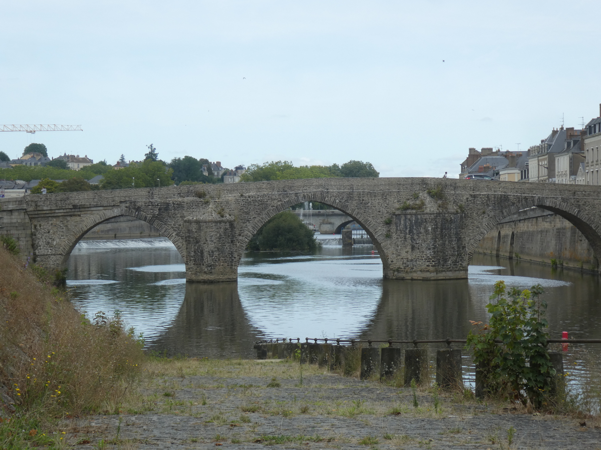 We reached Laval, which is the major city on the Mayenne before Mayenne city itself. Laval featured a beautiful medieval church, and an old stone bridge. There was probably a modern city, off the river, but we characteristically just stuck to the trail.