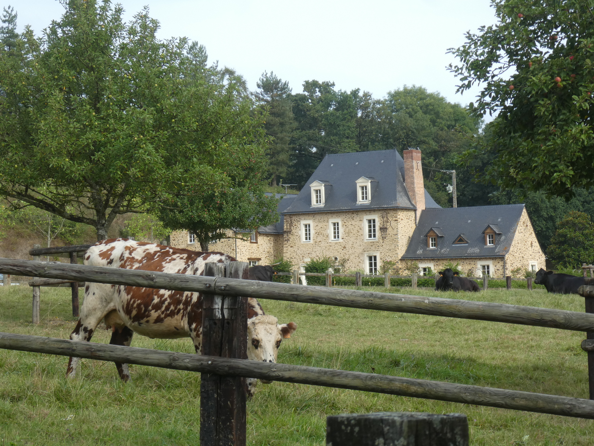 There was also a smattering of lovely stone houses. This one featured a Normande cow, a breed we would love to have at home. They are small and docile, and with those cute rings around the eyes.