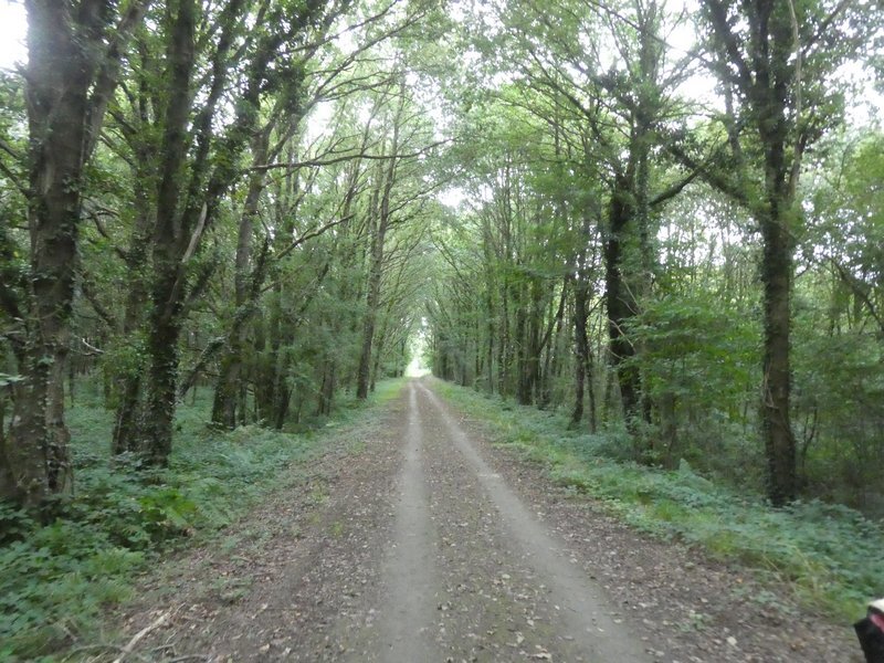 Near Ceauce, the Francette gave the option of a direct shot by rail trail to Domfront, vs a meander by St Fraimbault (not the same St Fraimbault we had visited earlier). We chose the rail trail and did not regret it, because the surface was fine and the scenery good too.
