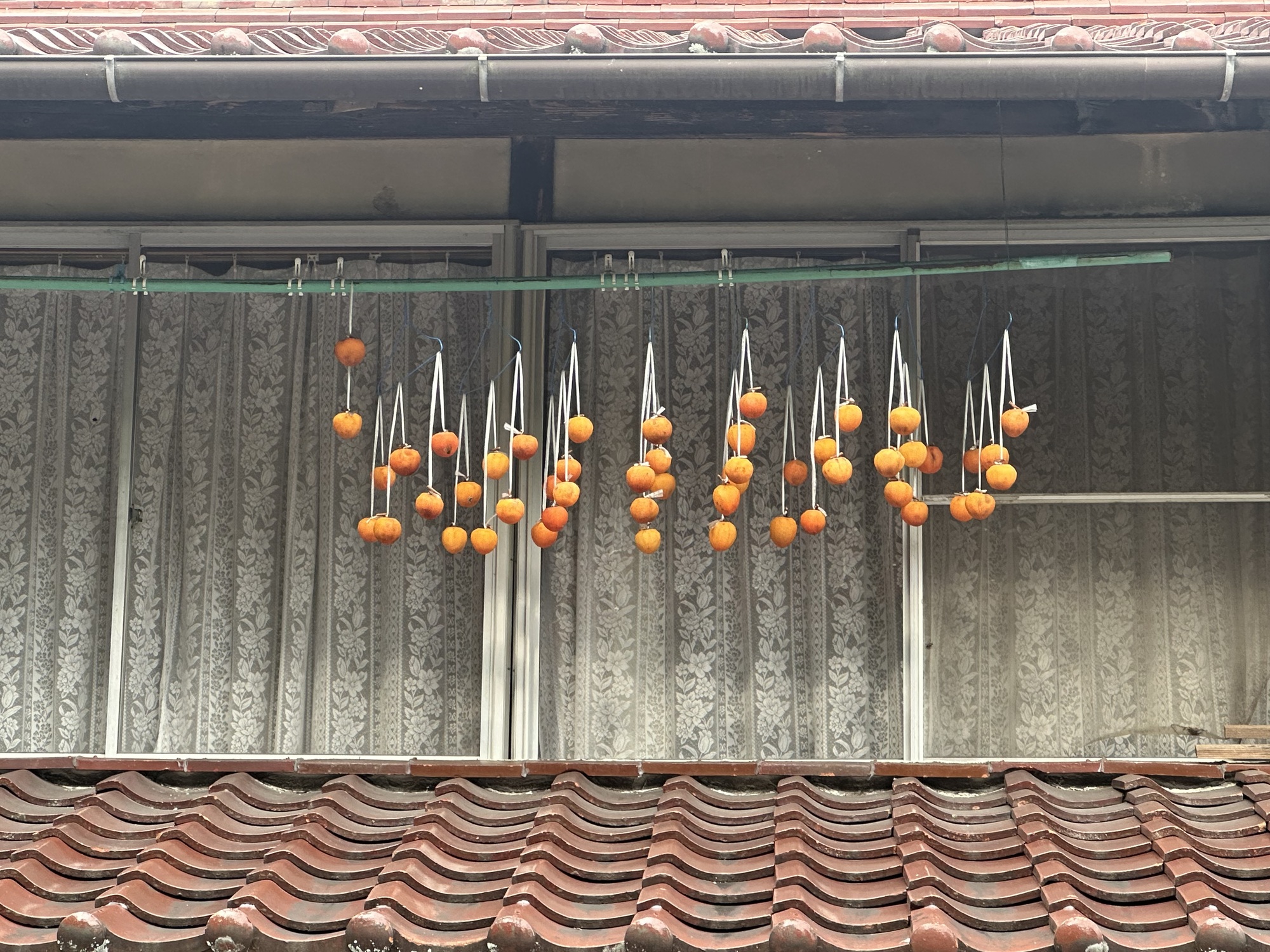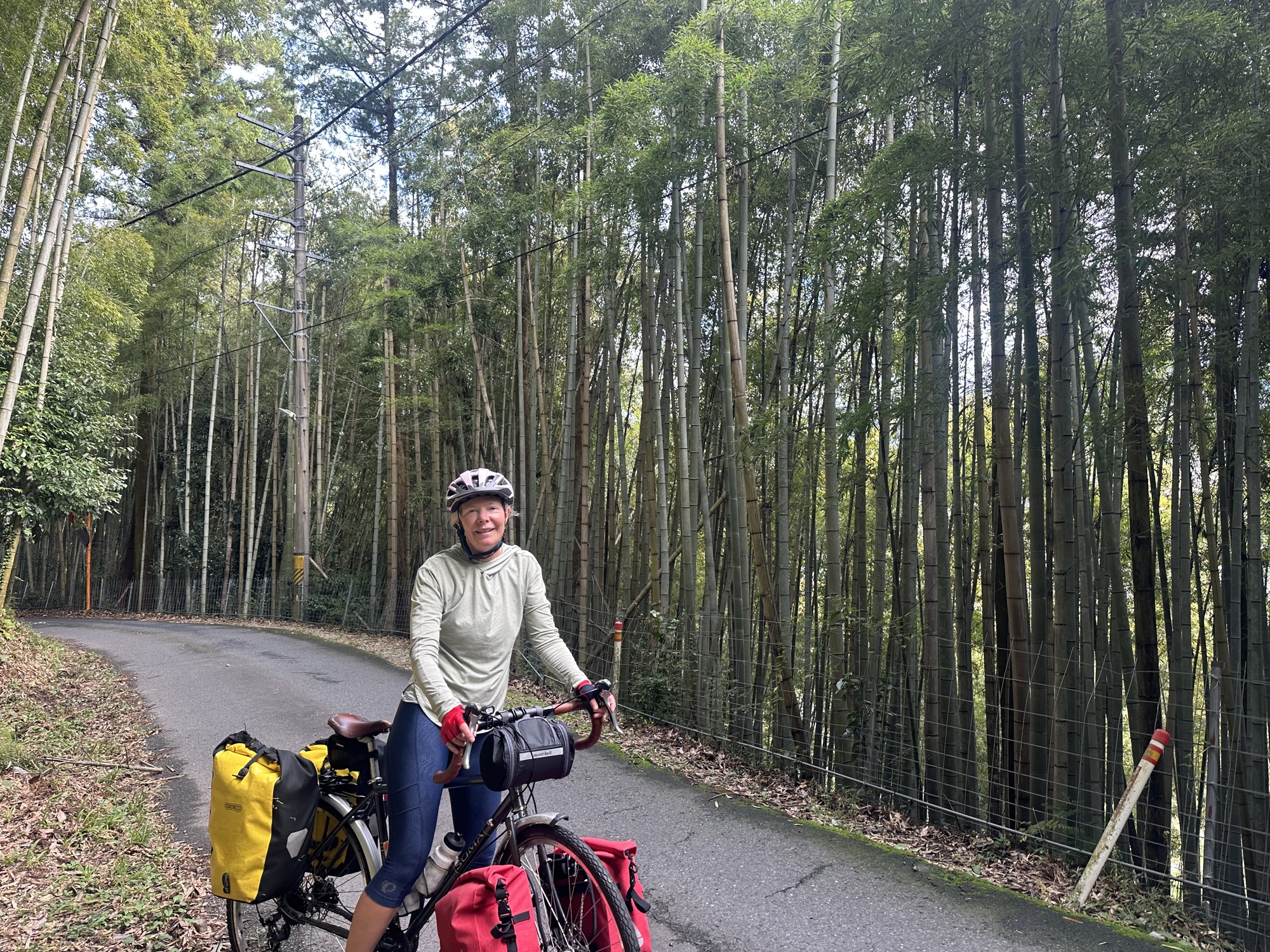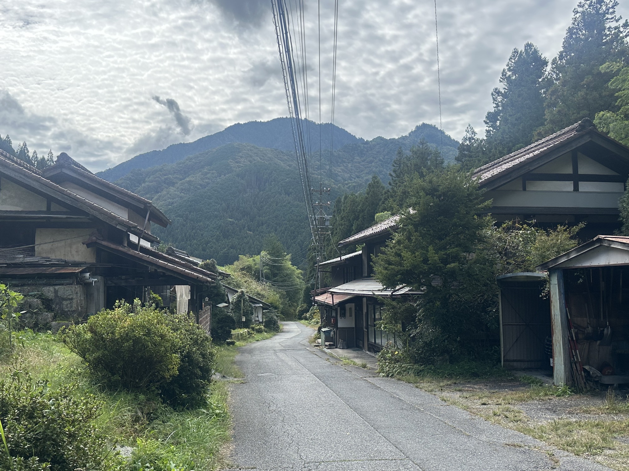 Once we turned west and left the Kiso valley to head to Nakatsugawa (a large town where we’d been able to find accommodation — guest house prices in the touristy post towns were waaaay out of our budget), Komoot did the Komoot thing and found crazily obscure ways cross country to get us into town. Tracks across rice paddies, roads barely 6 feet wide careening into river valleys and back up, back alleys connecting two normal sized roads. It all worked and provided a unique look at the spaces between the big roads, but often there was that feeling of … really??… then we’d pop out in a suburb or behind a factory or right onto the only bridge for miles.