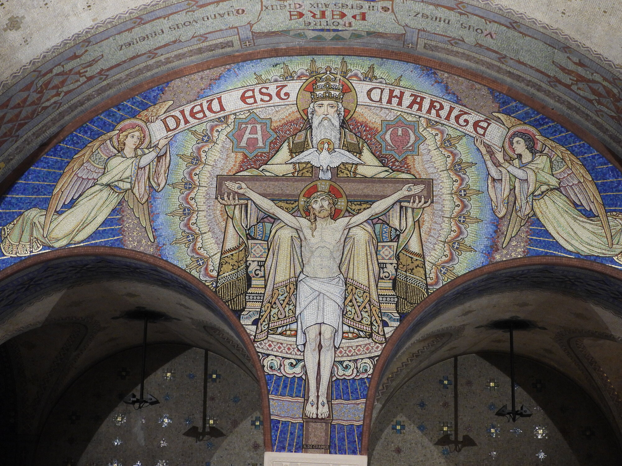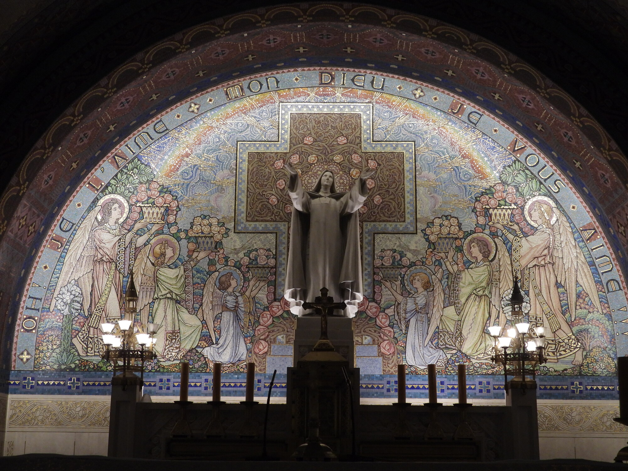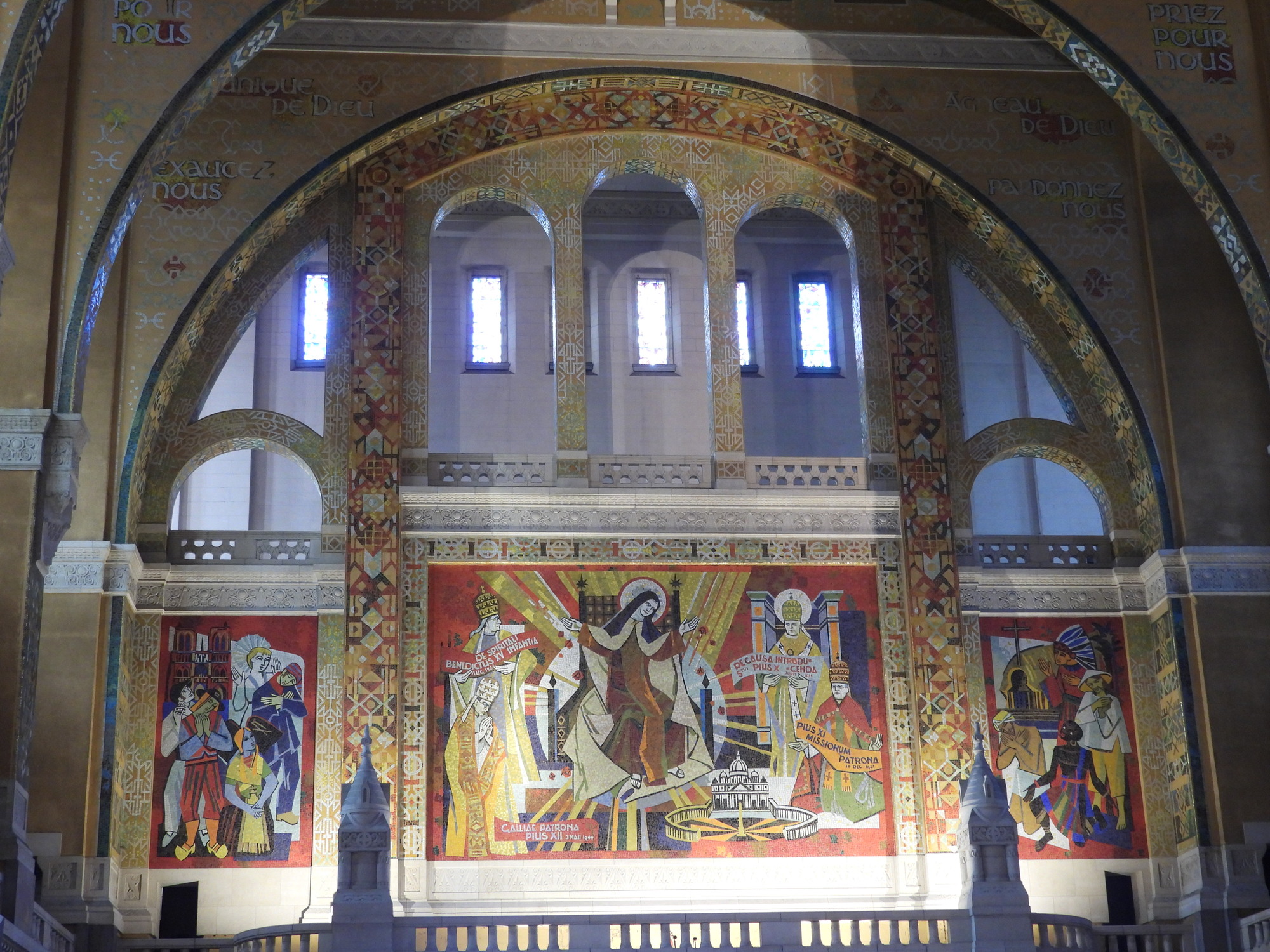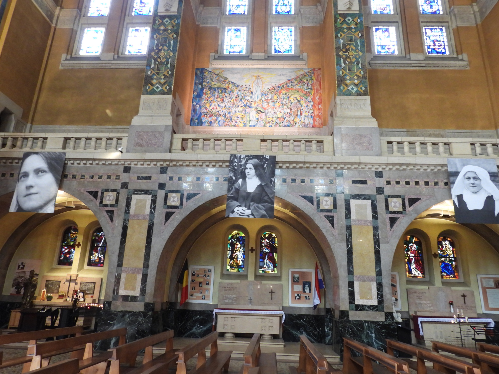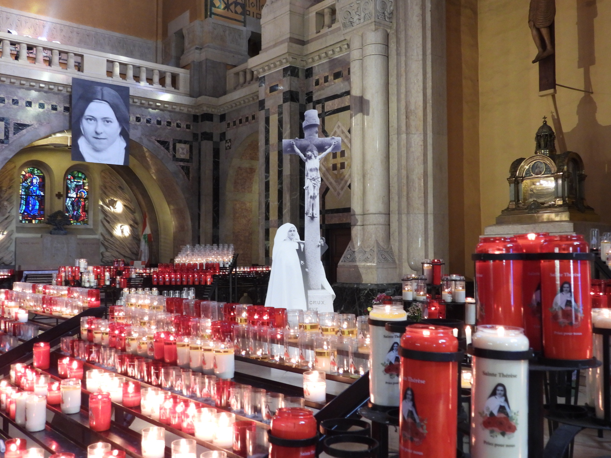 Sort of strangely, I thought the basilica was a "standard issue" mind boggling, highly decorated basilica. That's because, huge and attractive as it was, at least in the main hall, Sainte Therese seemed to be just MacTac'd on to the traditional Christian imagery, with photos literally tacked to the walls.