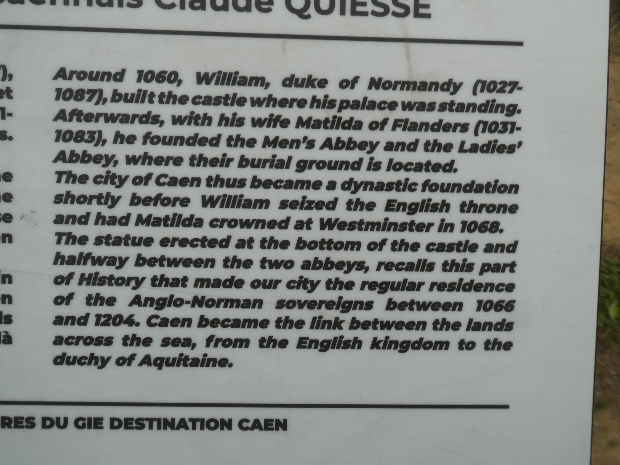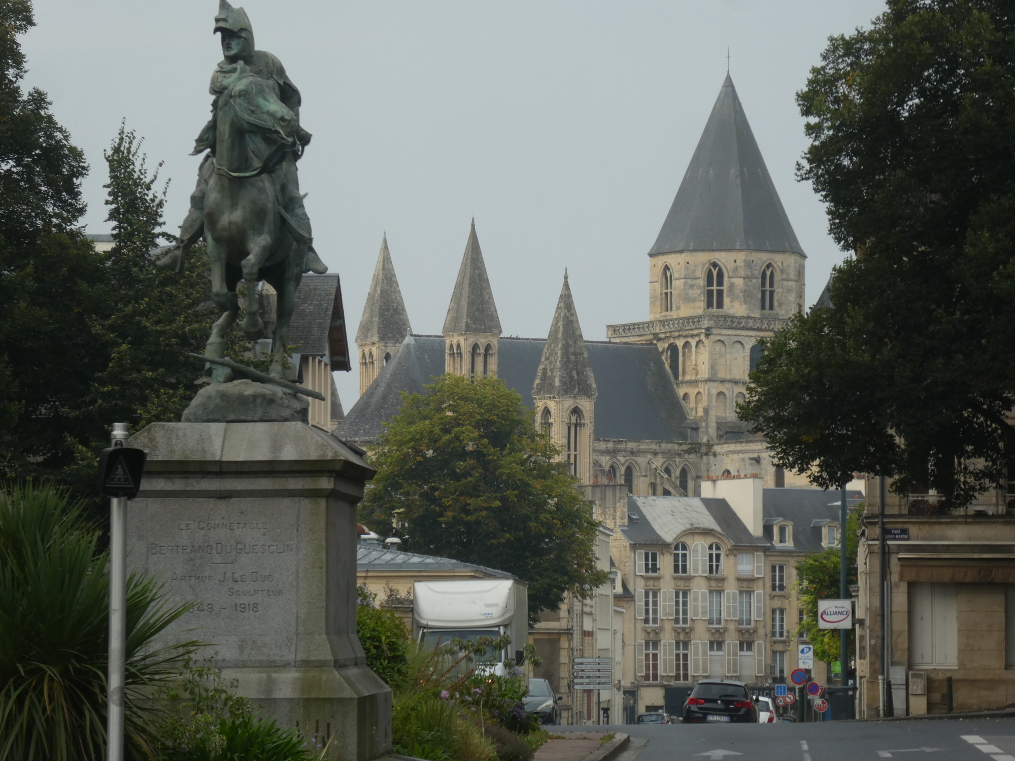Across the street from the church is the huge, fortified chateau. In front of it is a stylized statue depicting the founders, William the Conqueror and his wife Matilda of Flanders.