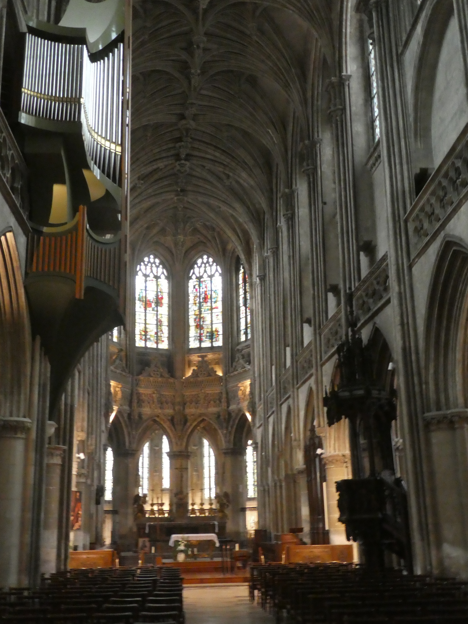 When we made it (over hill and dale) to Lisieux, we rolled up first to yet another eglise St Pierre. Now the thing about Lisieux is that is was home to Sainte Therese of Lisieux. Sainte Therese is known world wide, and especially to us, since there is a town of that name near Montreal. In fact, because of Sainte Therese, Lisieux is second only to Lourdes as a French pilgrimage site. But here was St. Pierre, and Dodie thought I should check it out, before we regrouped and went looking for Sainte Therese.