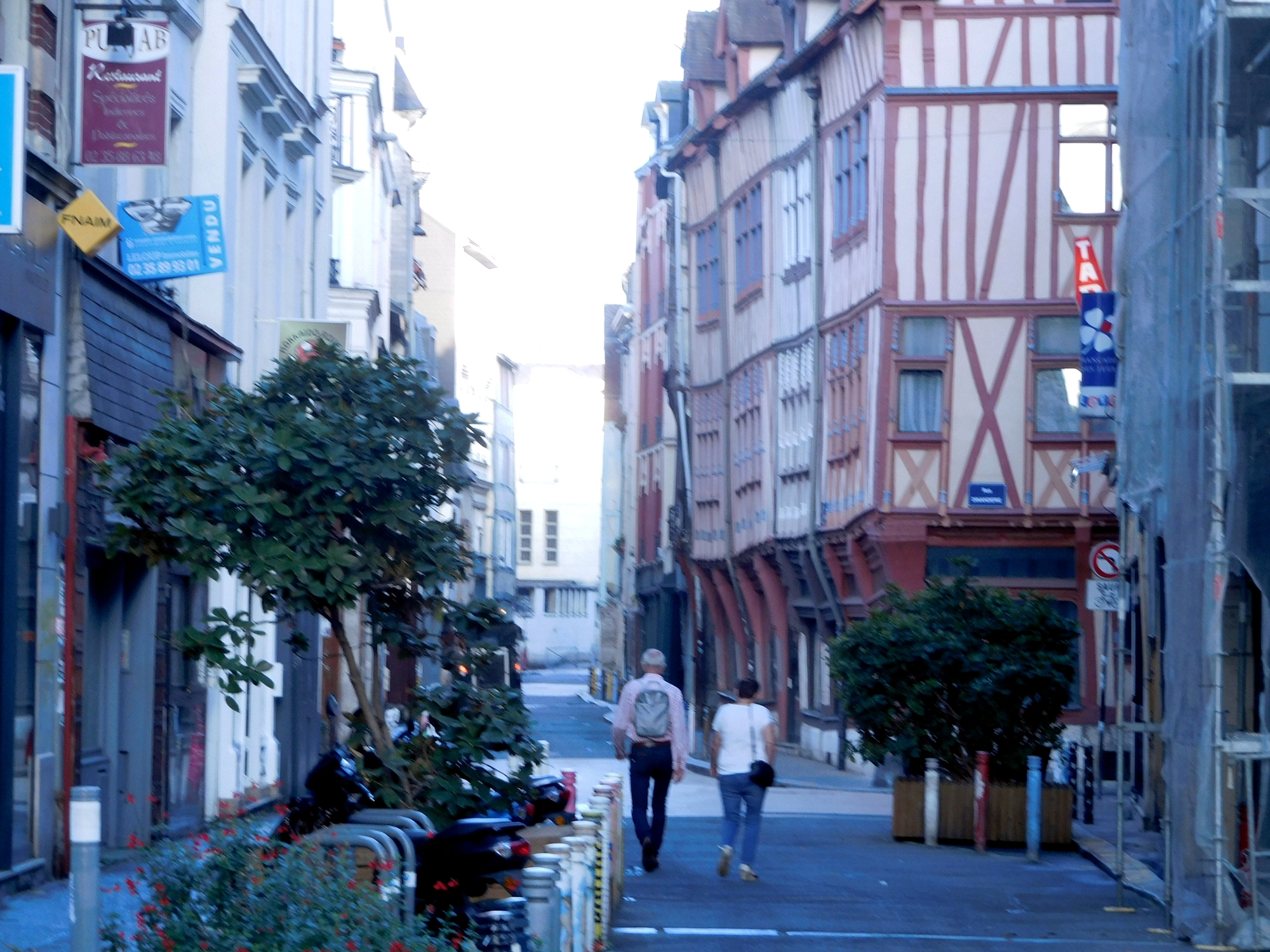 We had passed by the Jeanne d'Arc church downtown yesterday, and noticed its bizarre modern design. It did not attract us to go in then, but a little further research did indicate that it has some cool 16th century stuff inside. Too bad for today though, since it would not open until 10. We contented ourselves with just looking at the streets as we made our way out of town. There are in fact a number of famous and beautiful streets, and we definitely had not and did not hit them all.