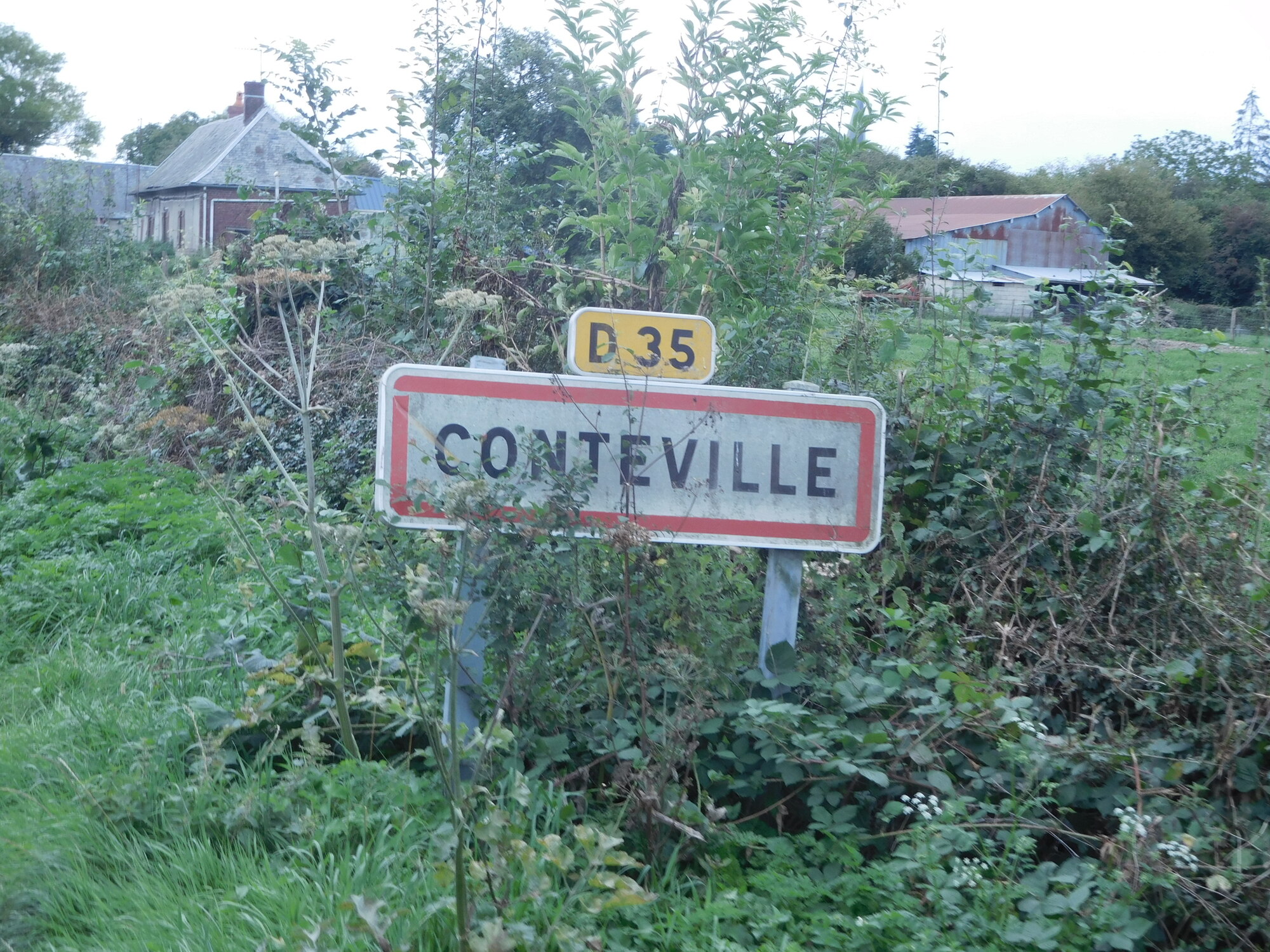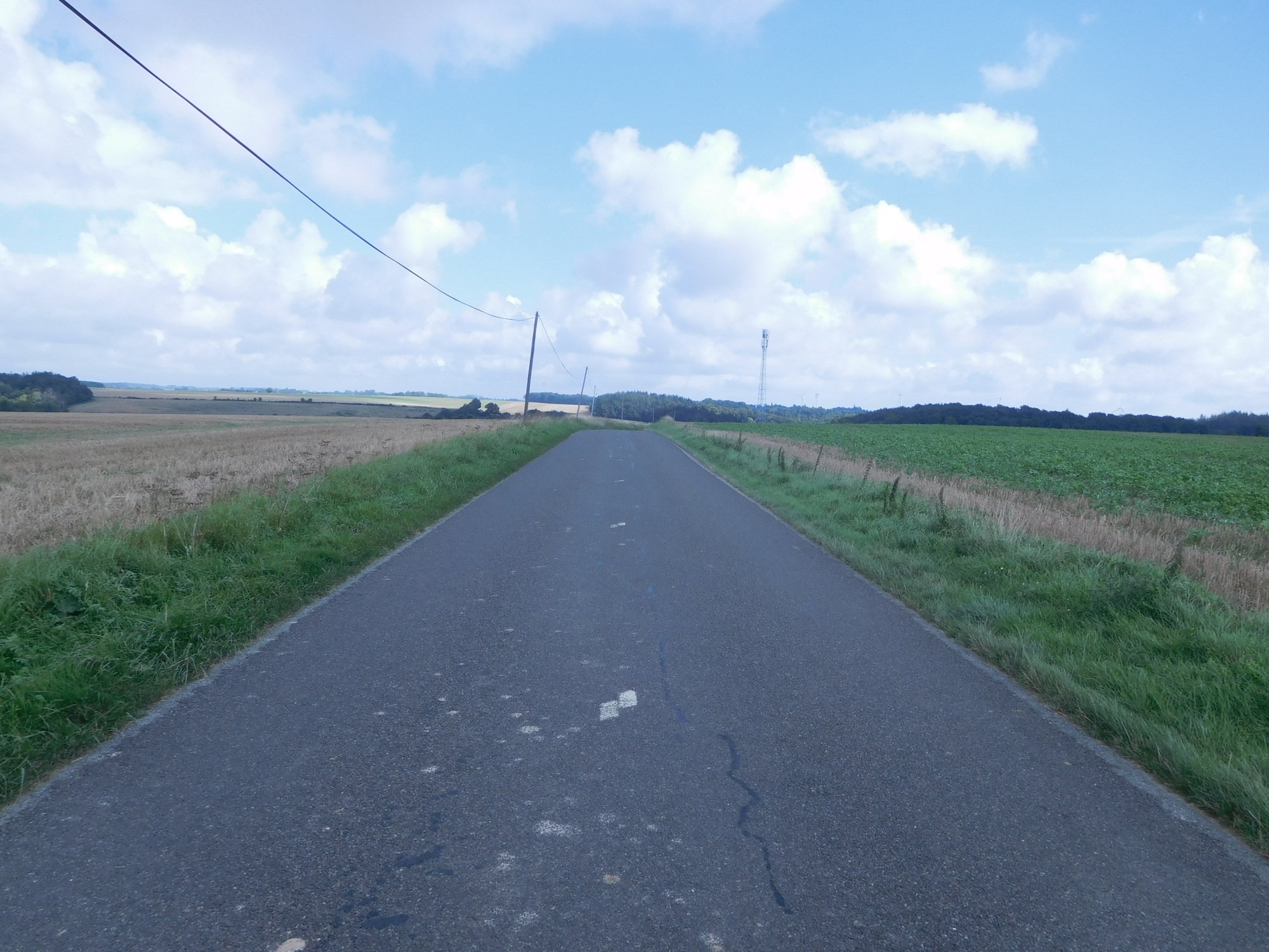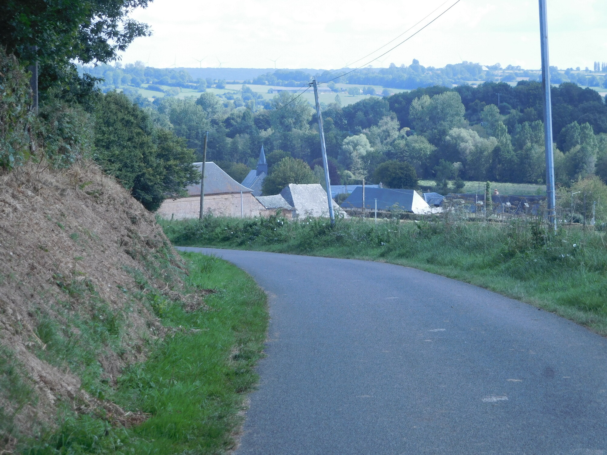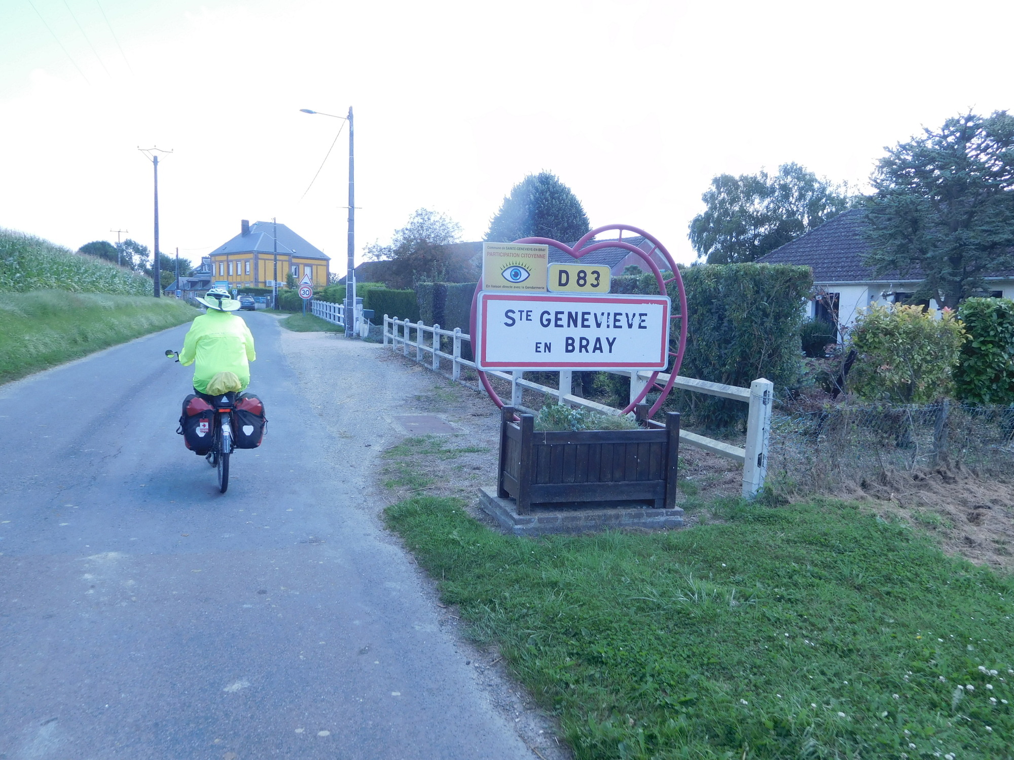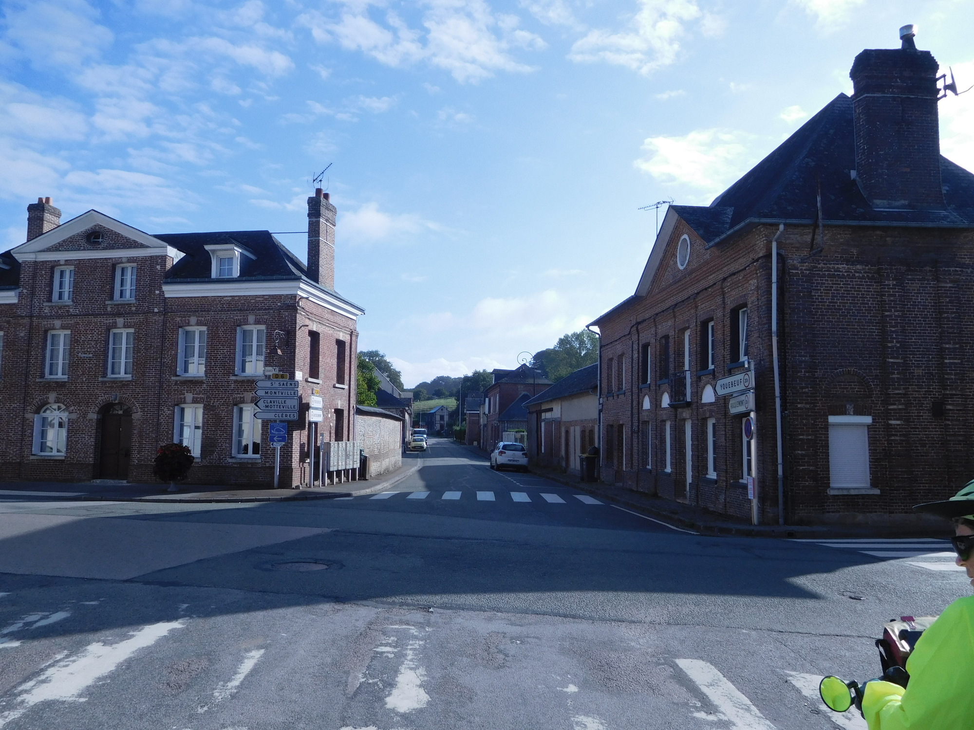 As we approached Conteville, Dodie was getting really exhausted. I had been watching Google Maps, and could see that 90, then 50, then 10 meters of climbing remaining, and then 120 meters of descent, over a dozen kms, into Aumale. In short, Conteville was the top of some kind of bloody mountain! This was borne out when someone in a small truck pulled beside me and confided that this was the highest spot in the Departement. "Yeah", tell me about it!