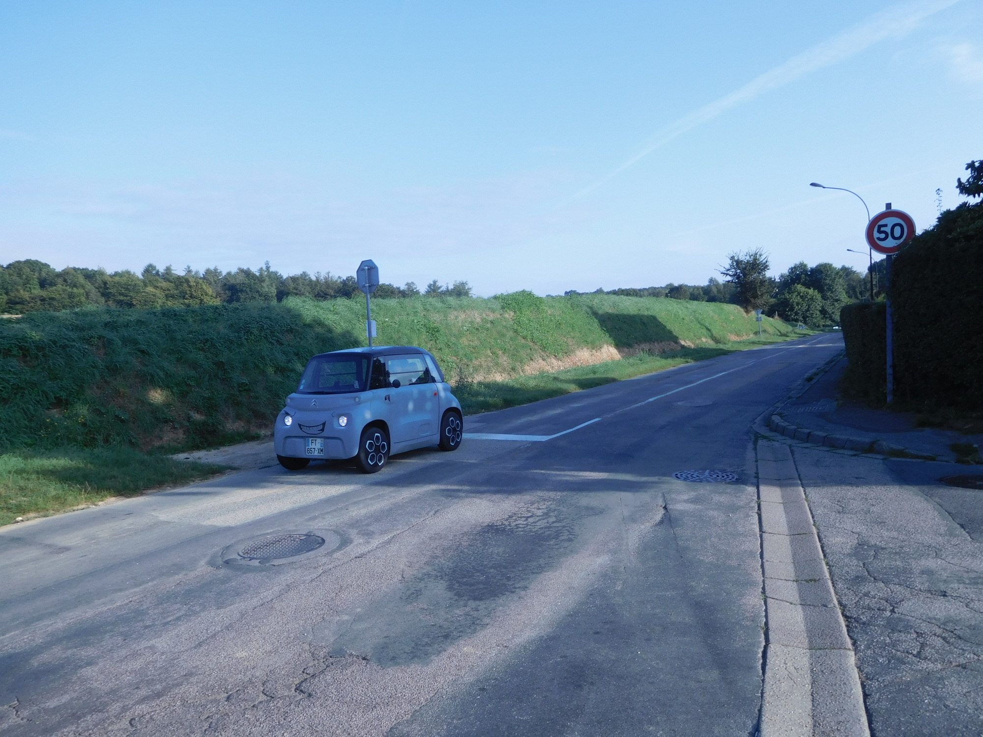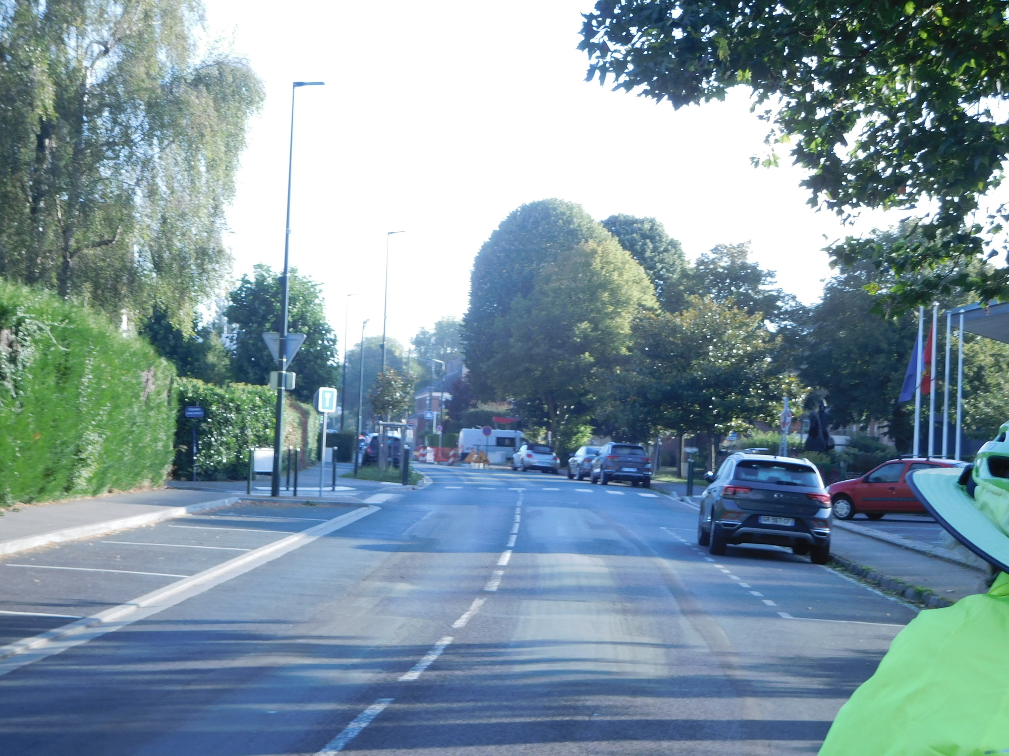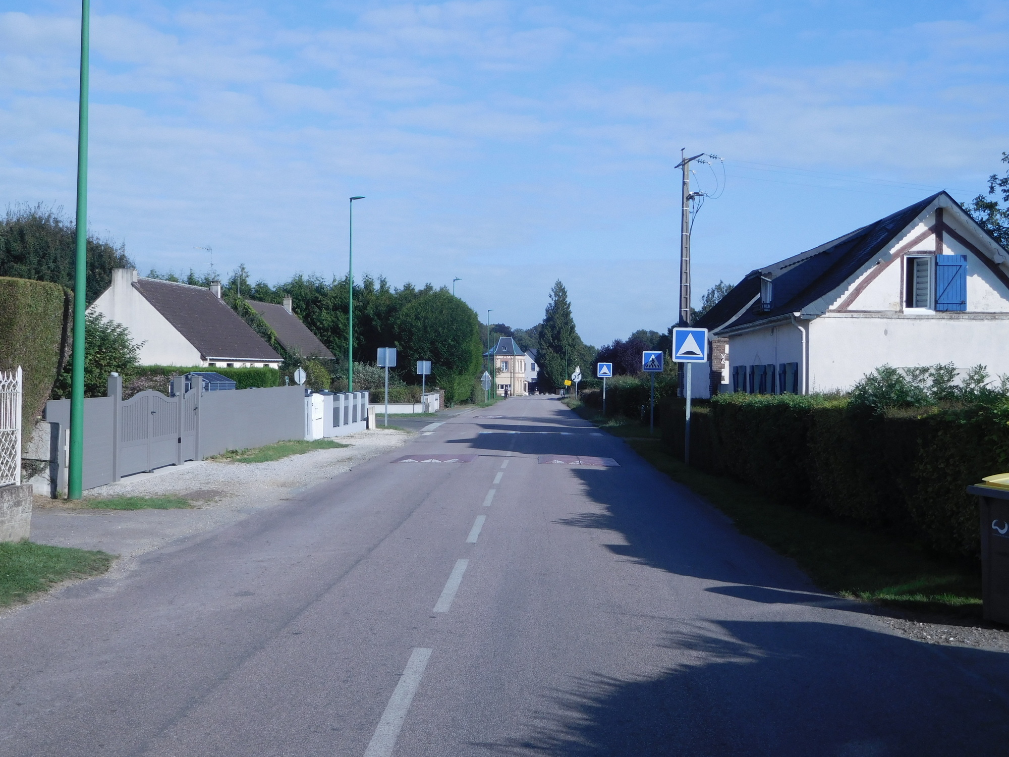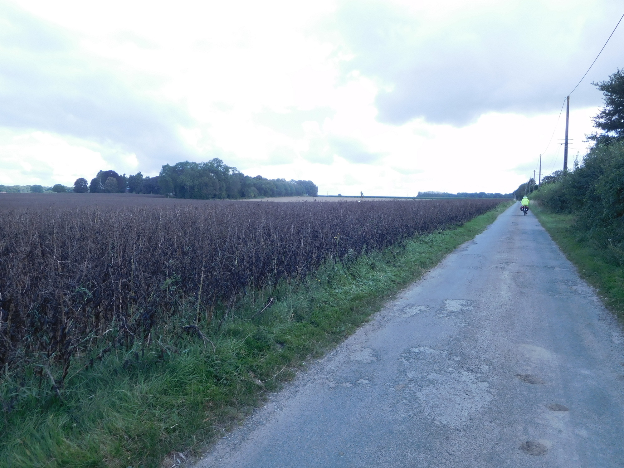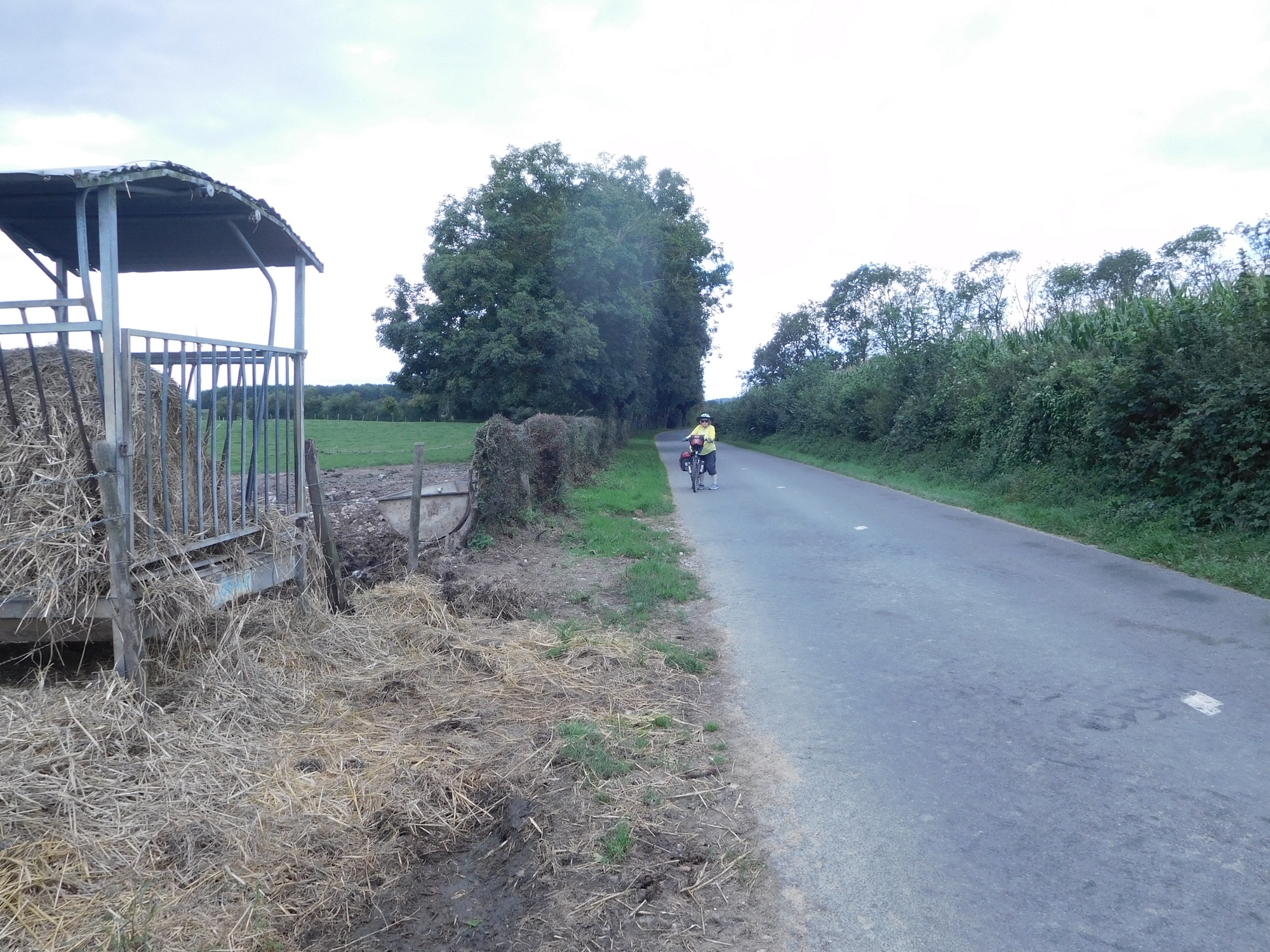 As we approached Conteville, Dodie was getting really exhausted. I had been watching Google Maps, and could see that 90, then 50, then 10 meters of climbing remaining, and then 120 meters of descent, over a dozen kms, into Aumale. In short, Conteville was the top of some kind of bloody mountain! This was borne out when someone in a small truck pulled beside me and confided that this was the highest spot in the Departement. "Yeah", tell me about it!