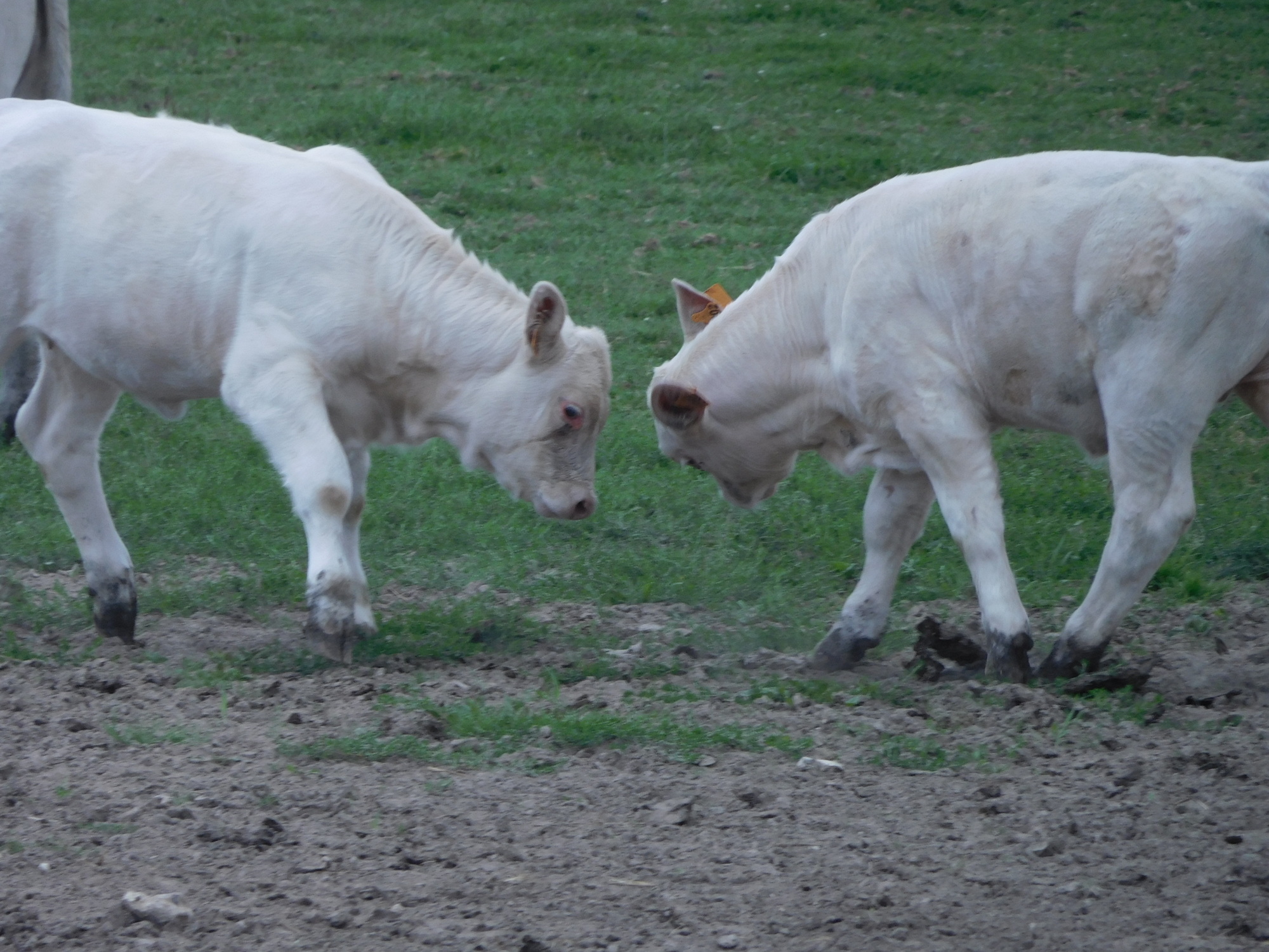 It was during one of my waits up ahead that I watched two baby Charolais "horsing around" in the field. They were butting heads, and chasing each other.