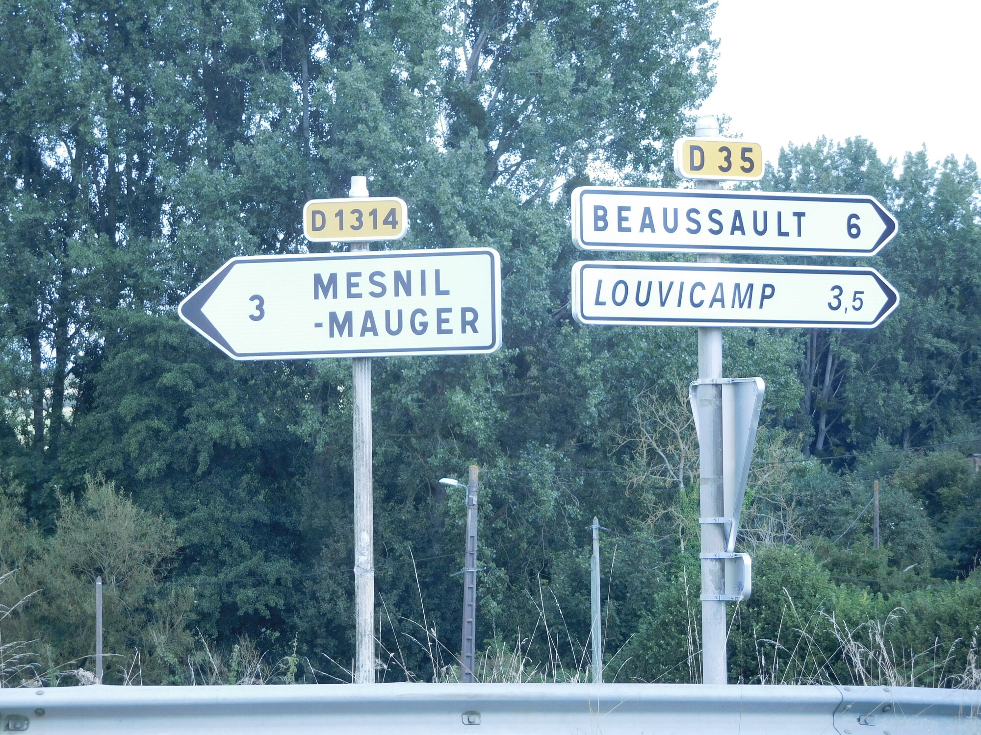 One thing, we had been seeing the word "mesnil" attached to place names quite a bit, and this meant nothing to us. So I put it to Google Translate, and it had no idea. We rolled along wondering about it, until we encountered a local couple walking in the road. We put the question to them about what does "mesnil" mean, and they assured us it meant nothing. However, they were quick to point out the Mesnil Mauger was nearby.