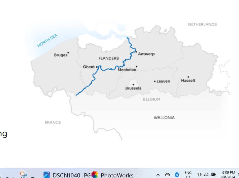 One surprising bit, which is illustrated a bit by the above map, is that while we were immersed in French in Lille, and rather thought that French would persist for a bit as we rode into Belgium, in fact we had quickly crossed out of (french speaking) Wallonia and into maybe Flanders. The language of Flanders is a Dutch variant called Flemish. By the time we came off the Schelde canal and into our small town stay for the night at Oudenaarde, French was nowhere to be seen, and people who spoke to us spoke in English!