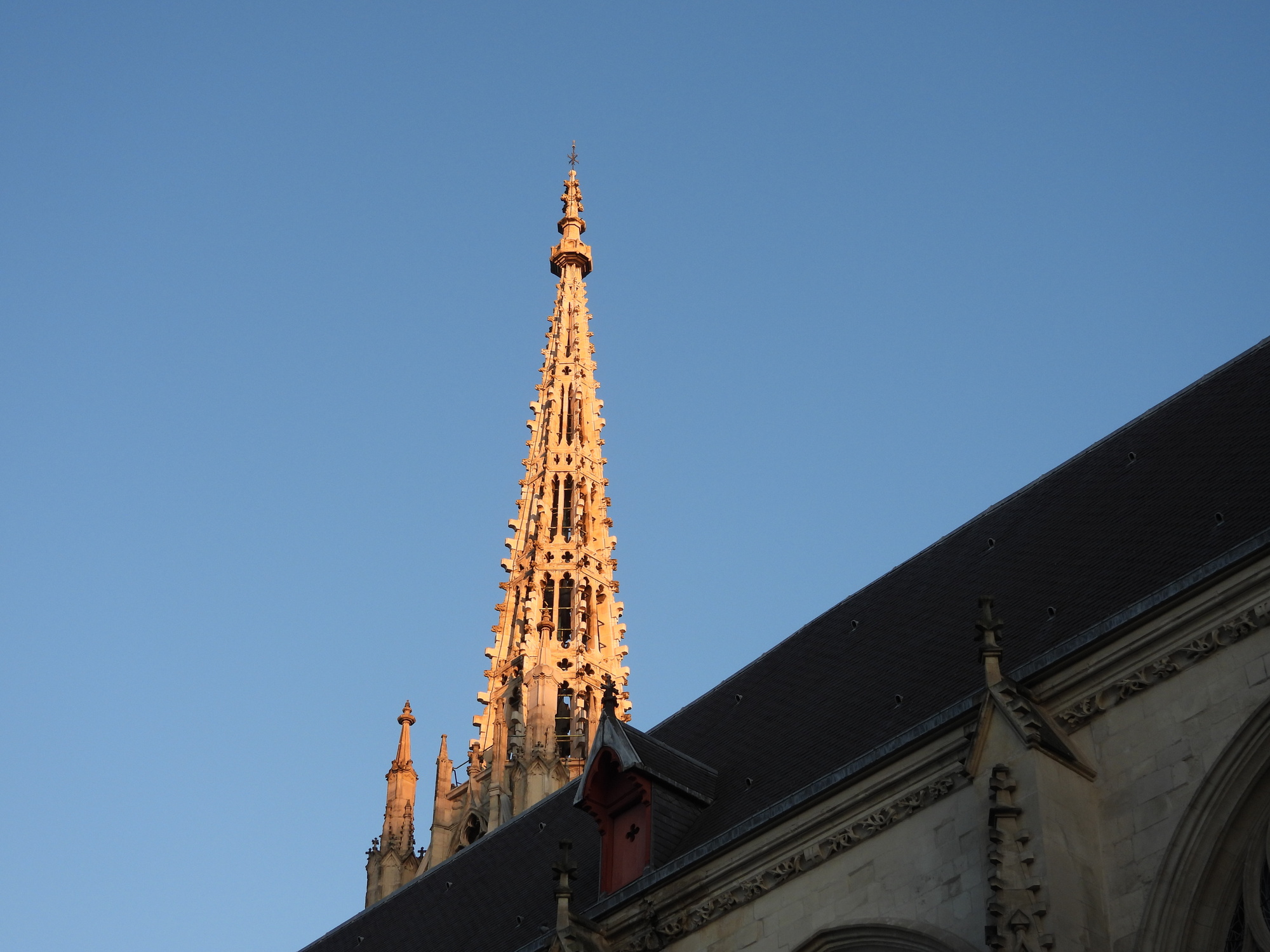 In front of our hotel, the spire of the St Maurice church was illuminated in the early sun.