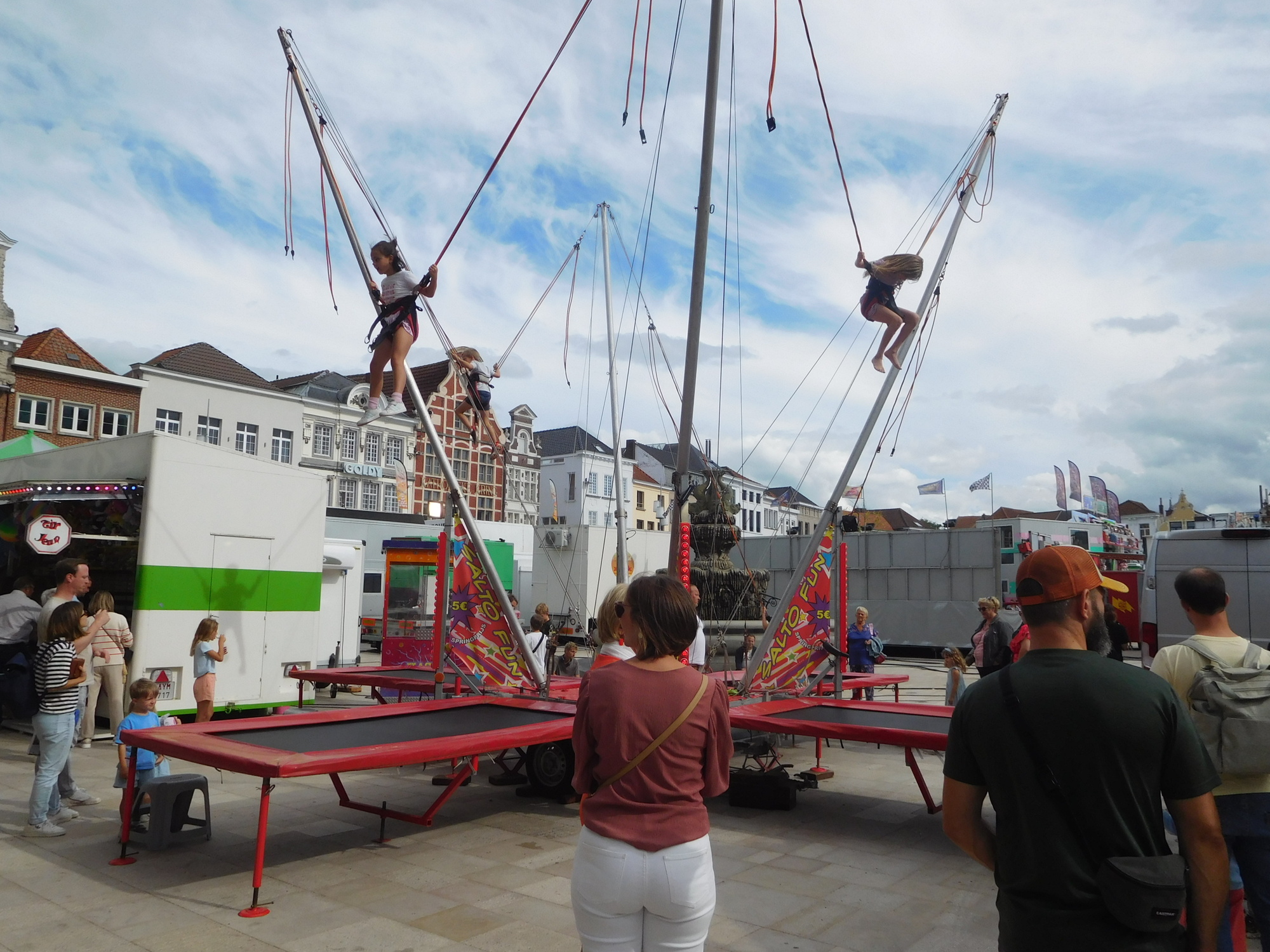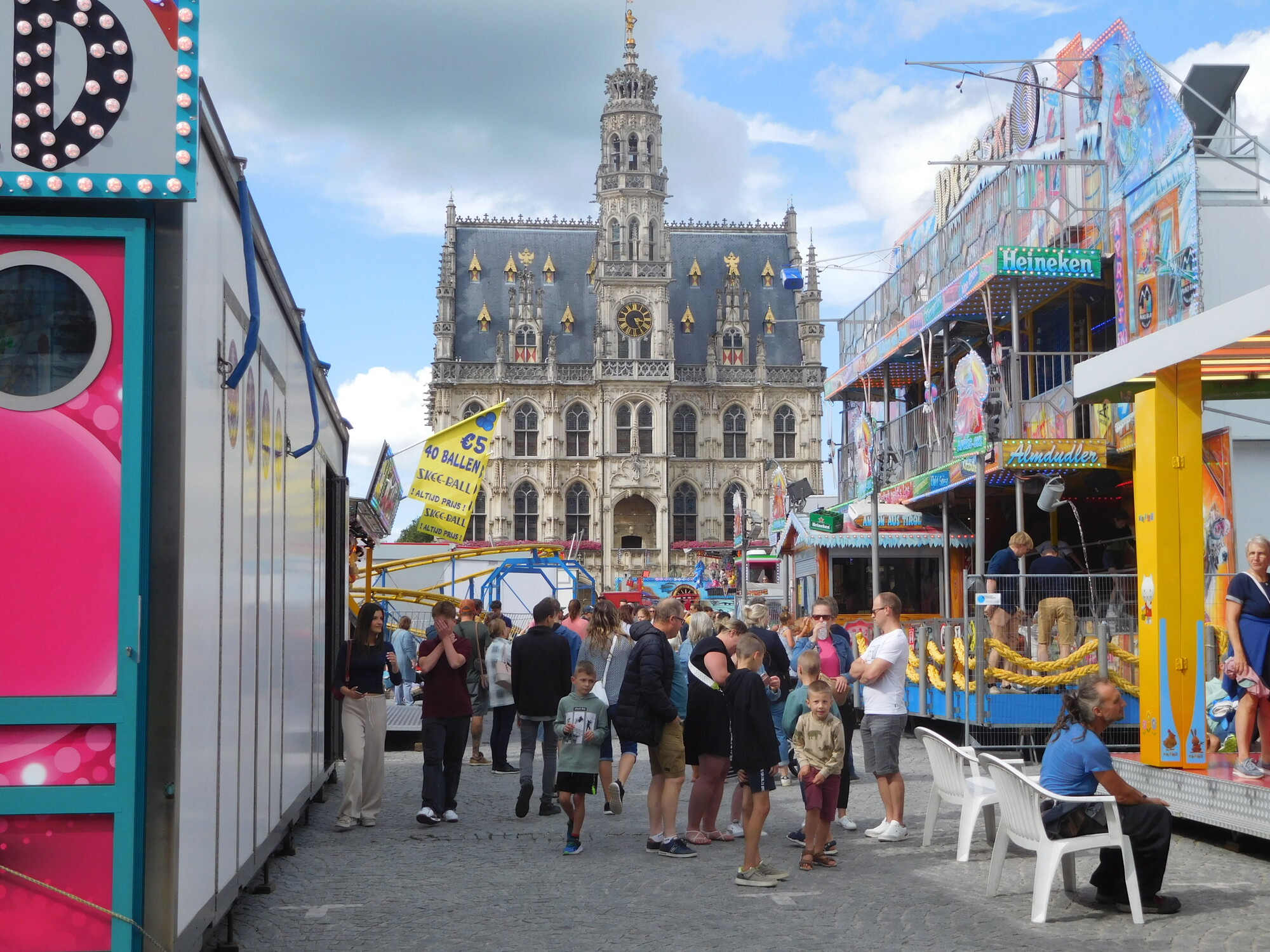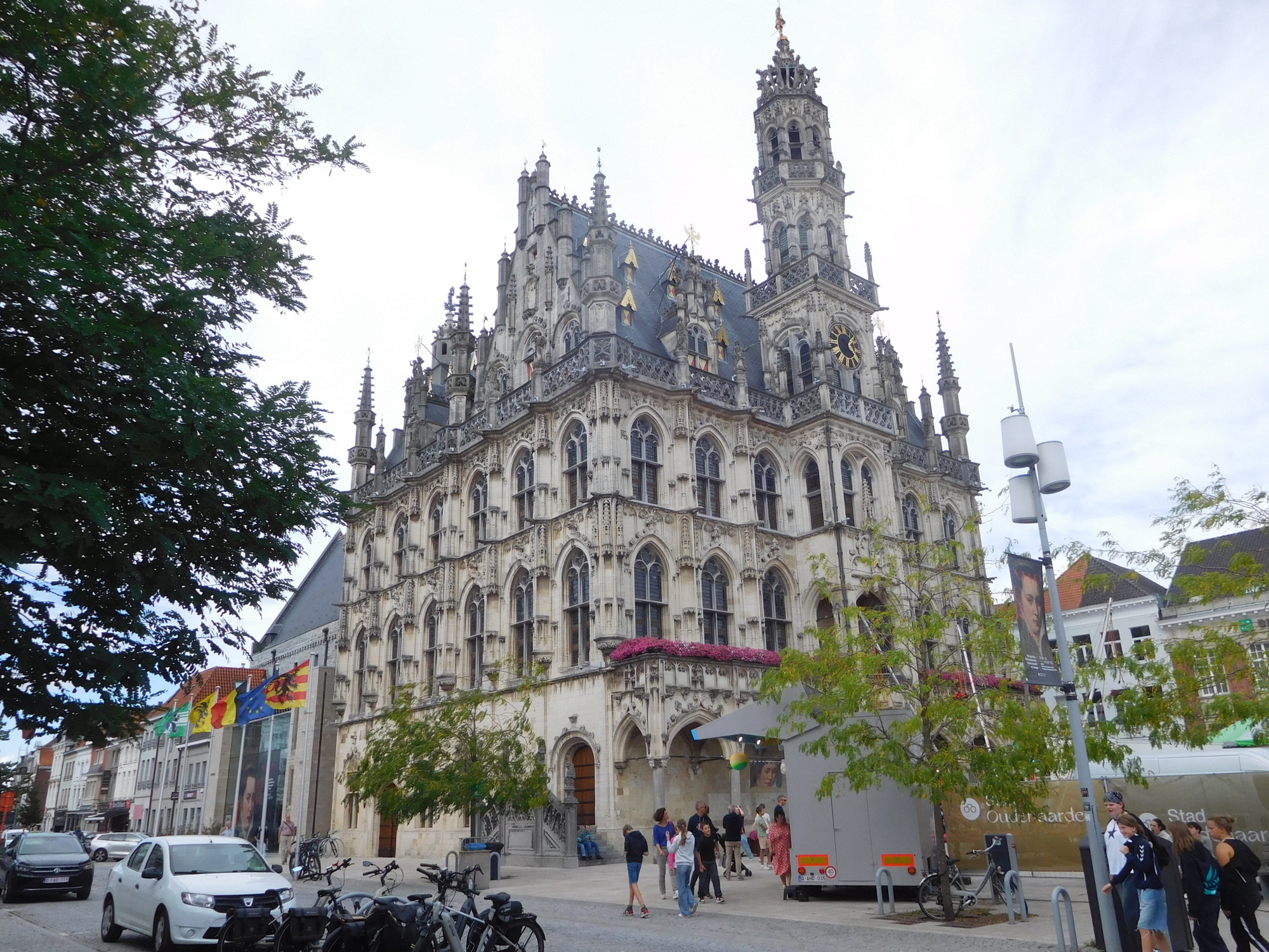 We landed right in the main square of Oudenaarde, and found a large and noisy fun fair in progress. This somewhat obscured its main feature, which was an ornate, Belgian style, city hall.