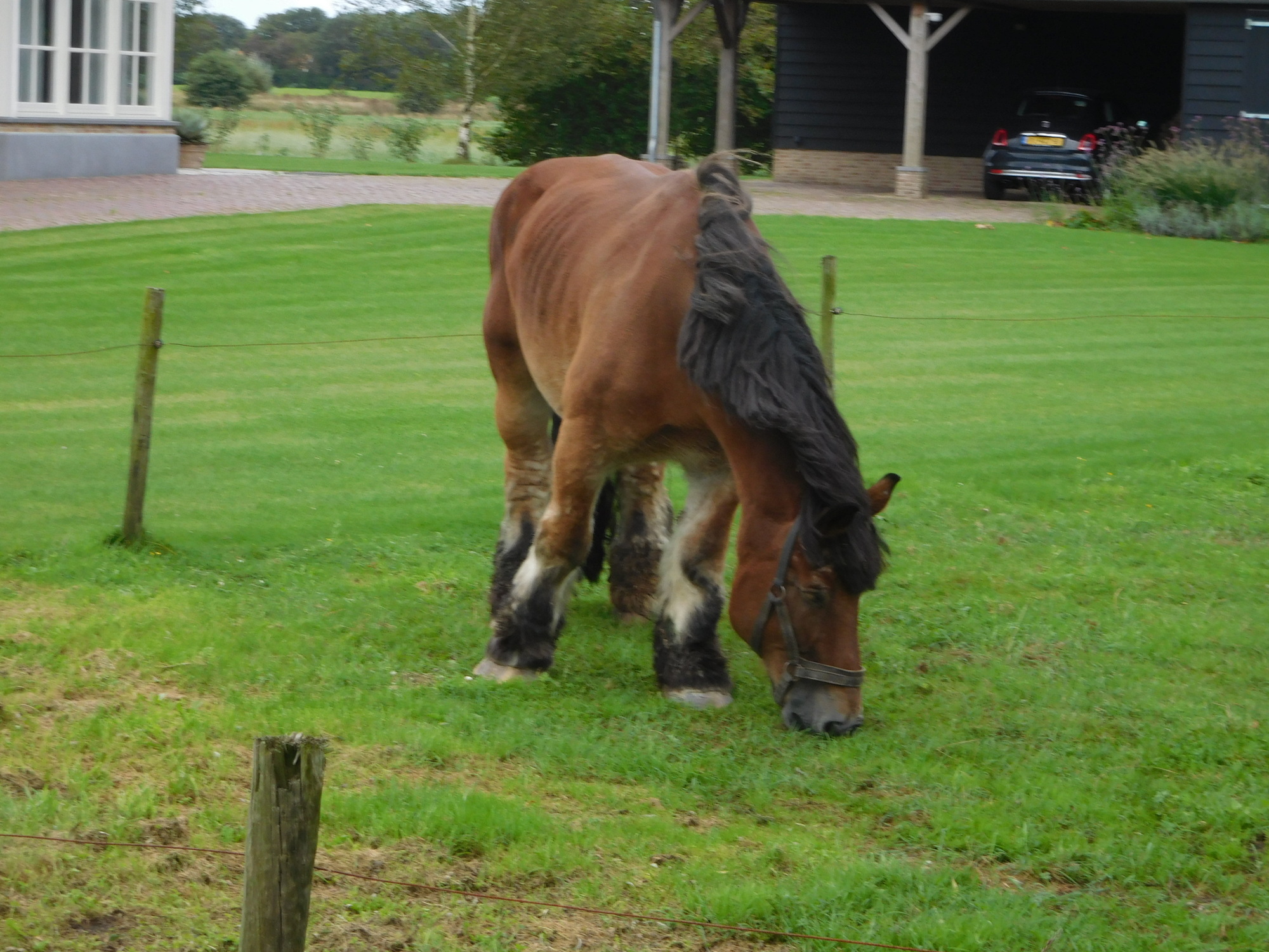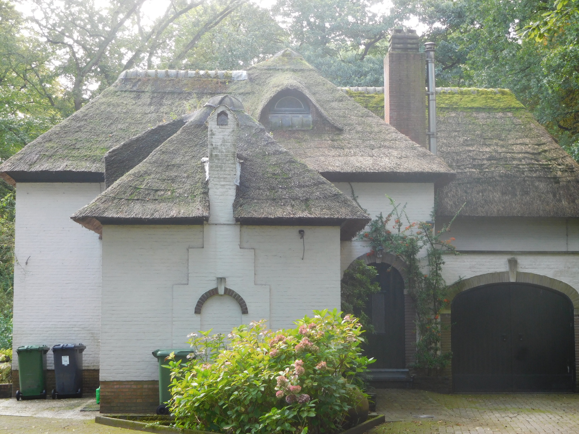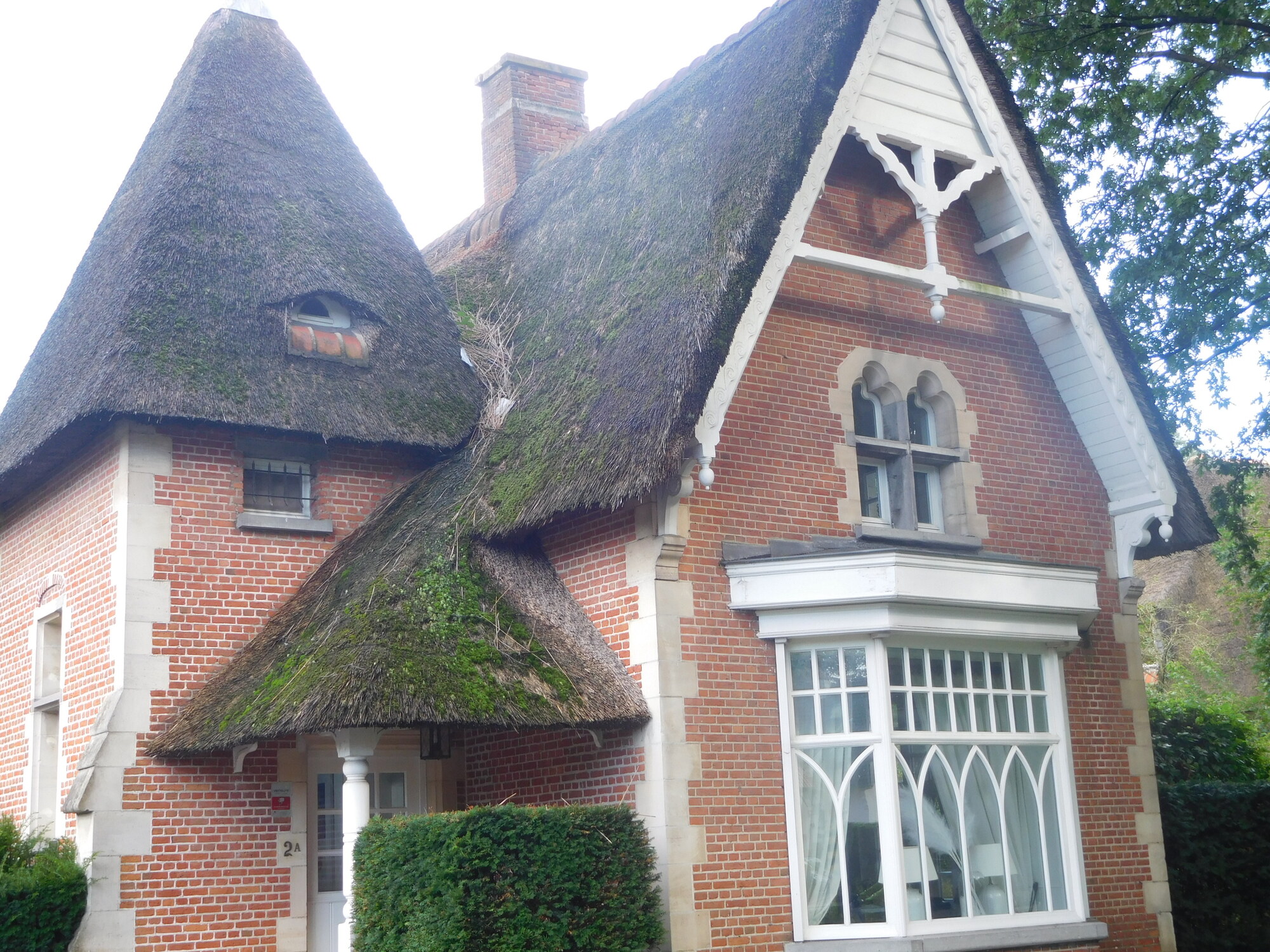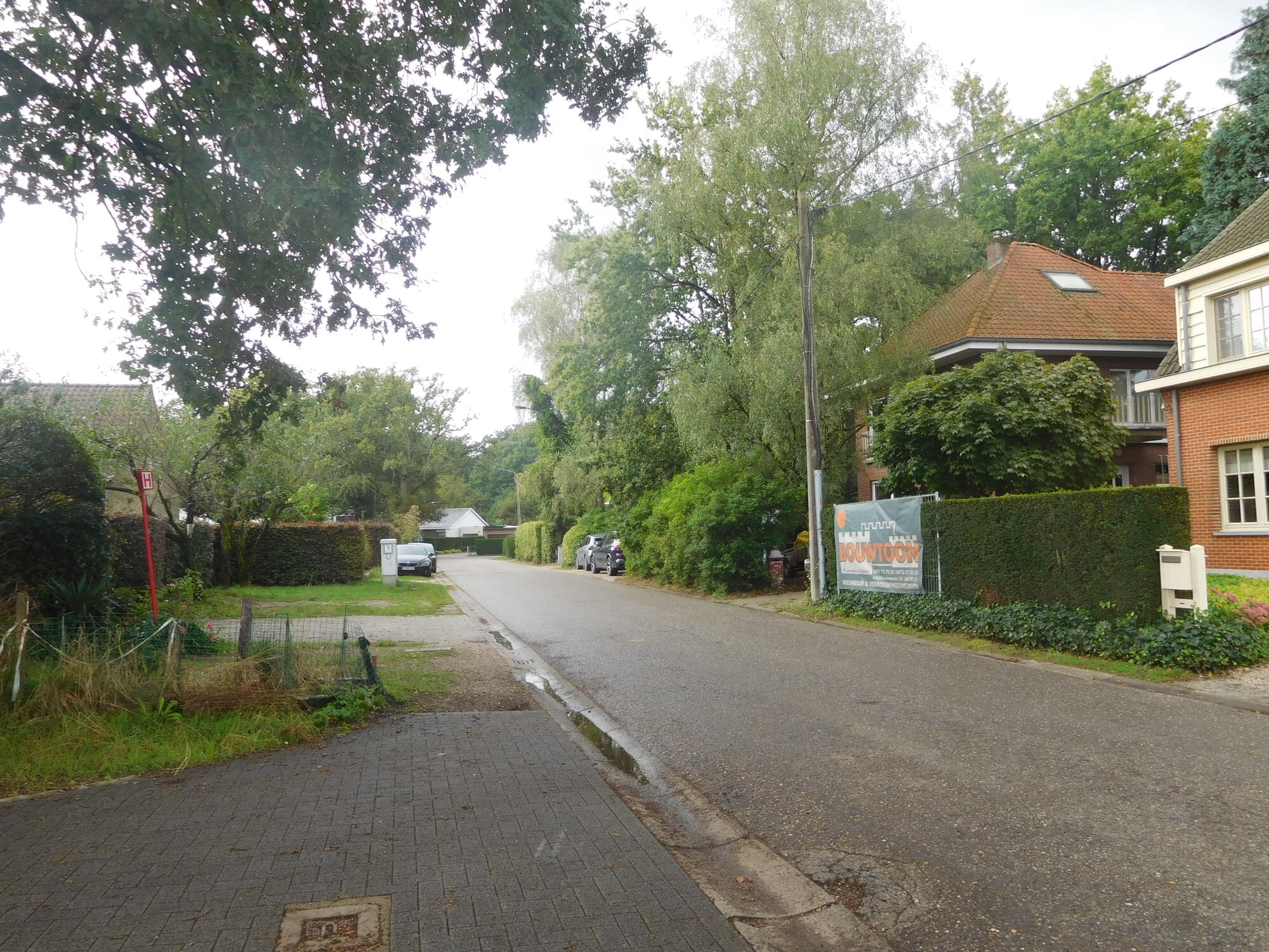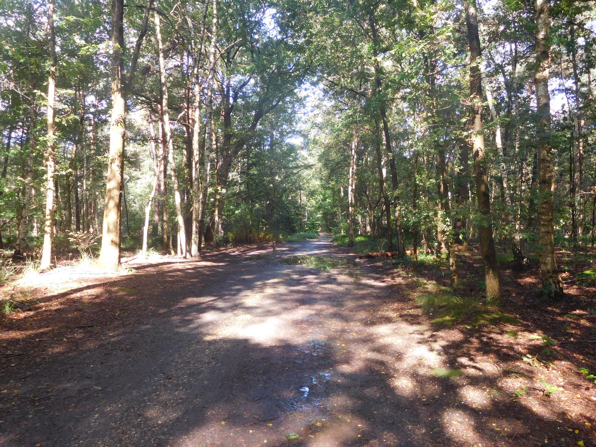 This was a day with on and off rain, often torrential, that we spent in full rain gear. The temperature was also up and down, starting around 11 and riding to near 18, before plummeting again to 12 in rain. We even had quite hard hail, and spent certain bits of time hiding under trees. Something that suffered from both the rain and the forest was our brakes, which began to make horrible scraping noises. During a time when the rain had let up, I passed a wet wipe around my rim, and came up with thick deposits of black goo. Dodie had also been complaining about her front brake in particular, and I was horrified on checking it to see that because of a loose bolt, the right side pad was basically waving in the wind. That was bad enough, but had that bolt fallen out - game over! I put new pads on Dodie's front brake at a table by a tourist info for a place called Kalmthout. They had a memorial there for two Britains killed locally by V bombs, and also a monument of an anti-aircraft gun used to shoot down V-1's directed at Antwerp. (Did not know you could shoot down a V-1 with 1944 tracking technology.)