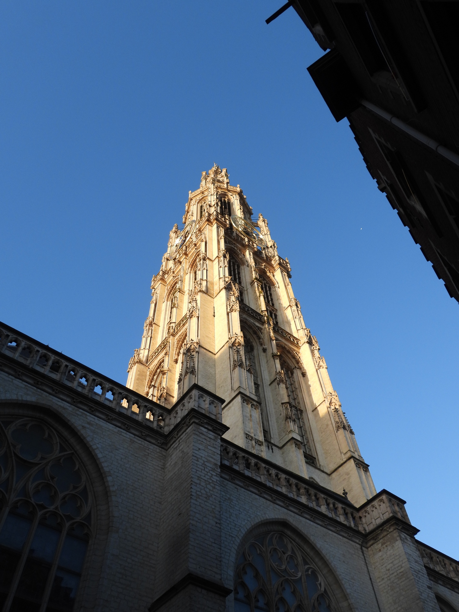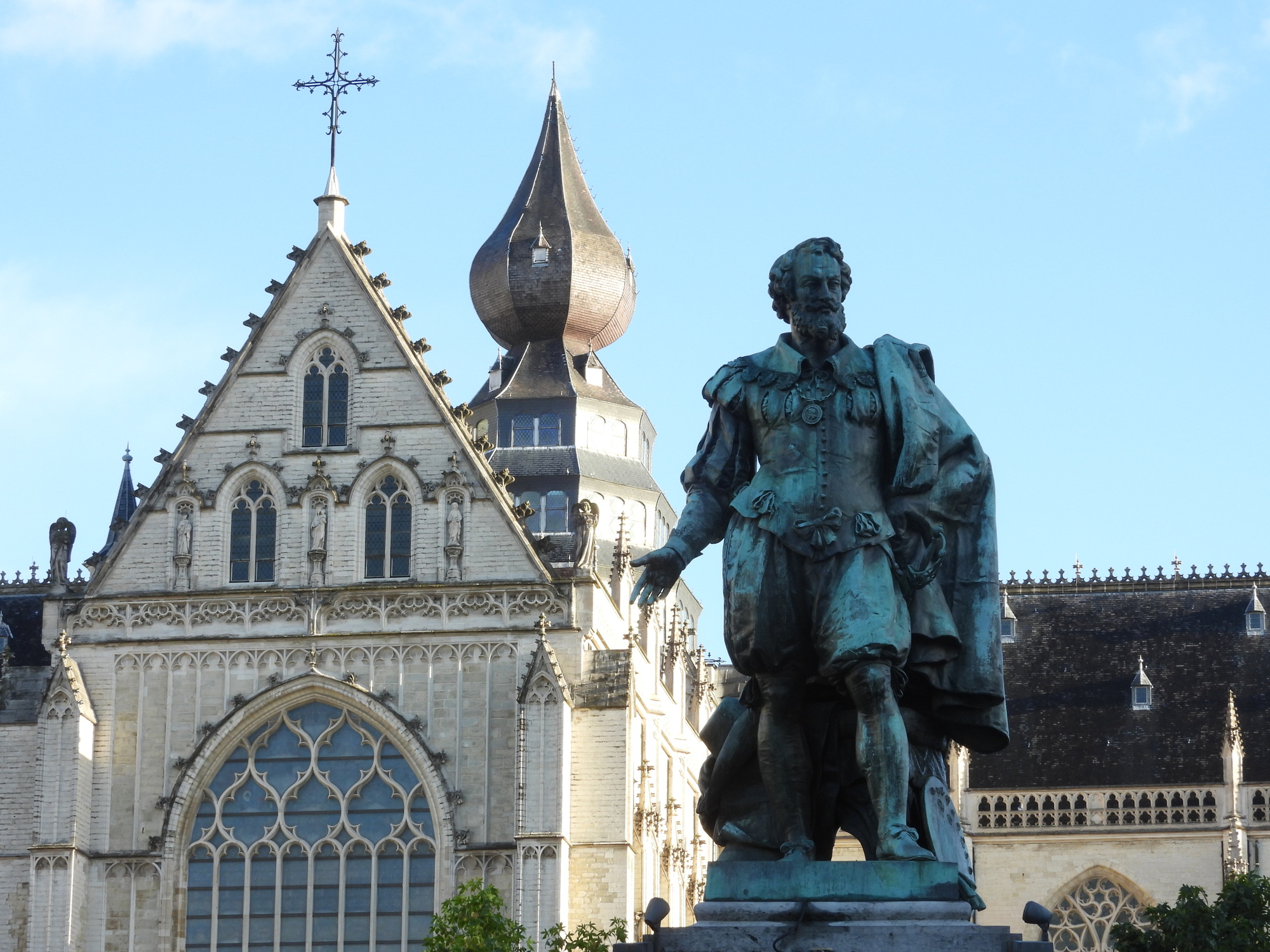 We ate our pancakes and juice in front of the store, and then pushed on into the Groenplaats. Here we had a close up of an 1843 statue of the Flemish painter Peter Paul Rubens. Those two Rubens paintings mentioned above, Descent from the Cross, and Elevation of the Cross can still be found in the cathedral.