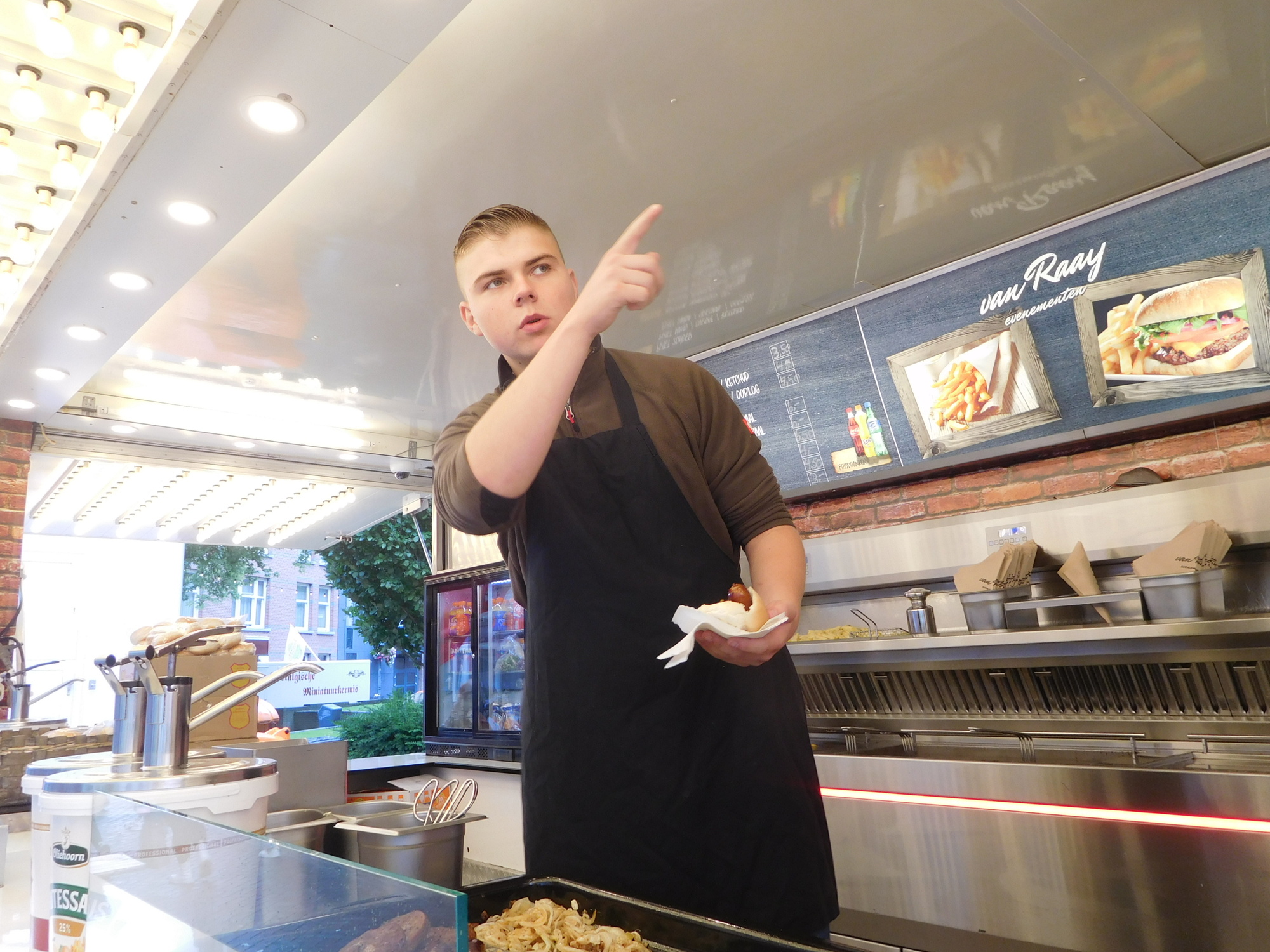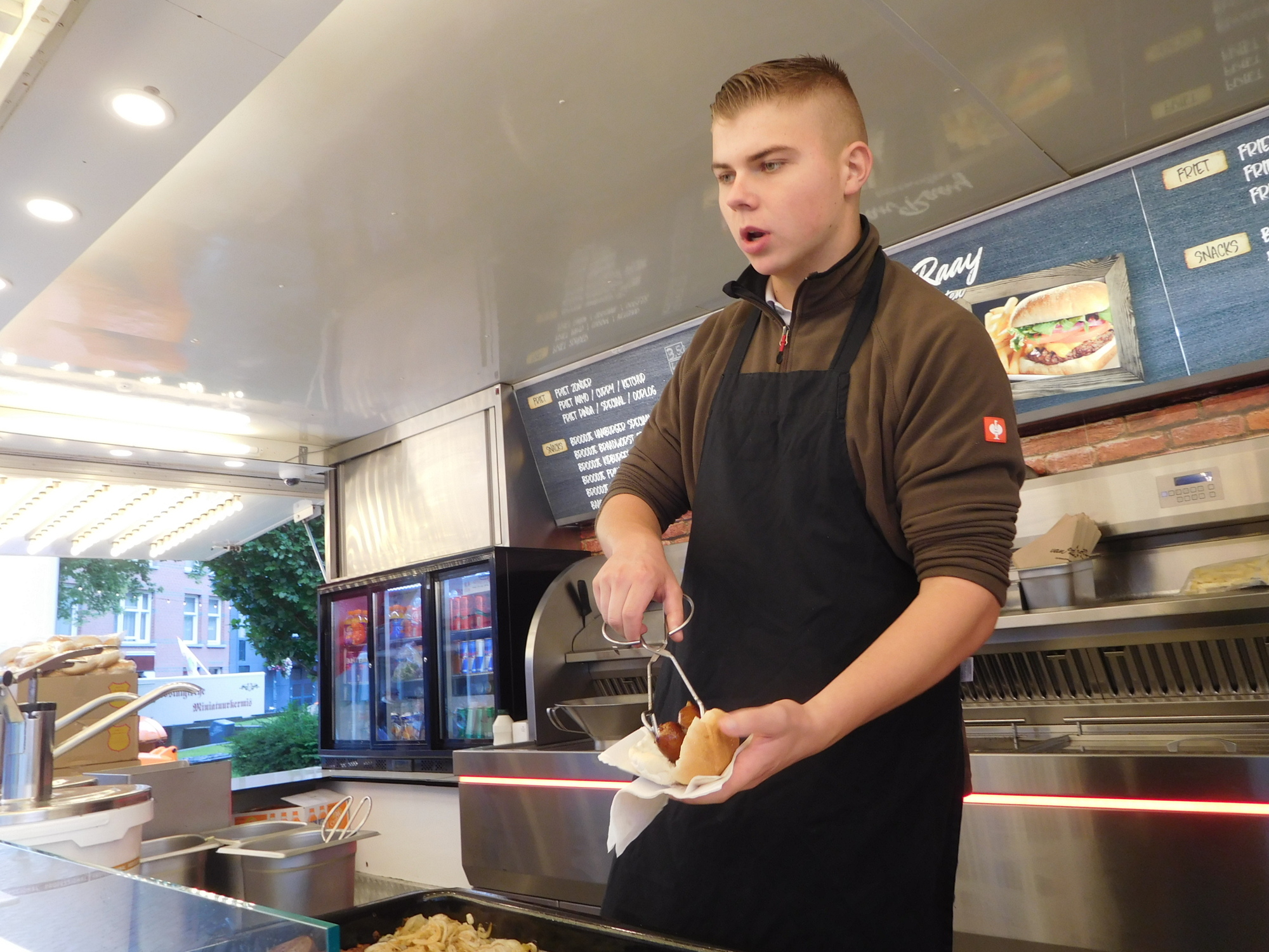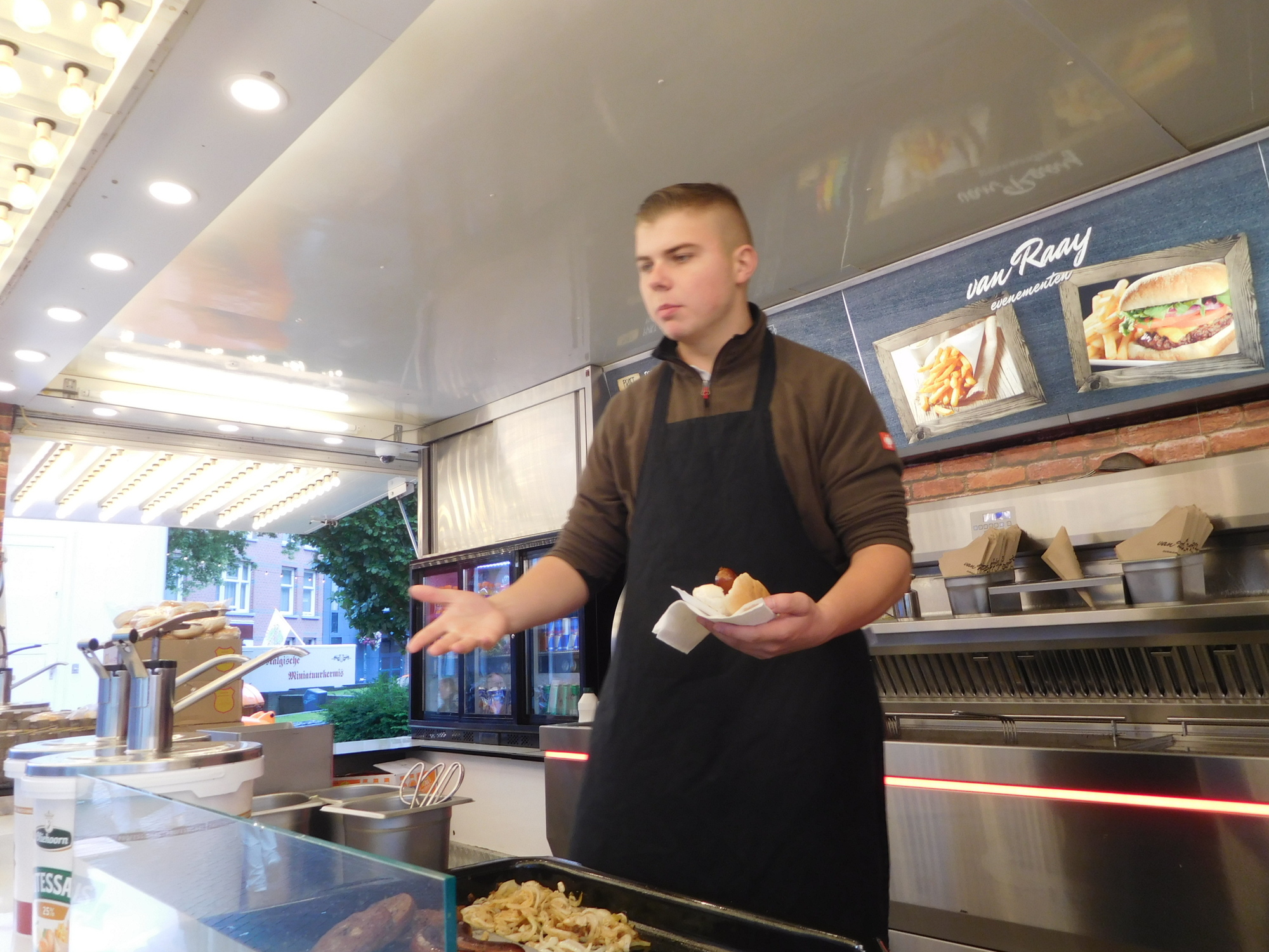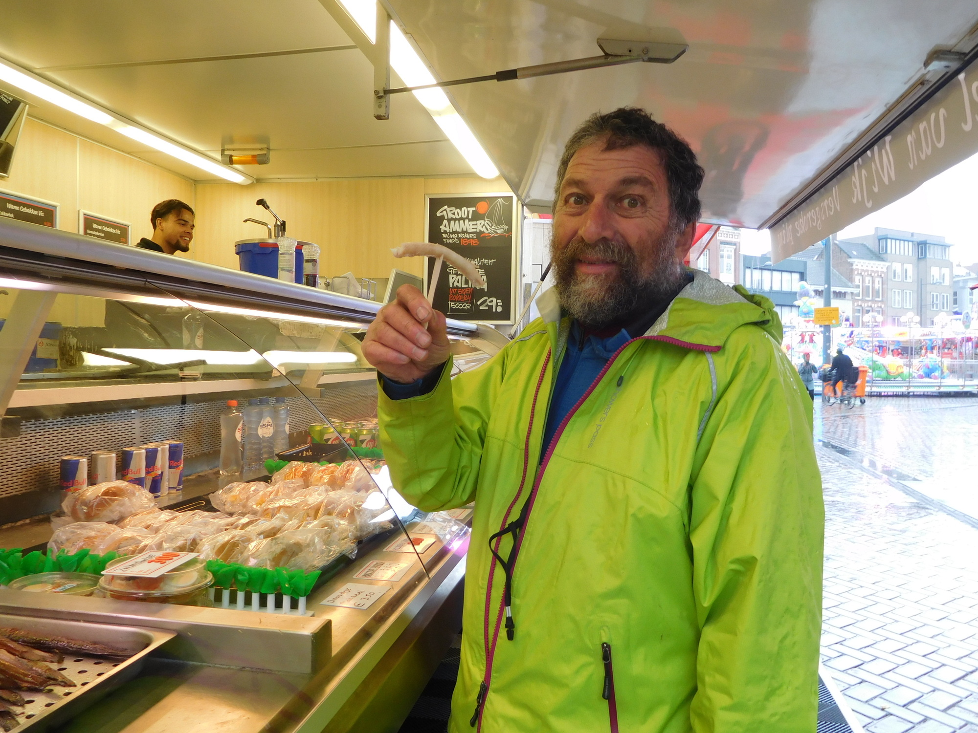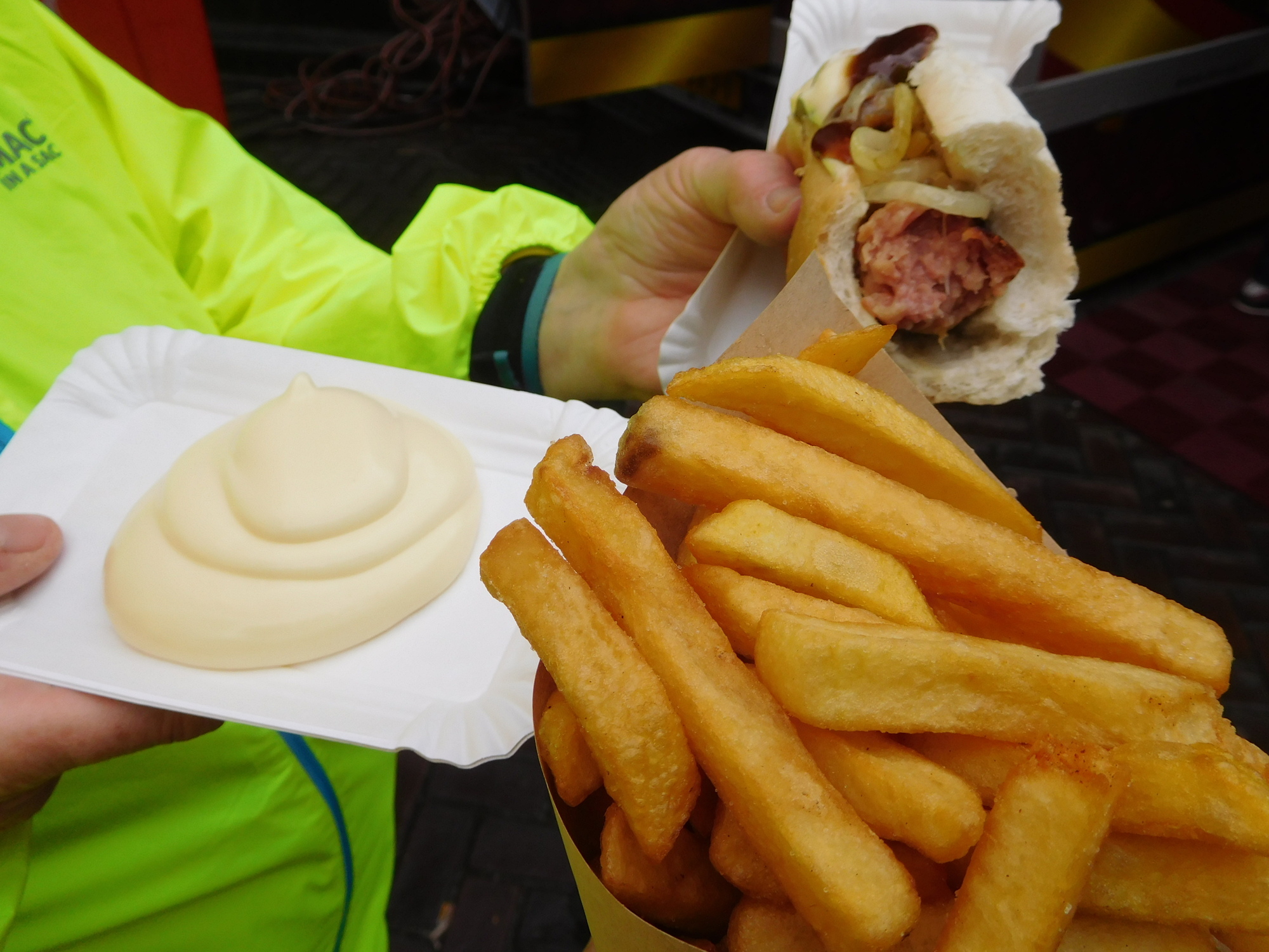 We dropped our stuff at the hotel, dried off a bit, and came back out. We had spotted some fries and other stuff worth checking out.