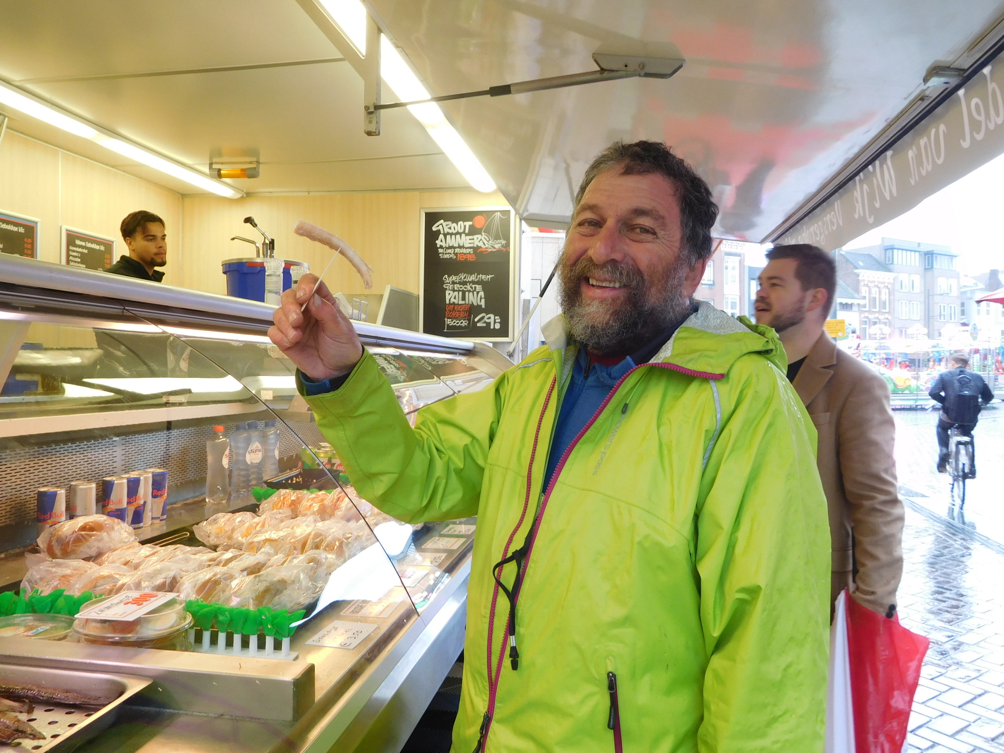 Another stand had these eels. I was foolish enough to ask if you ate them like sticks. No, I learned that you peel them first, and to my dismay the man gave me a sample.