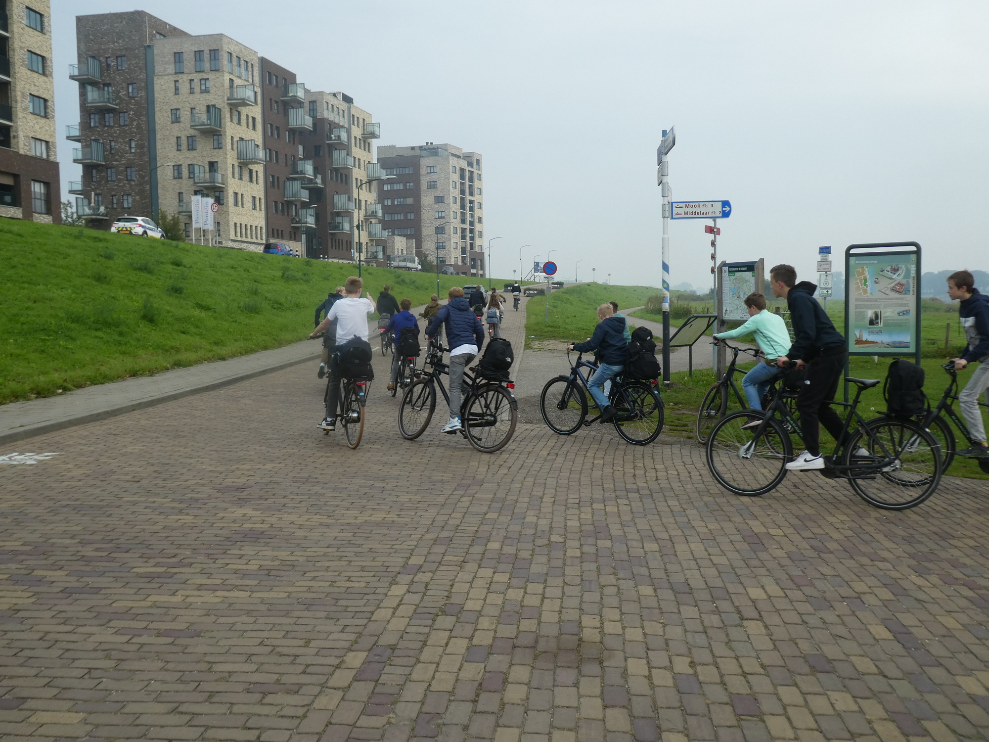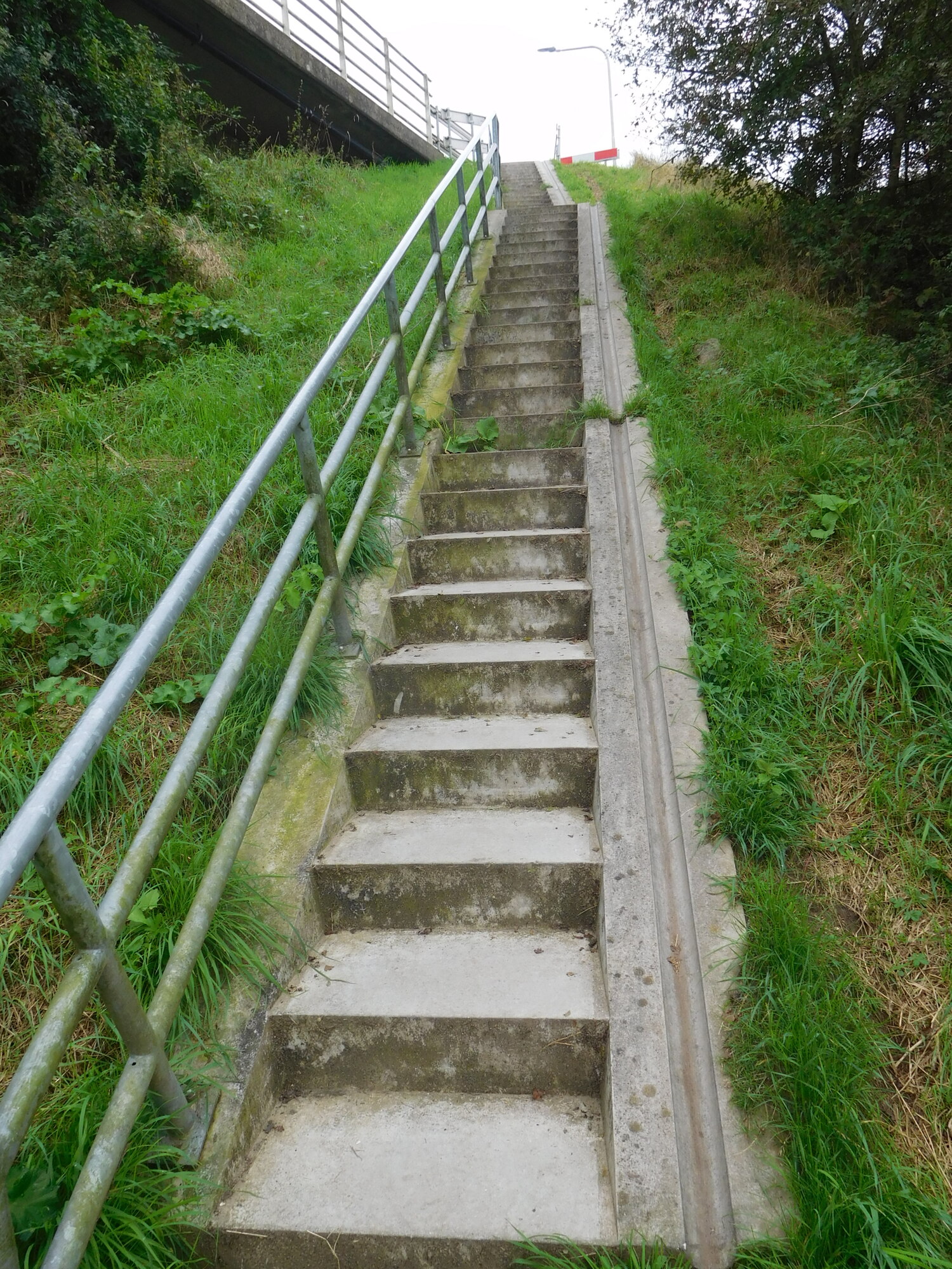 Coming out of Gennep we had to cross the river again, but this time on a bridge. Once over the bridge, we knew we needed to get down to the bike path along the river. But all we saw was these stairs: