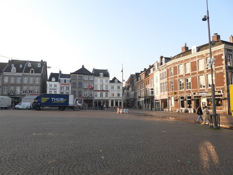Our next spot was Vrijthof Square, which is really the town's main square. From the square you see the towers of the two main churches. The red one is Saint John's church and the other is the Basilica of Saint Servatius.