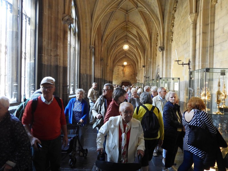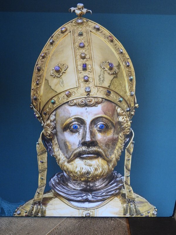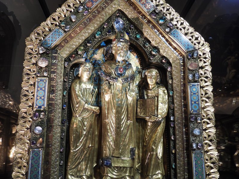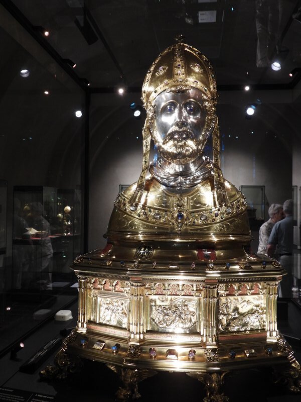 One of the main attractions behind the paywall is the "Treasury" , which features a reliquary that has part of Servatius, and some other saints as well. It is very shiny and impressive, and can also be found on the church's posters, as in the second photo below.