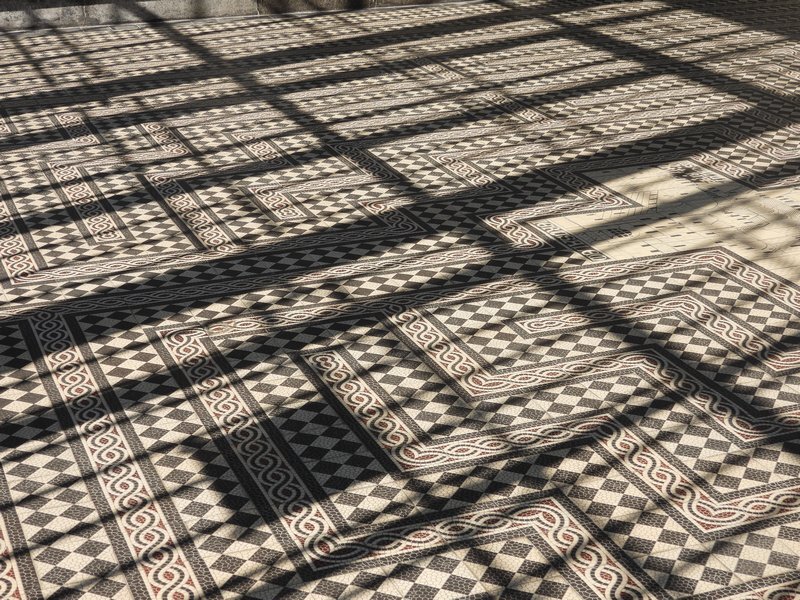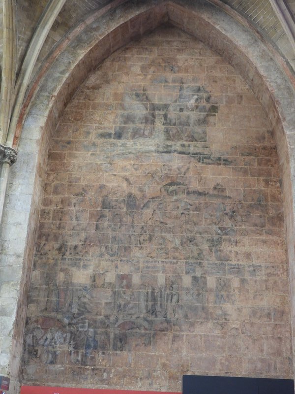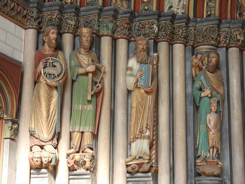 Back upstairs, there is the "southern portal" of the basilica, a late addition - from the 13th century, and probably crafted by French artisans. This has interesting (maze like) tiles in the floor, and colourful statues of bible figures.