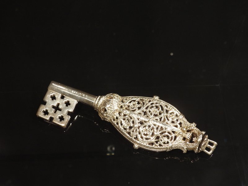 Our euros gave us access first to a cloister, and in it a bell called the Sint Servaasklok, nicknamed Grandmother, - the largest bell in Holland. It was cast in 1515 and had images of Saint Servatius and his key to heaven (that key again!)