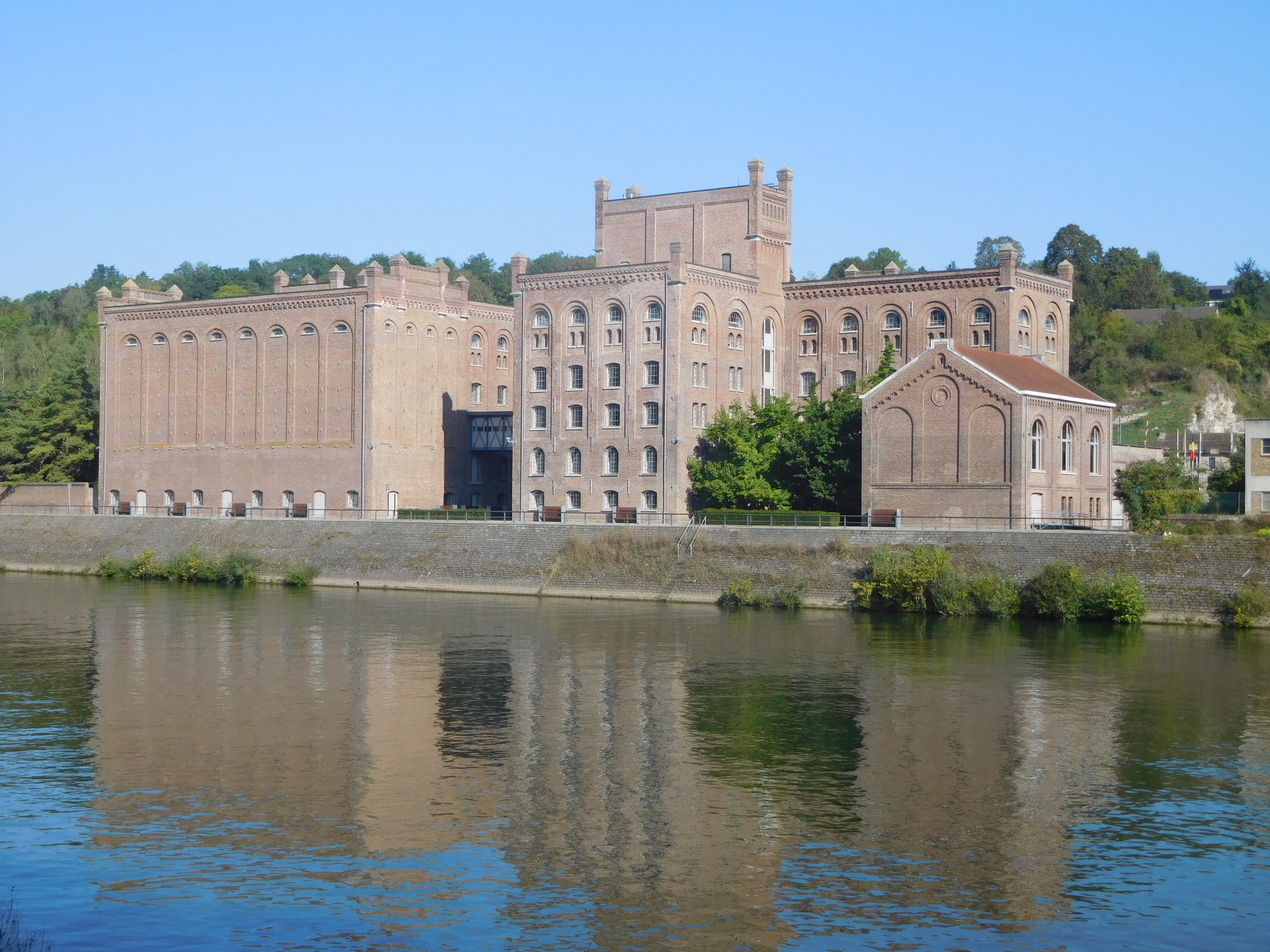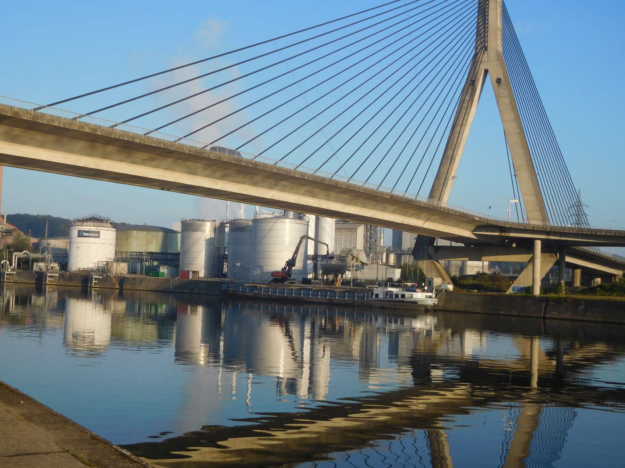 We left Huy and continued up the river. We were treated to some lovely river views, but also lots of industrial views. It's not right to grouse about the industry, because after all ours is not an organized tourist excursion, and we are passing through all parts of the country and not just those curated for their attractiveness. Industry, traffic, and all that are after all necessary for the people's survival.