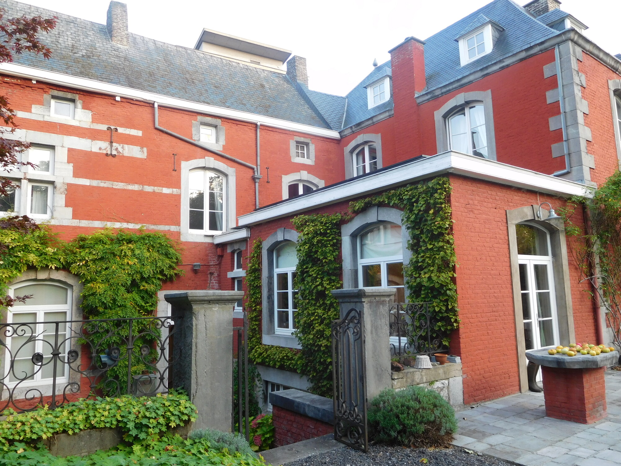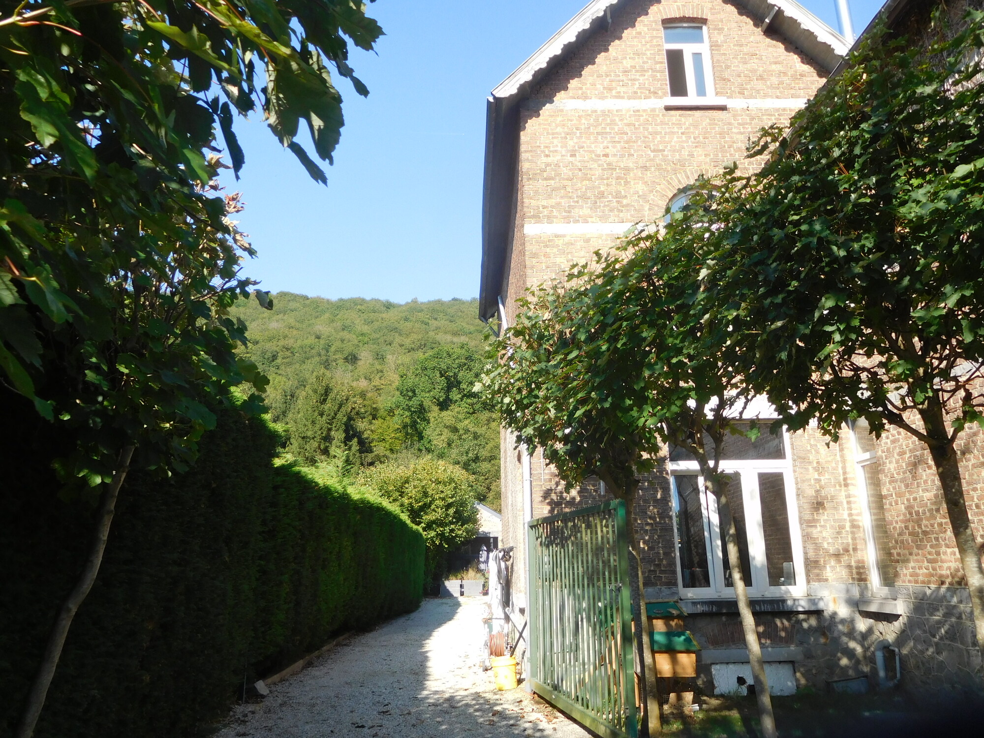 We got to Profondeville really early, despite our spin around Namur. Check in at the chambre d'hotes was only at 4 at the earliest, something made clear in an email they sent us. So we hung out by the river, and I had a nap in the grass. Like our place last night, our room or rooms are in the attic and with interesting woodwork and rickety wooden floors. We also notice, with some trepidation, the Ardennes hills, so close behind the house.