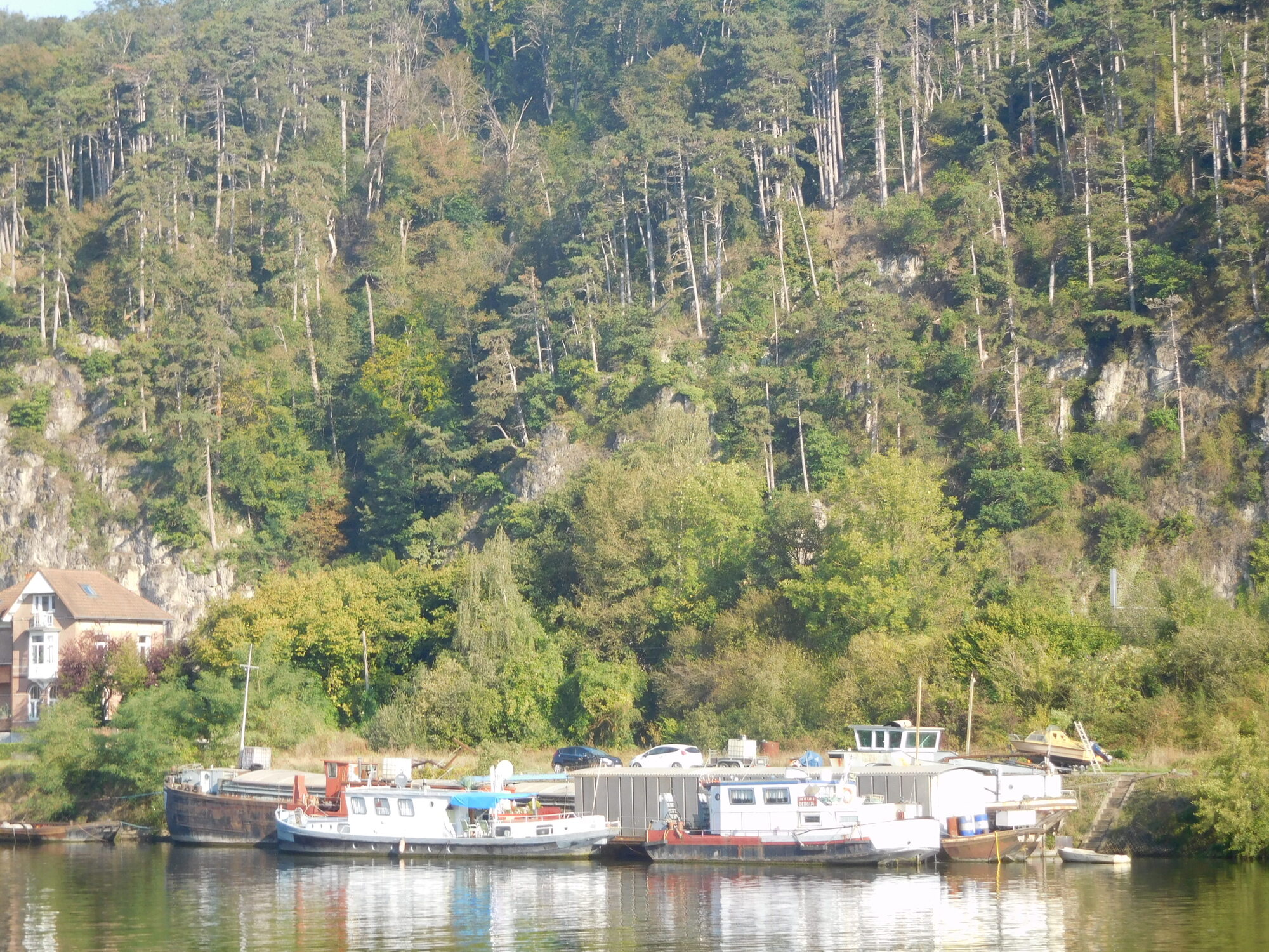 Whereas in Netherlands the river was running with broad bands of farmland and pasture on either side, here it is effectively in a gorge, with steep cliffs often hemming it in, and building often limited to streets just one deep along the river.