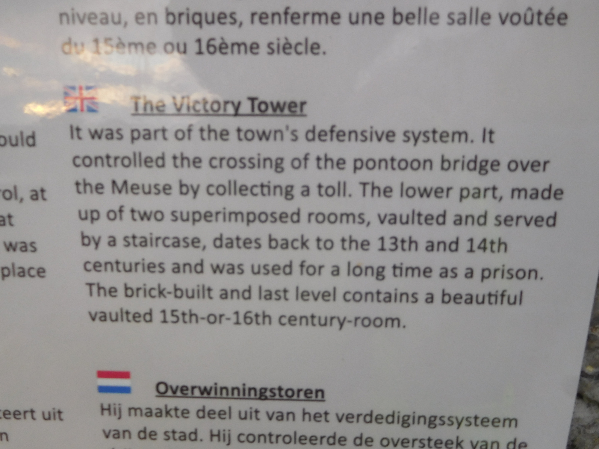We could see why the bakery was called Delices de la Tour, because it was adjacent to a watch tower by the river. This was called the Victory Tower: