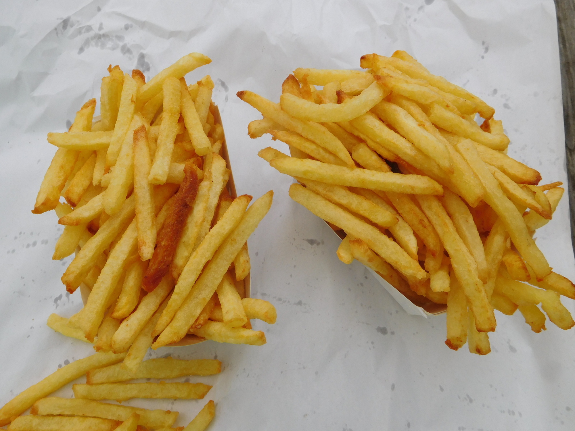 All the territory between here at Givet is in a finger of French terrotory extending into Belgium. Consequently, though we had pedaled a lot, we were still adjacent to Belgium. We hoped that proximity still qualified the area for producing Belgian fries, because we found a friterie in Fumay!