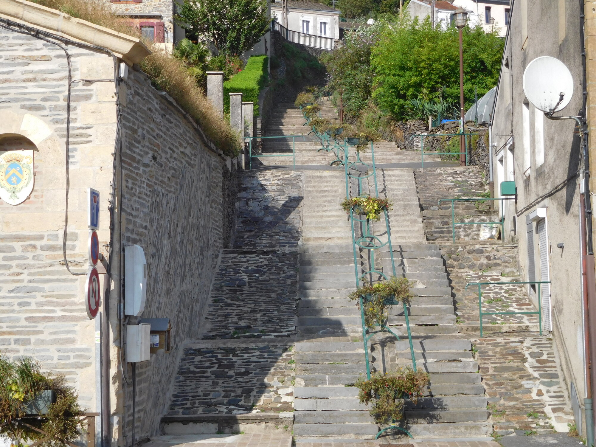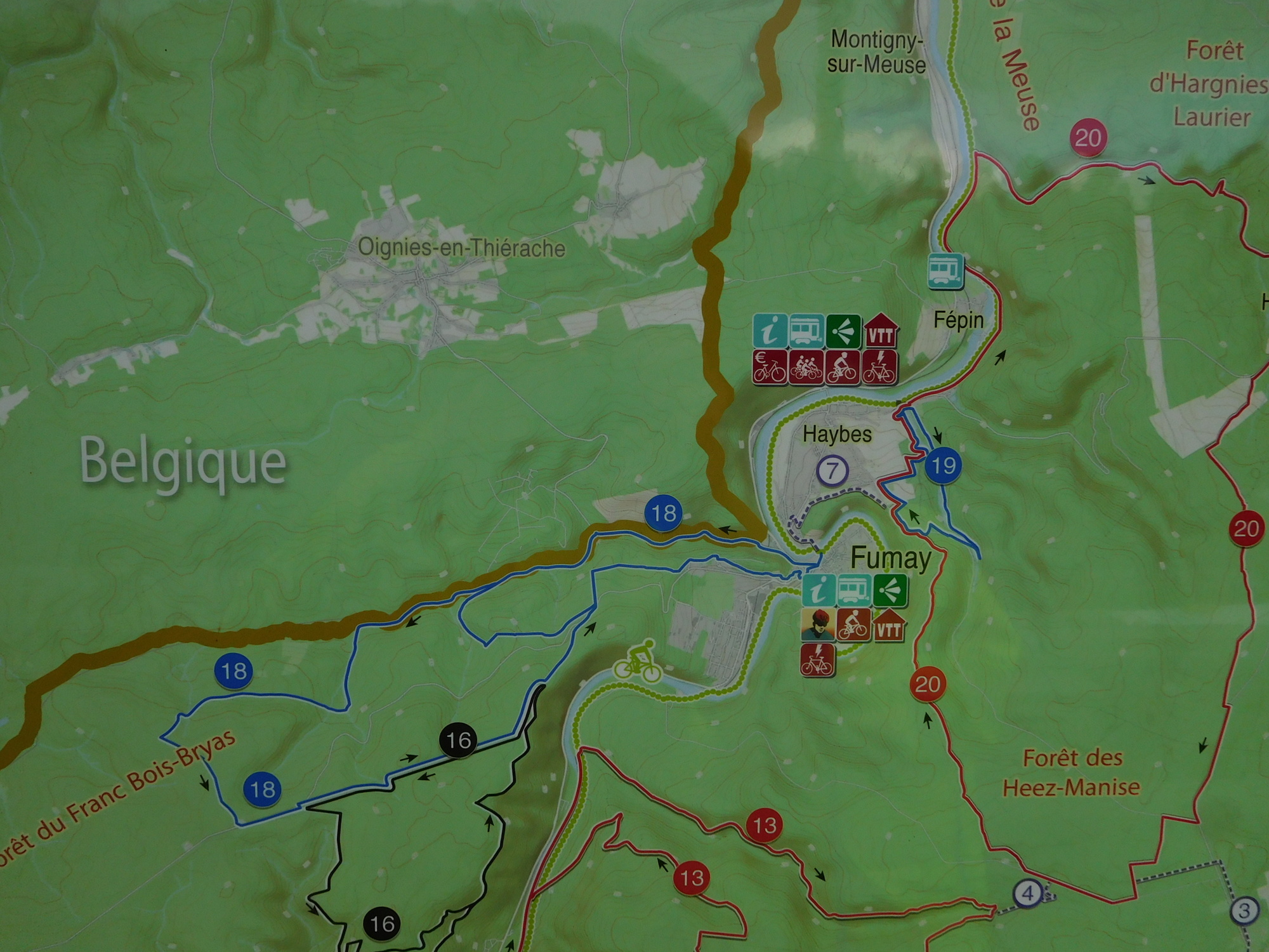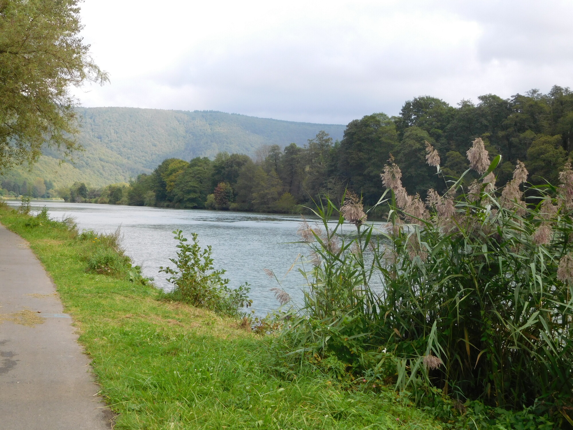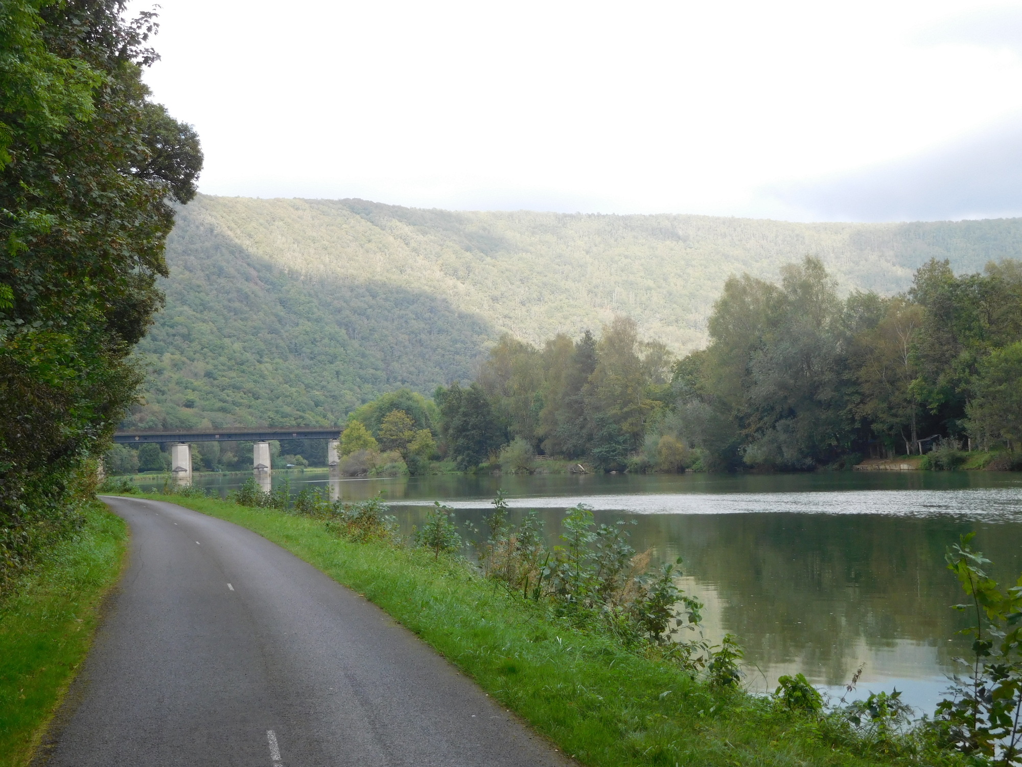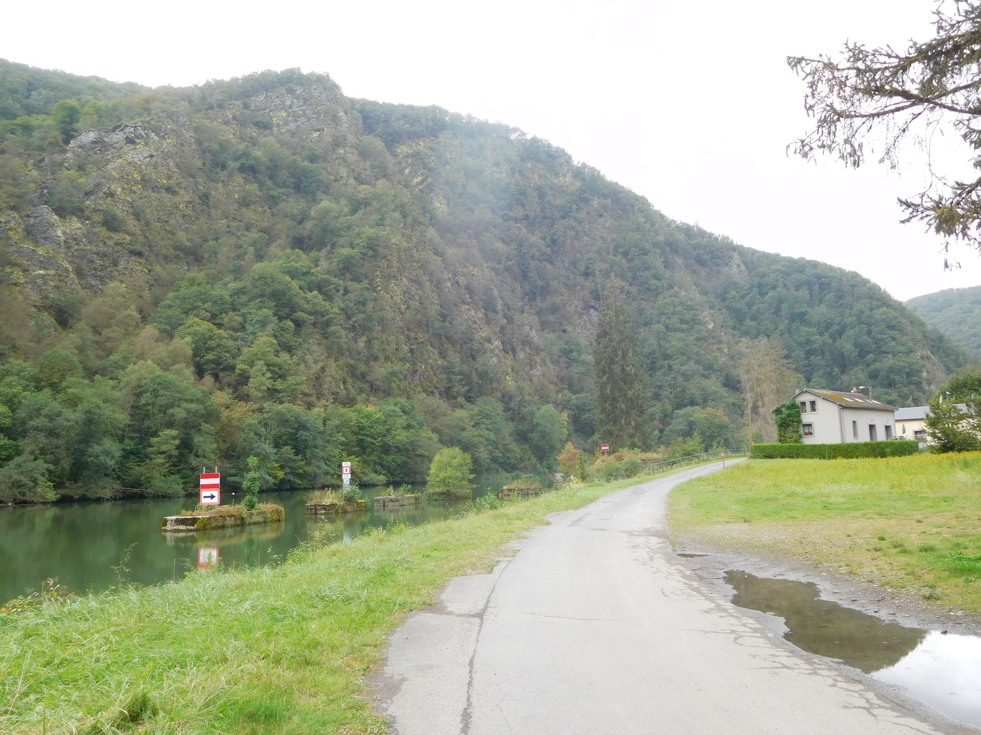 Once across the river and ready to resume our track, we found that it actually was a Voie Verte, called the trans-Ardennes. The Ardennes refers to a rugged area of forest and mountain, that we actually thought we were in, with all the cliffs by the river yesterday. But it seems we were just now entering it, and thank goodness there is the river and the path beside it, because other routes in the Ardennes are very much up and down.