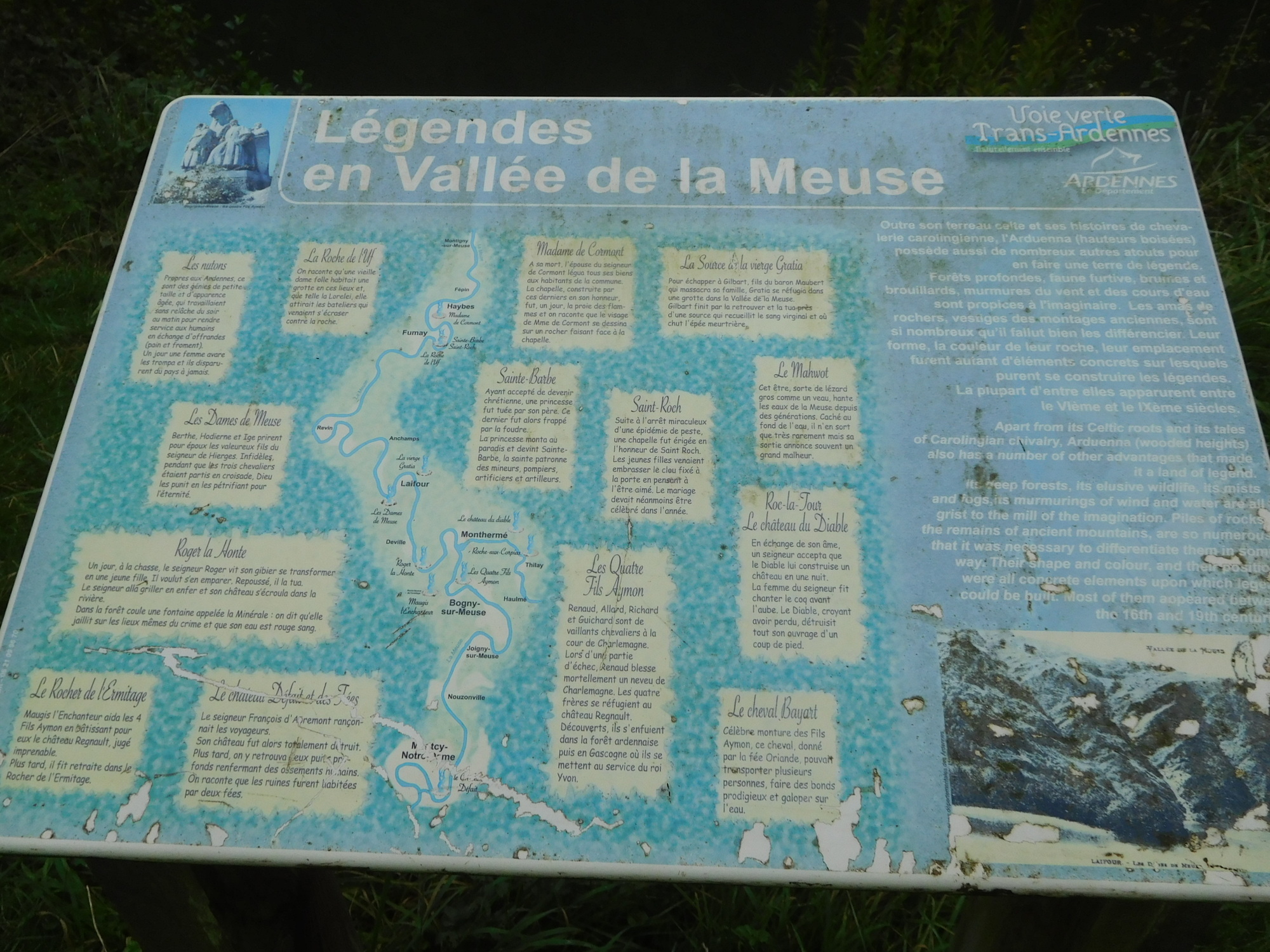 We carried on now, though the increasingly wild Ardennes. But we had an eye out for something called the Dames de Meuse. We had read some references to this, and even seen a bar or hotel in Givet with that name. But what was it? Odds were it was some kind of rock formation, like the Lorelei, but we had no idea. We expected an info panel with a clear explanation. But no, we came to a lock in the river called Dames de Meuse, and a building with that name on it, but look around as we might, we really saw no Dames.