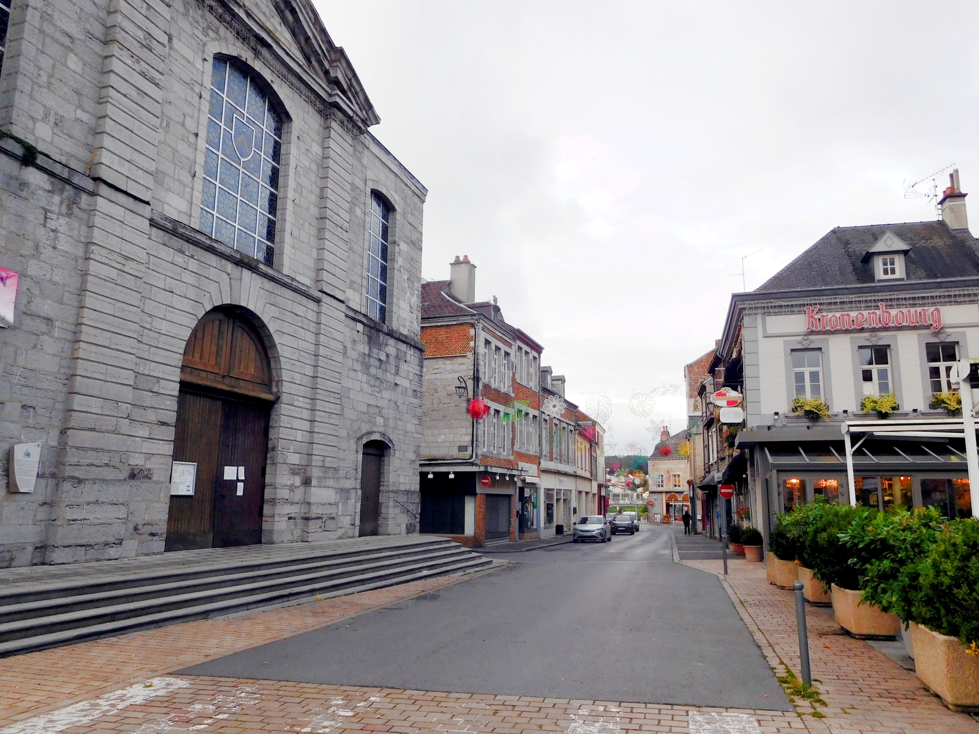 We had come in to Givet the back way, by the cemetery, and it had seemed very dull as we just dove into our hotel and holed up. This assessment of dull had been tempered a little, as we noticed that hard by the cemetery was the florist, and the seller of granite markers. Both seemed to have some pretty nice stuff on offer, so that was something. We also got to look at their wares a bit more, as we got lost and circled by their doors more than once.
