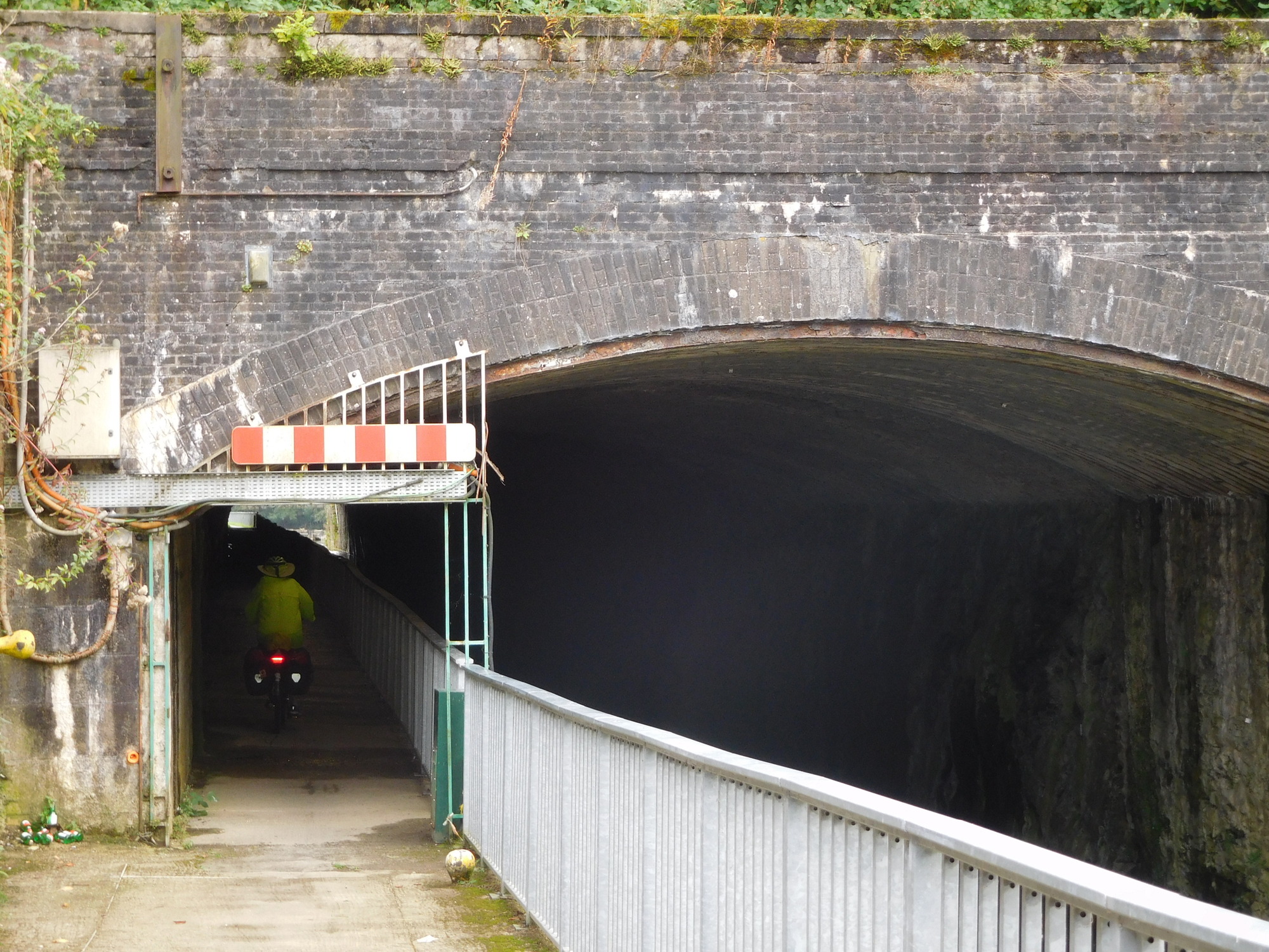 At Revin we encountered a tunnel that provided for both boats and bikes. It had some lights that turned on automatically, but it was still a bit scary-dark. Drippy too. It was 224 meters long, and built in the 1870's.