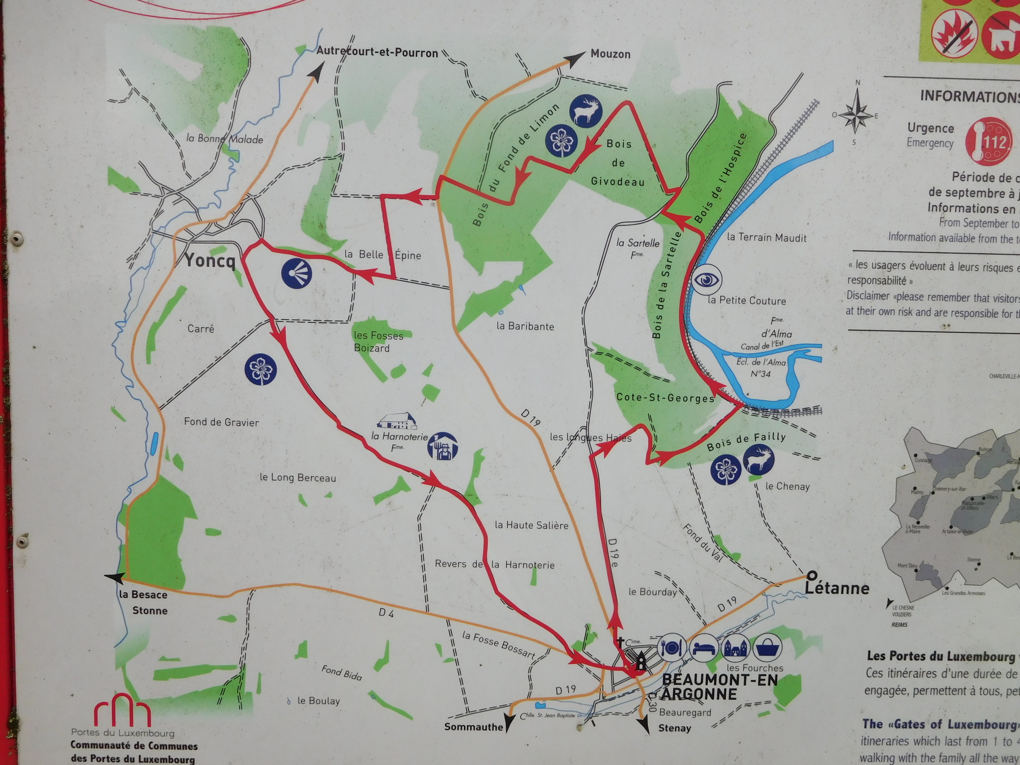 One place that did get our attention was Beaumont en Argonne. This was not so much for its closed 12th century Romanesque church, but for its claims to dozens of good hiking routes, out in the direction of Luxembourg. Not that we are hikers, but we thought, ooh, Rachael Anderson would like this. On the other hand, we spotted no hotels around, so the Andersons would be hard pressed to hang out and try the routes.