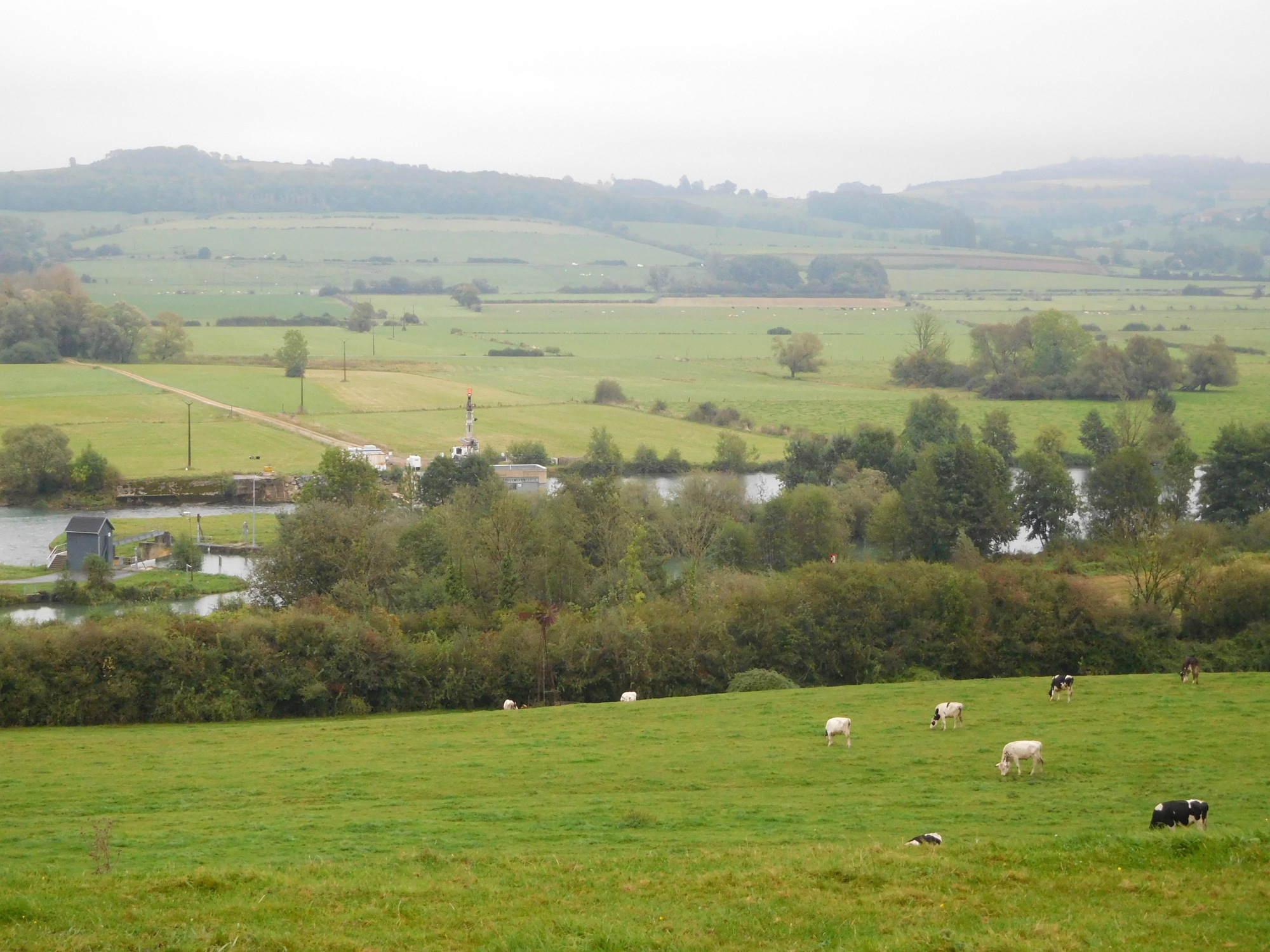 The fact that were on road did not mean that we were not following the Meuse, only that there was no path by the river. In the photo below, you see that we are up on a ridge, and can look down at the river.