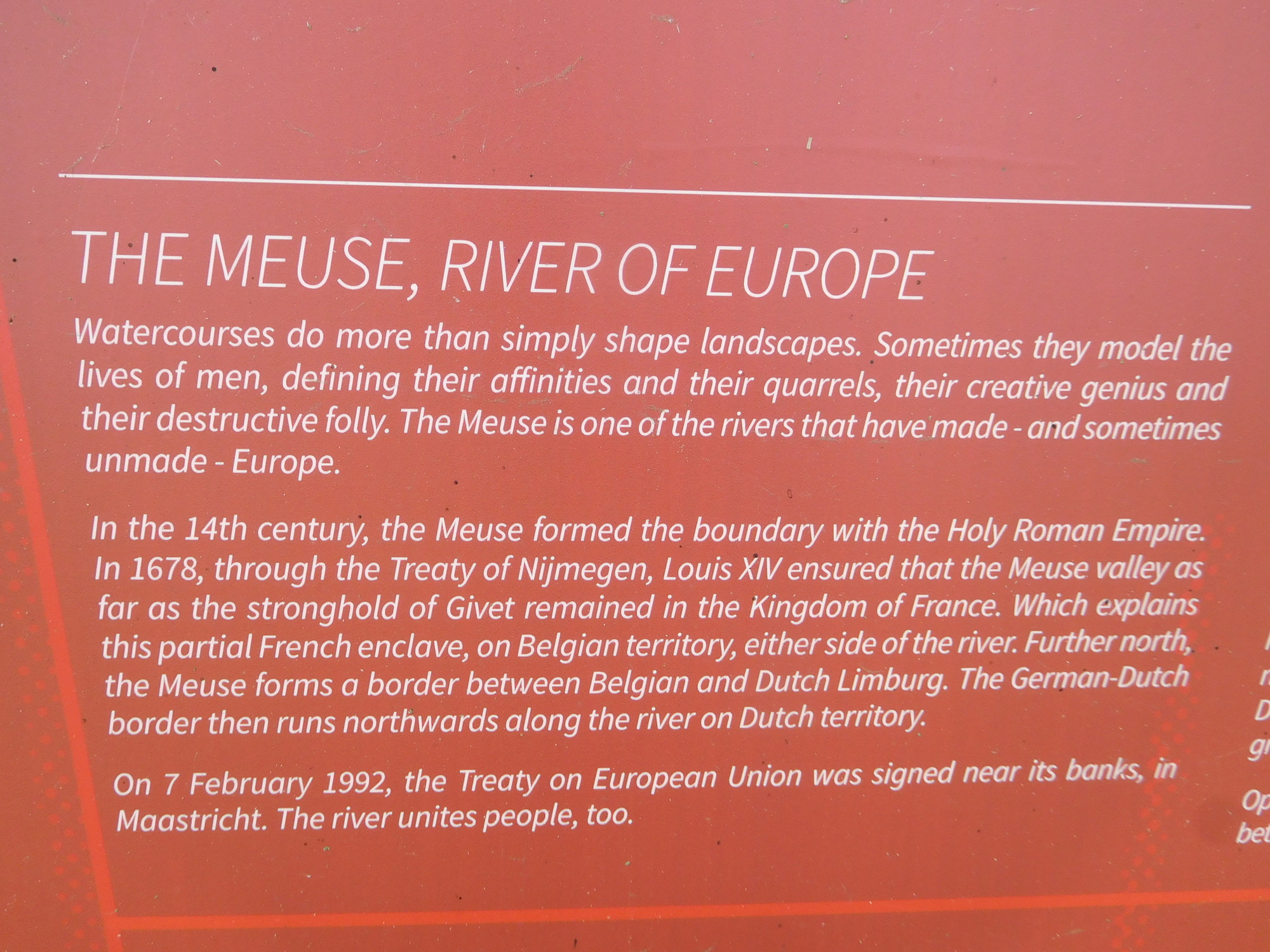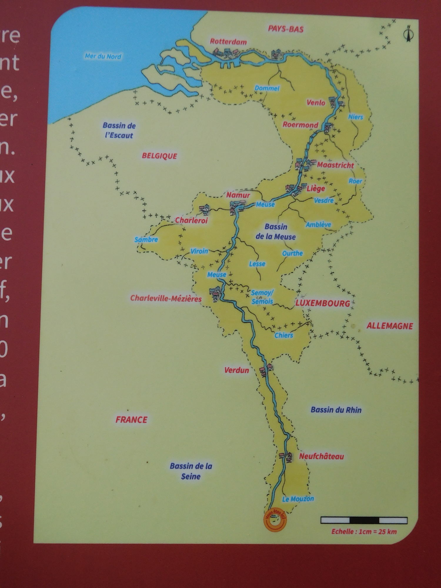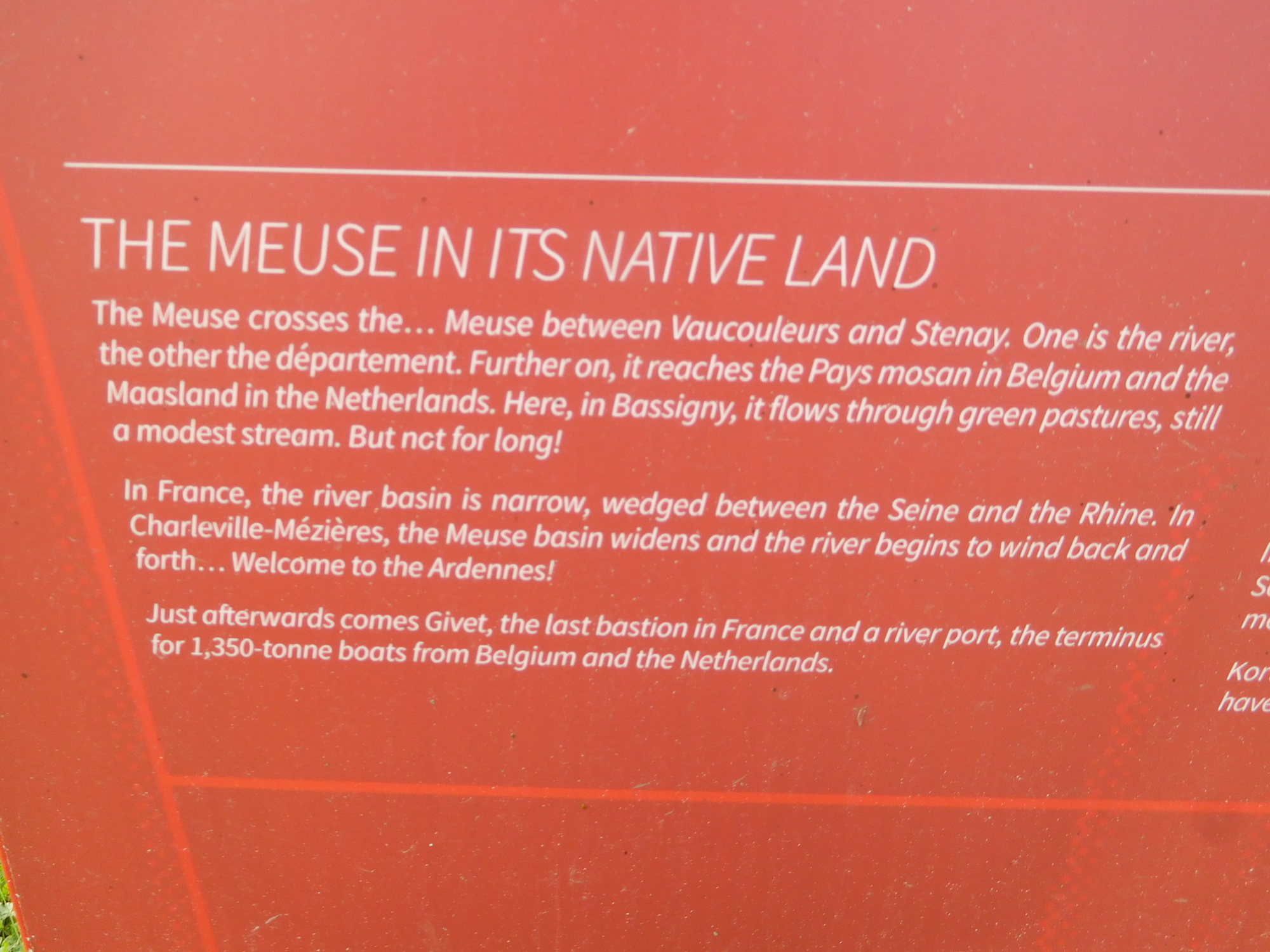 We were stoked from our encounter with the source of the Meuse, because it was an achievement to have cycled basically the whole thing. Also, at the source the three countries that the river passes through had put up a lot of signage, and also a very nice shelter with picnic table. This helped us a lot, as a place to eat our lunch and to prepare for the second half of the day's ride.