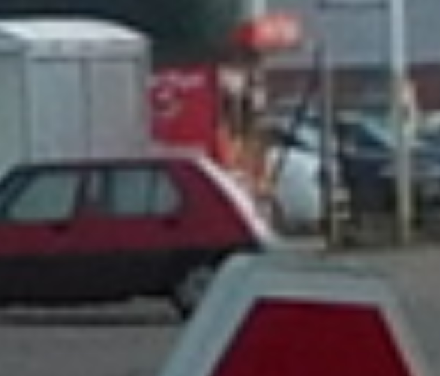 Next we passed the corner from which I had spied the pizza machine, the thing that had saved the evening (and the next morning) with its soggy underbaked delicacy. Looking from the corner and rolling through at speed, Dodie marvelled at how I had spotted the kiosk.m She got me to take a photo (below) showing exactly what I saw from my bike yesterday. Can you find the kiosk? Dodie can spot a fox in a field at 600 feet. But if you need a bakery, or a pizza at distance, I'm your man!