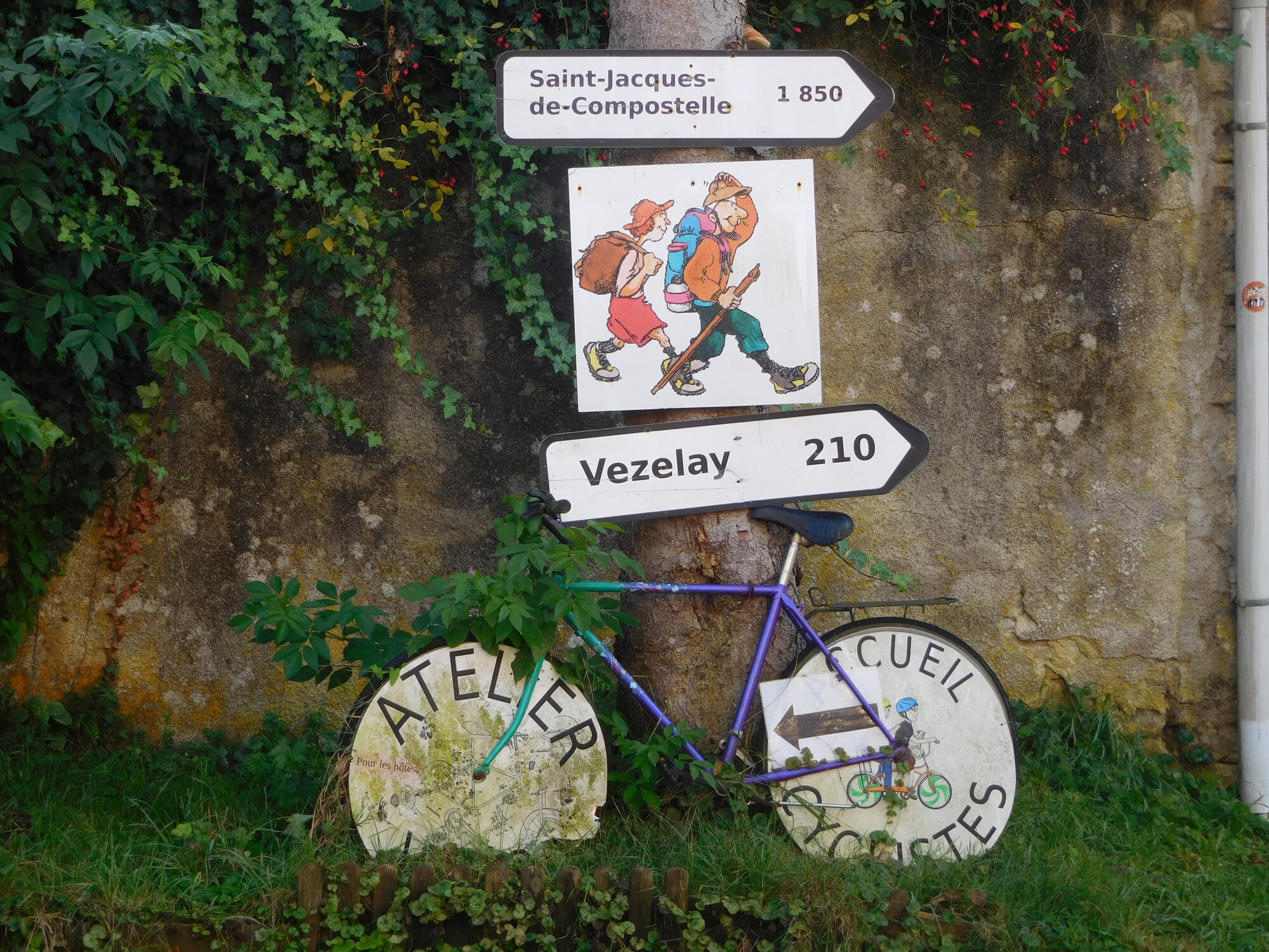 We were reminded that we are on one of many "Camino" routes here, by the welcome sign of a cyclist and pilgrim friendly gite. It was nice to see, because really being a cyclist or even a walker here is a lonely occupation.