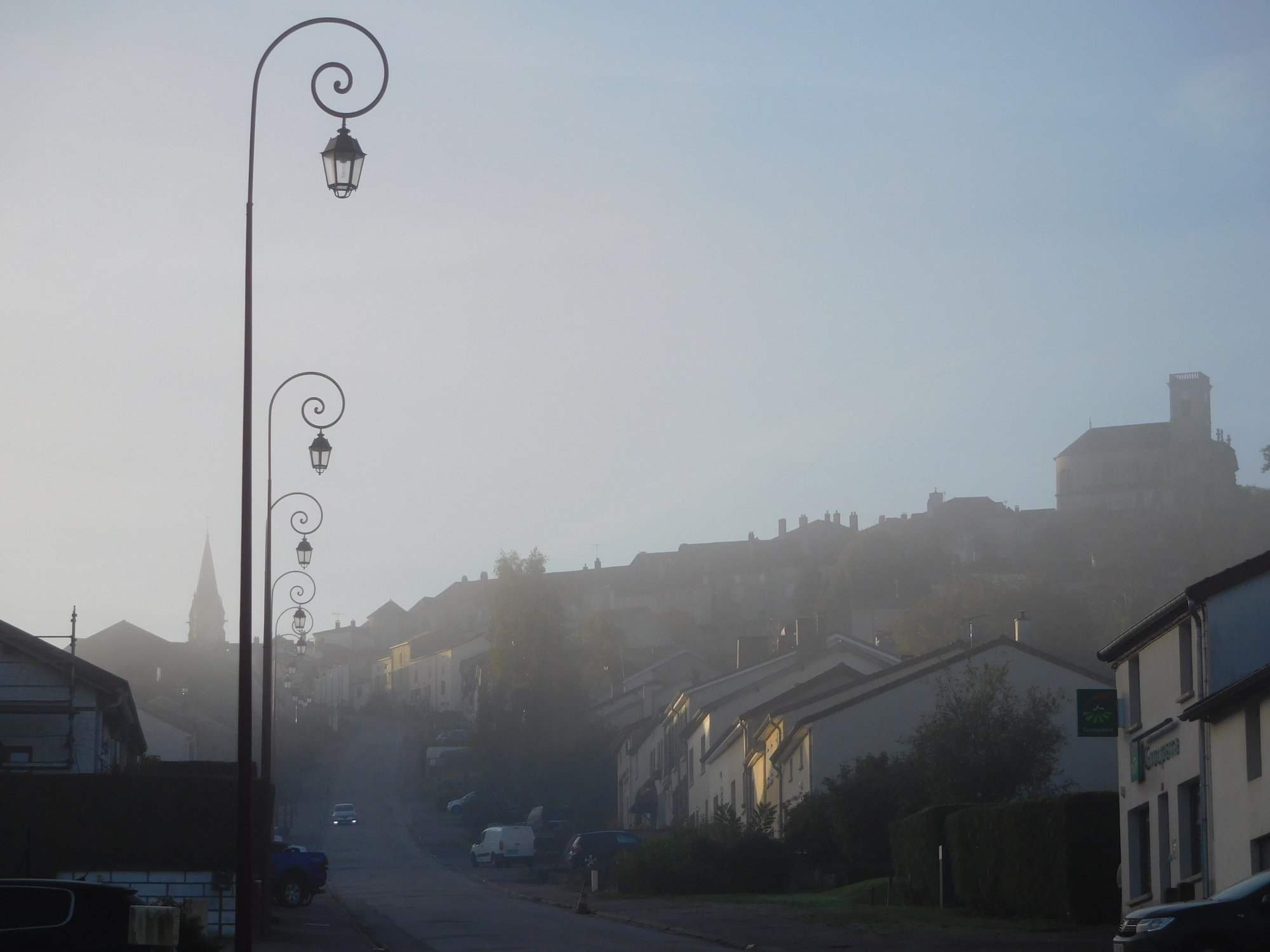 Next we looked up, to the fortified town of Bourmont. Dodie thought it looked magical in the misty cold. I thought it looked up, and cold!