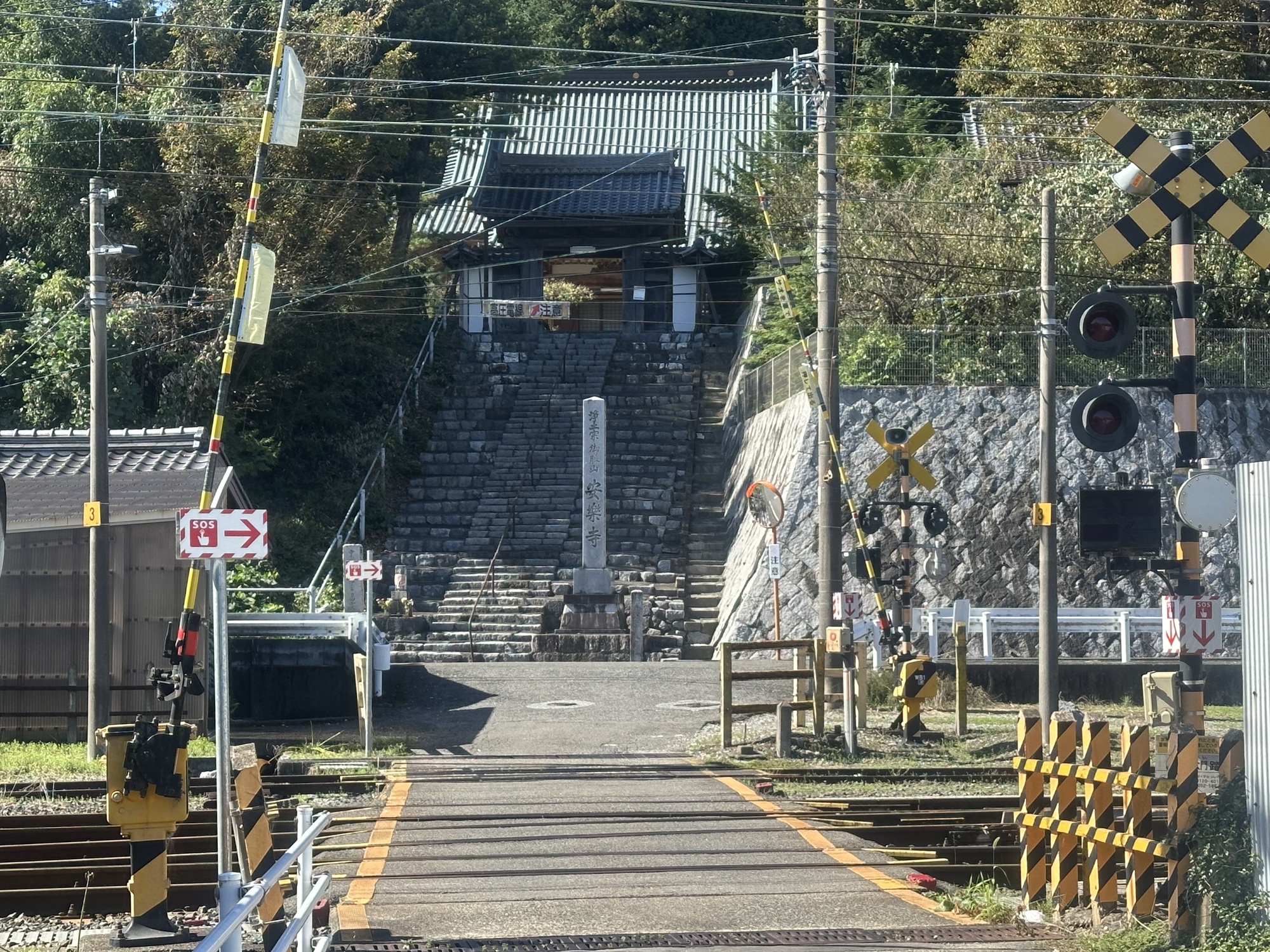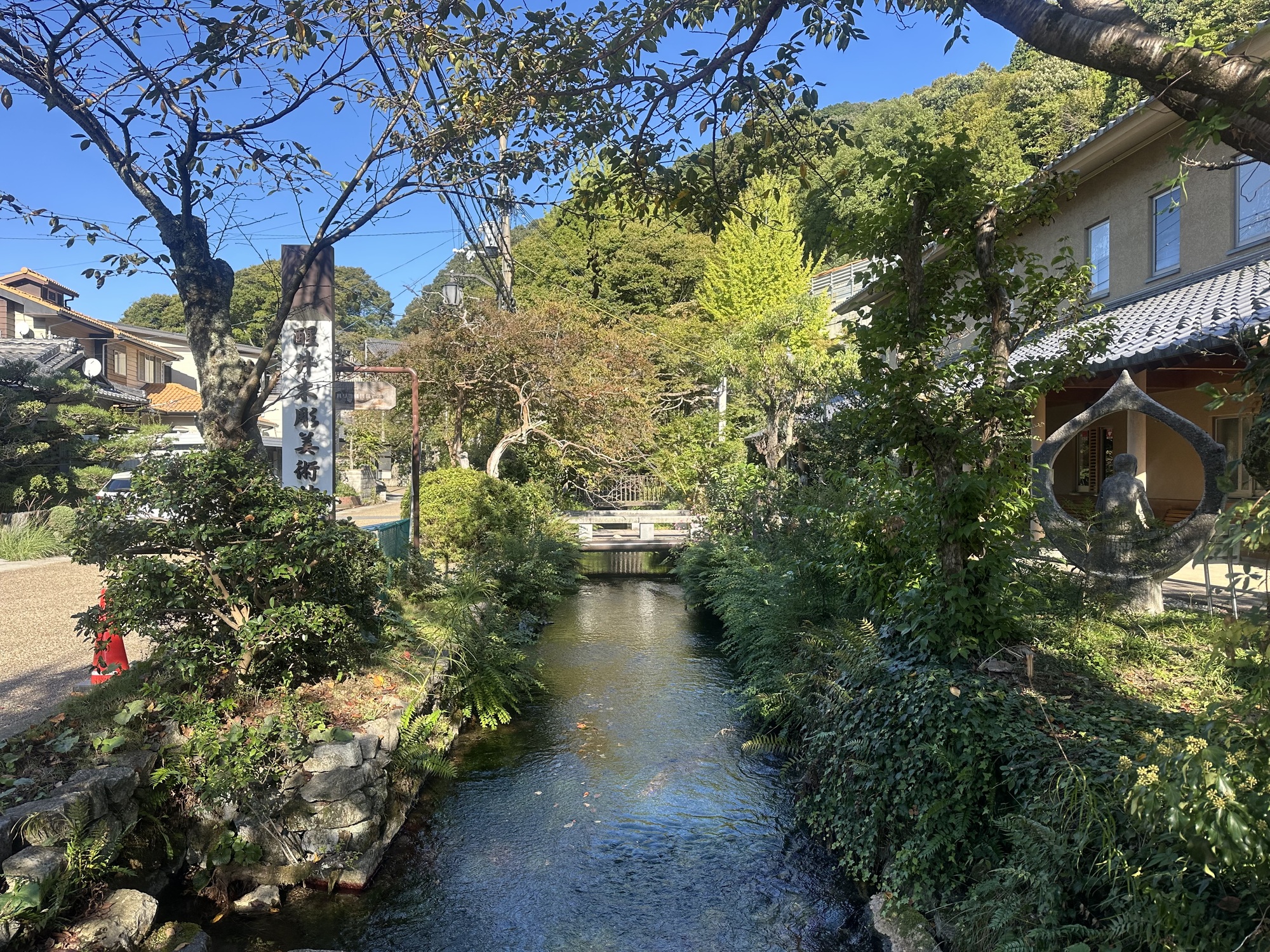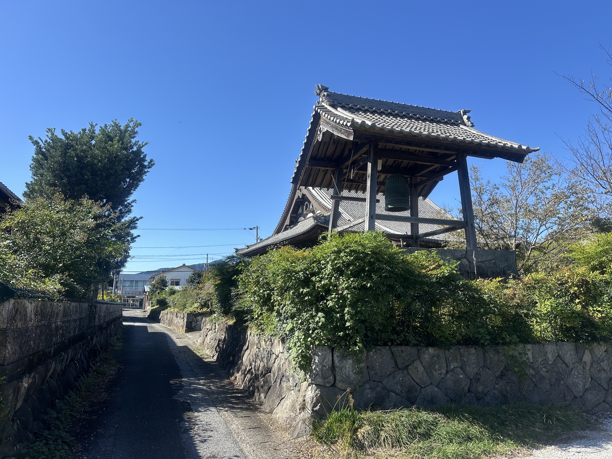 The afternoon brought us back onto the Nakasendo trail and through more post towns. We stopped in one very lovely post town with a stream running along the road all through the historic area. There was a large temple or shrine area, with a rambling garden that we rambled about in for a while. It was all very idyllic in the sunshine — unfortunately it was also basically underneath a big expressway, which is likely why it is not as big a tourist draw as the more isolated mountain post towns. But it was very quiet and bucolic, just us and two older Japanese men who were extremely interested in photographing the plant life in the roadside stream — I kept waiting for the splash when one of them went in headfirst, but no such luck