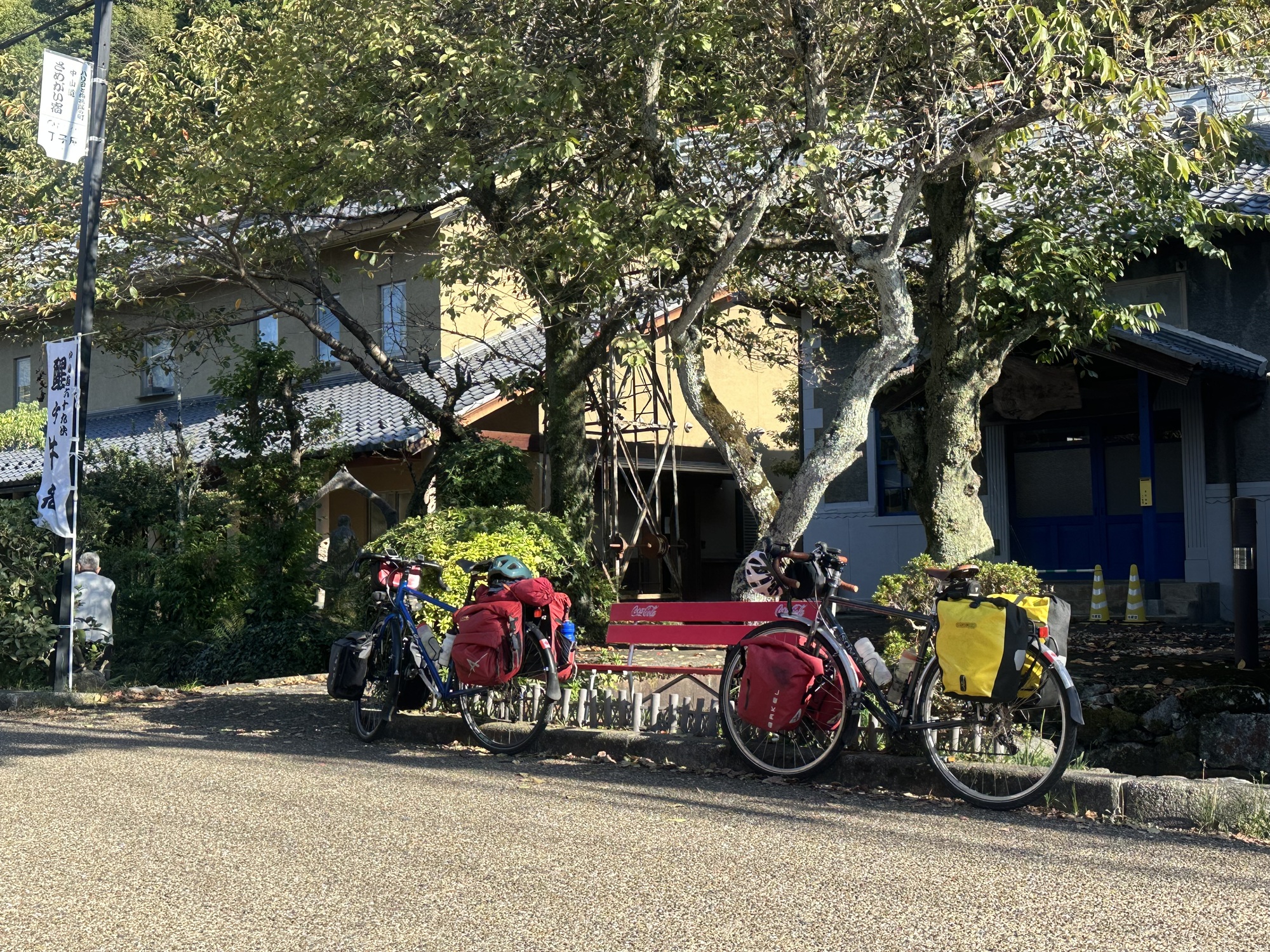 We found the hotel eventually, but it seemed to be an abandoned building. A small handprinted sign with “guesthouse” and a shaky arrow led us into a back parking lot, where there was a somewhat less decrepit building, a lot of laundry, and random garbage strewn around . Tom was supposed to have received an email with a key code so we could unlock a room door, but it hadn’t arrived. The sun was setting, it would be dark in a few minutes. In many other places in the world, a setup this deeply sketchy would have me on high alert, but somehow in Japan you just have faith that it’s going to be okay. And it was.