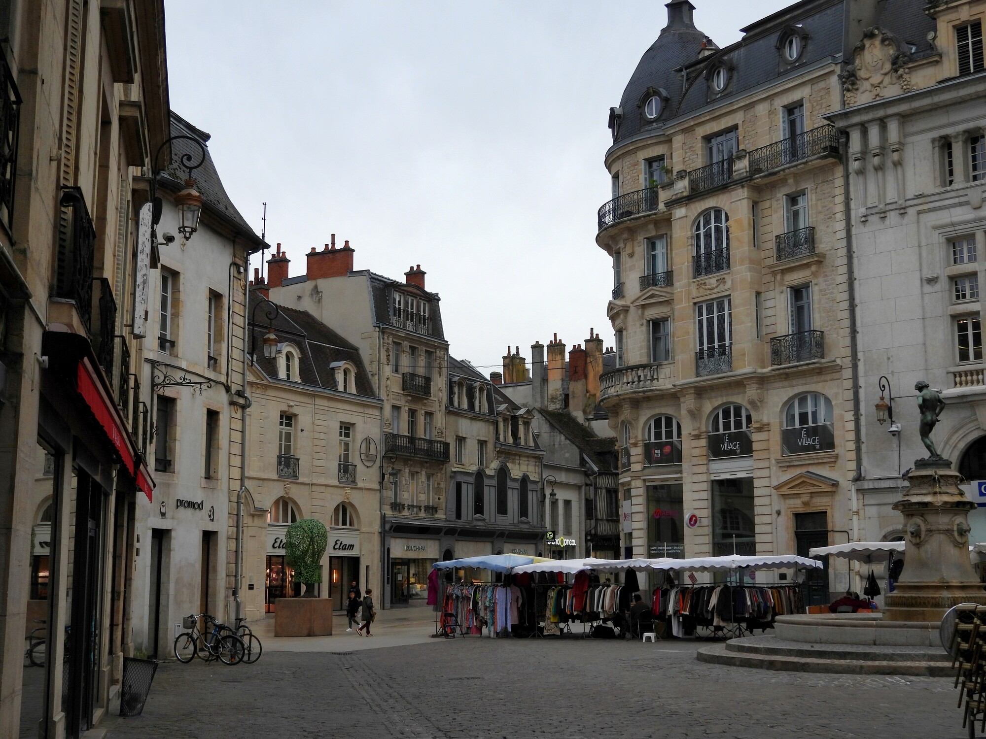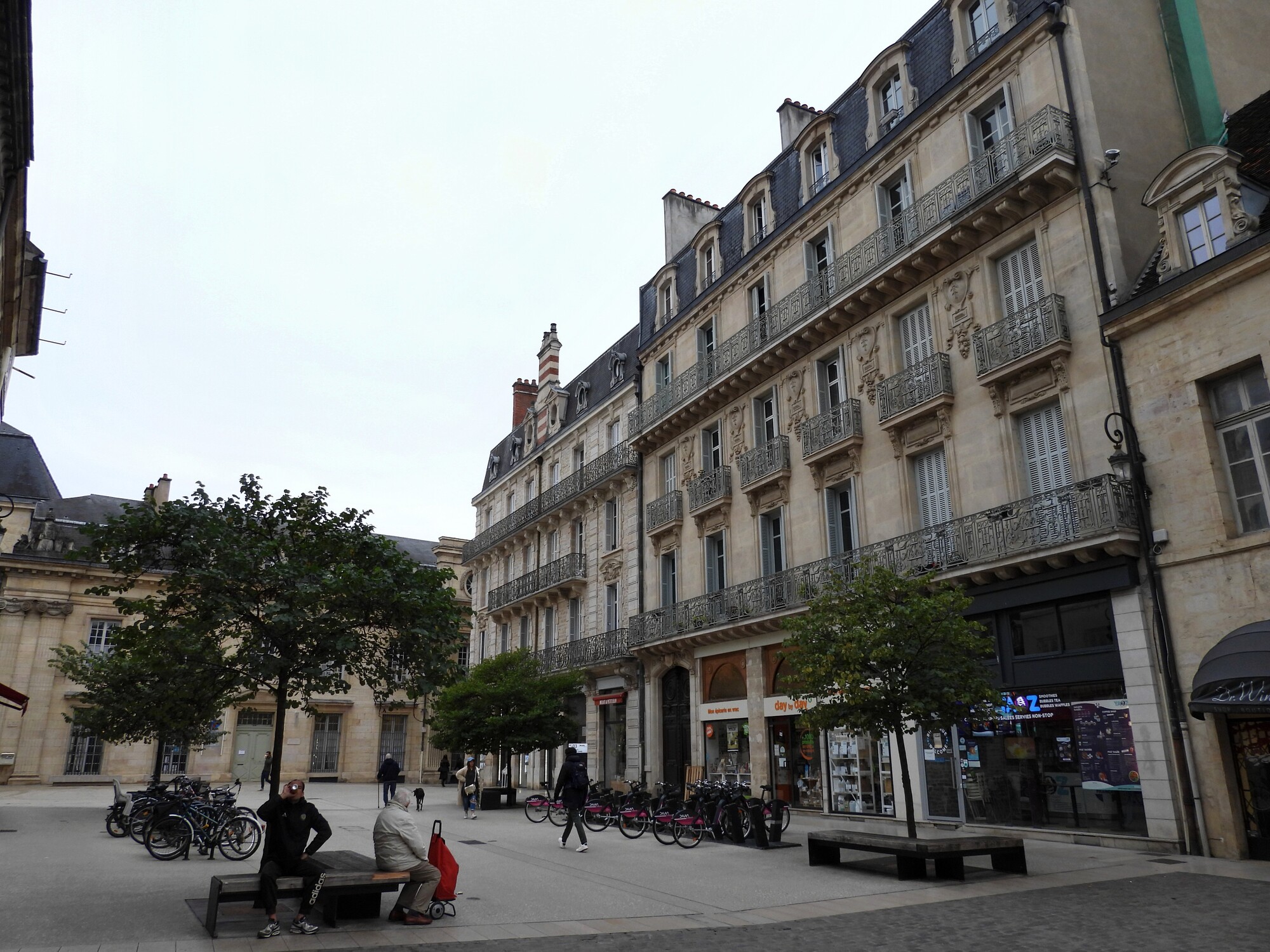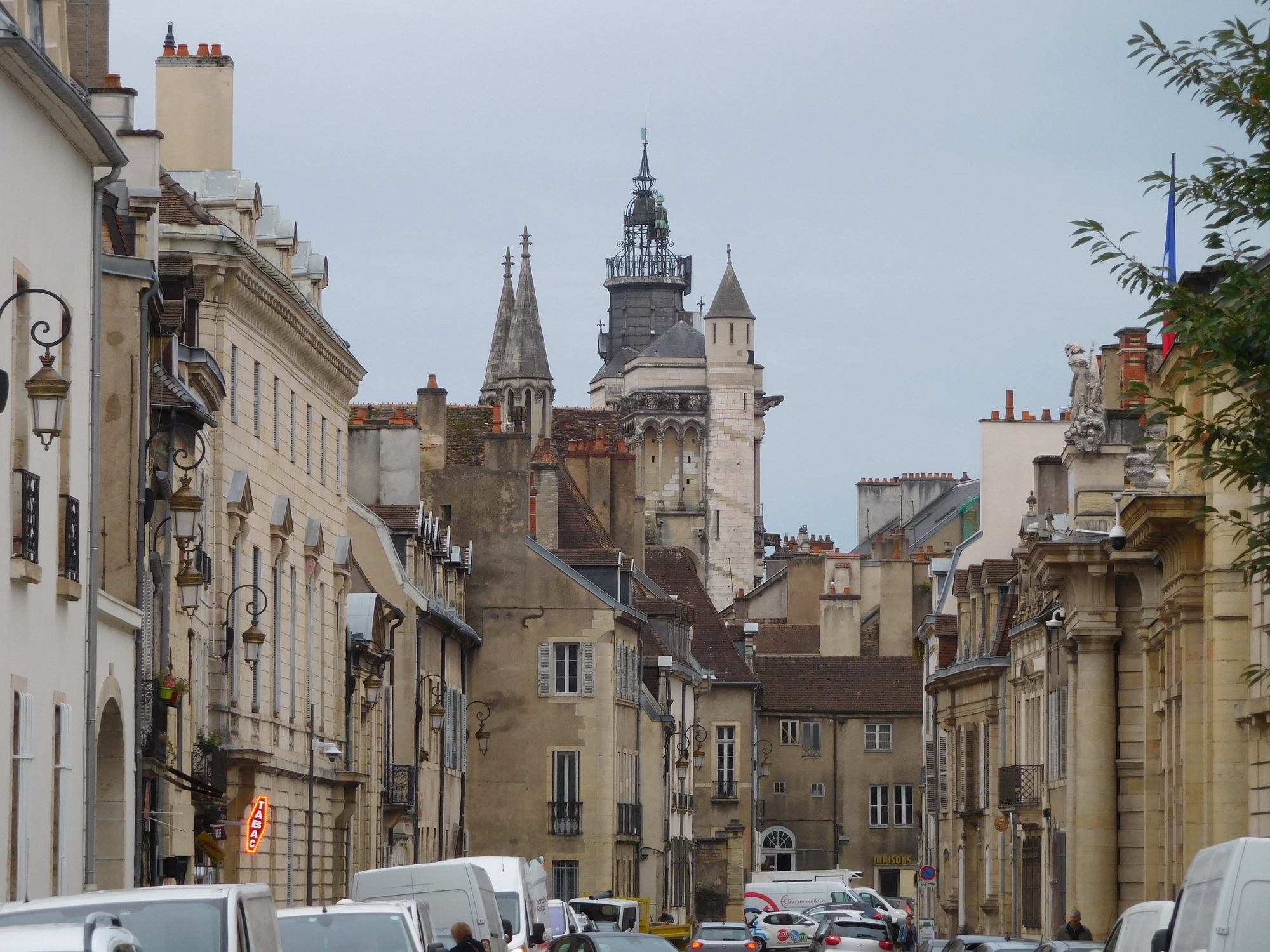 Dijon is definitely not as stylish as Paris or Lyons, but it is a big step up from Langres. The buildings are still white or gray concrete or stucco, but they have great windows, balconies, and quite a few turrets and towers.