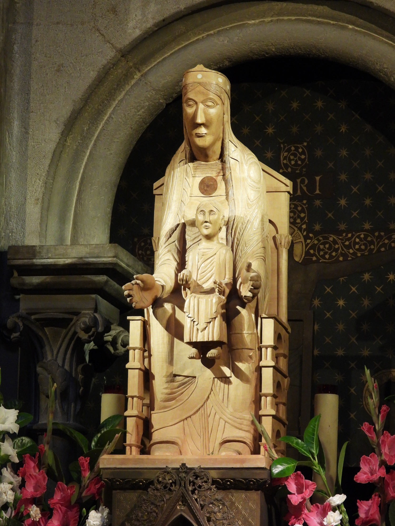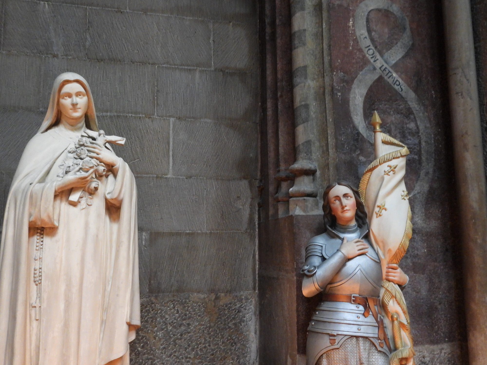 This is a special feature of this church. It is called Notre Dame de Bon Espoir (Our Lady of Good Hope). This was mistakenly called a Black Virgin, of which we have seen some around Europe, but it got a scrubbing in 1963 and turned white. Some kind of a reverse Kamala Harris development? The church pamphlet goes on to describe the implications and virtues of the rather non standard appearance of the statue, like something about her thick neck? Dunno.