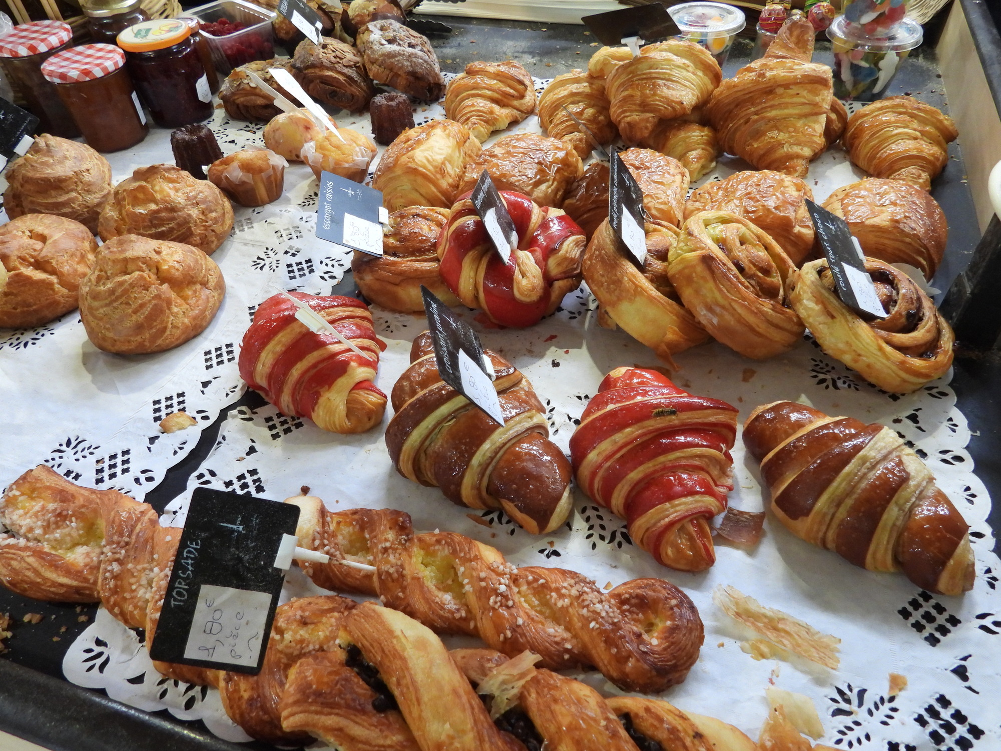 One other loose end - our big mission to find a kettle. There are indeed kettles for sale here in downtown. We stopped in and looked at them at four or five stores, including my fav, the electronics shop FNAC, and the high end kitchen store Alice Délice. Mostly the kettles were too big, at 1.7 litres (we need a little 1 litre one) or they were stainless steel high quality and too heavy - we need light and cheap plastic. Oh, one other thing, these French folks do not seem to understand "bouilloire", at least the way I say it. I would go into a store and ask about a "bouilloire", and get a quizzical look from someone who would then call over their smarter colleague. I in turn would call in Dodie, and now we're (they're) talkin! That of course, did not mean they would have the simple thing we were searching for!