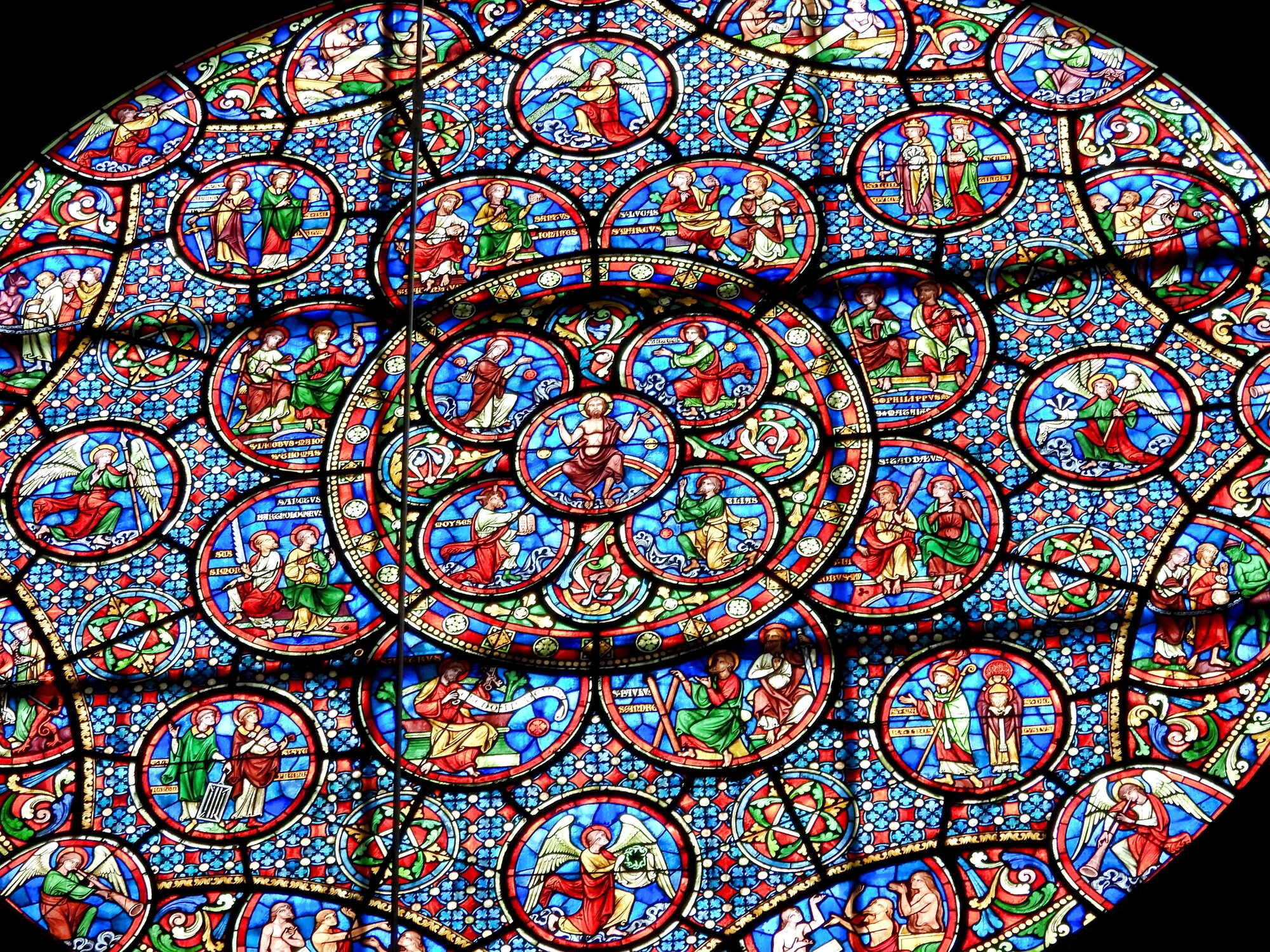 Rose windows depict the beginning of the world, for one, and the end of the world on the other. You need a really detailed map to figure out what it is all about.