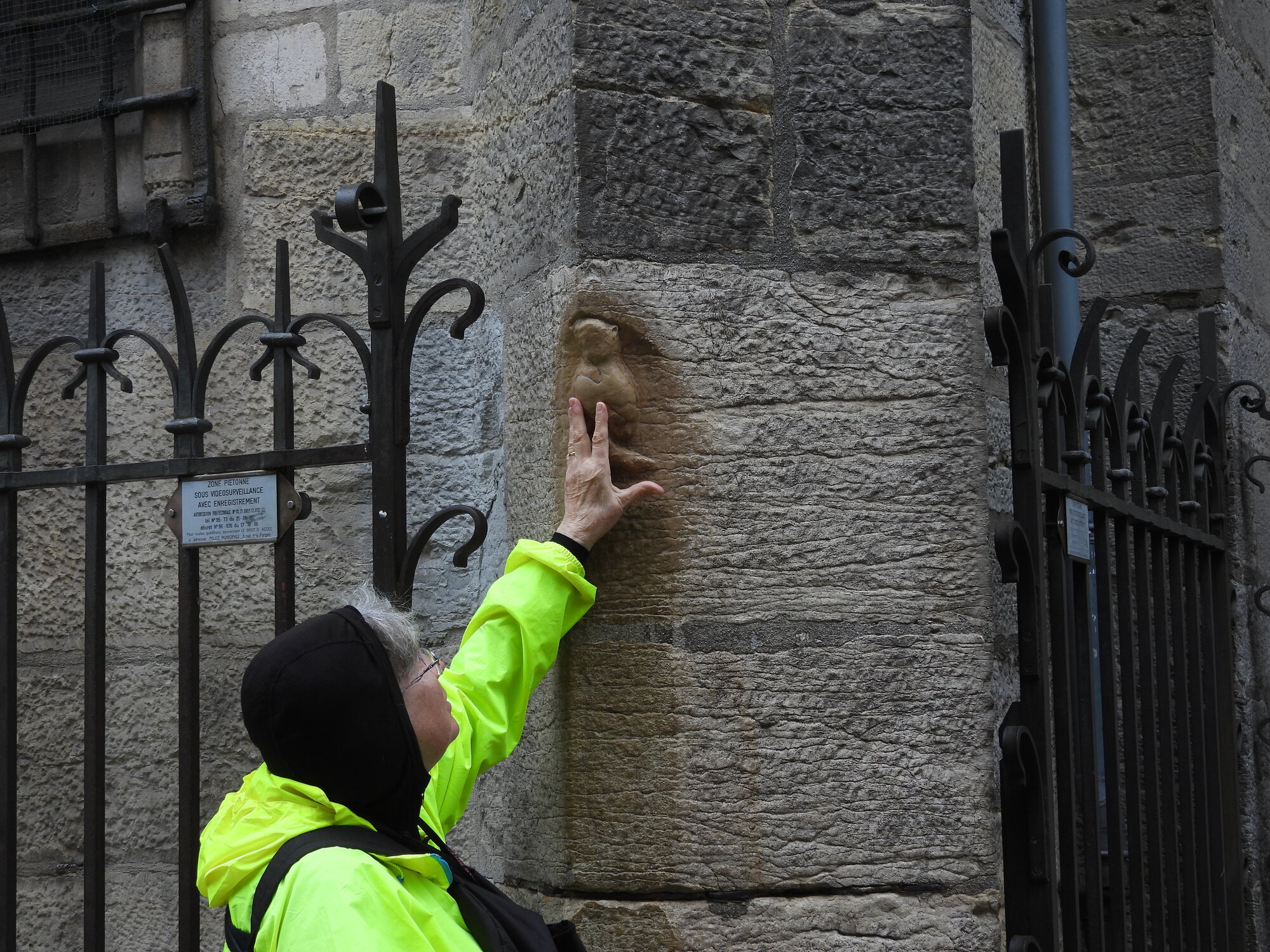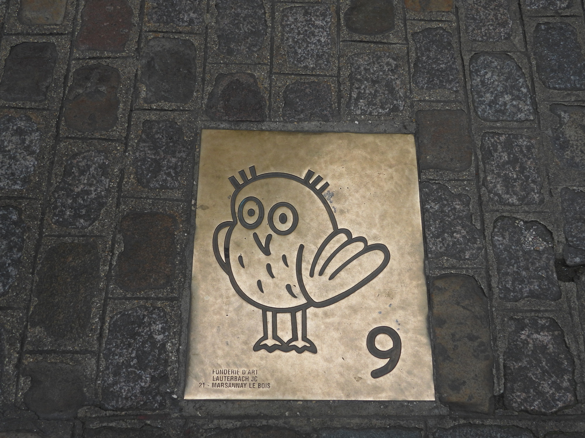 One the outside is a sculpted owl, La Chouette, It is claimed that if you touch it with your left hand, your wish can be fulfilled. The owl has become the icon of the city, and brass inserts in the sidewalks actually guide you to it.