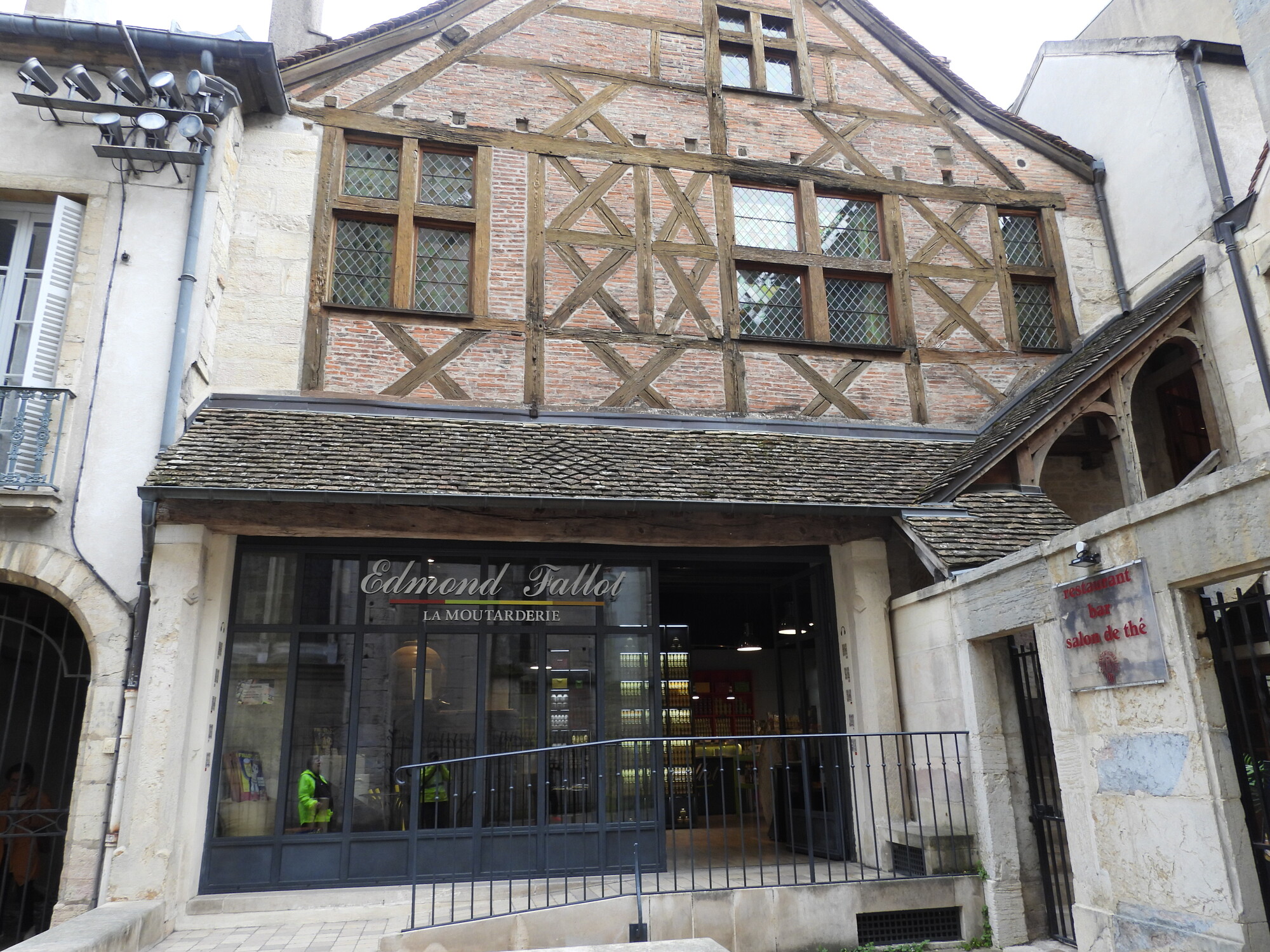 This is Maison Milliere, a five century old little complex that includes the half timbered section featured in this photo. We are going in to look at the mustard store.