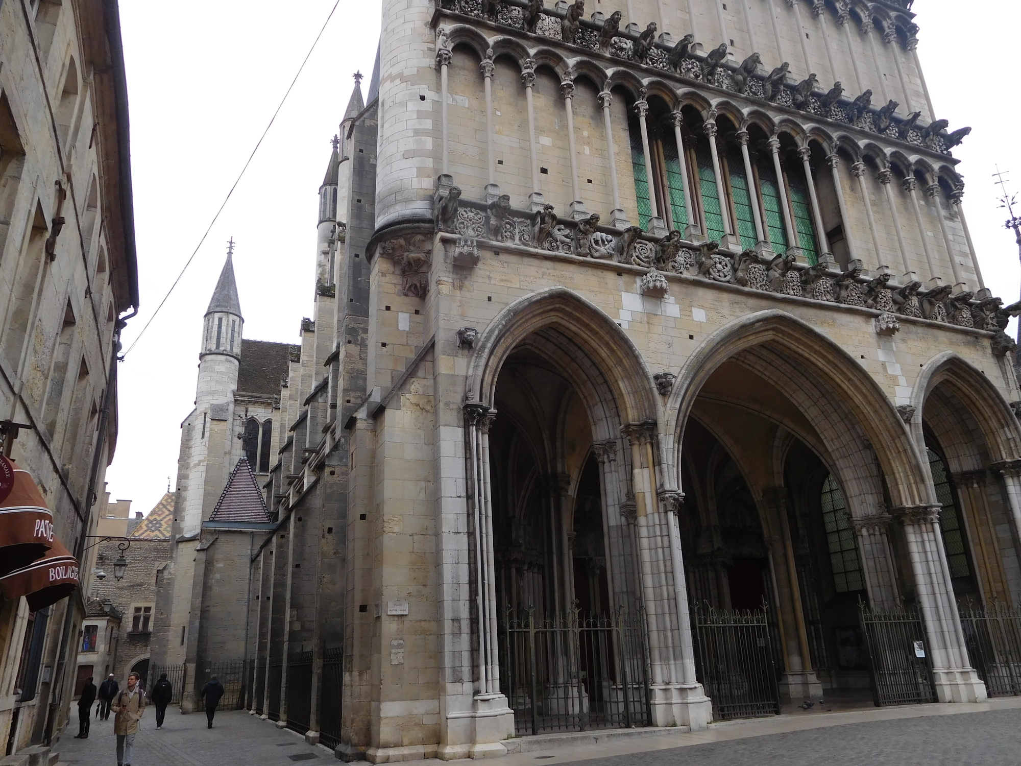 Our first destination was the cathedral, which is called Saint-Benigne de Dijon, but our feet took us toward Notre Dame de Dijon. We didn't quite recognize our error, and we continued to walk, absorbing the buildings round us. (We were not absorbing the people, or other stuff, because who is up at this hour other than Grampies and dog walkers!).