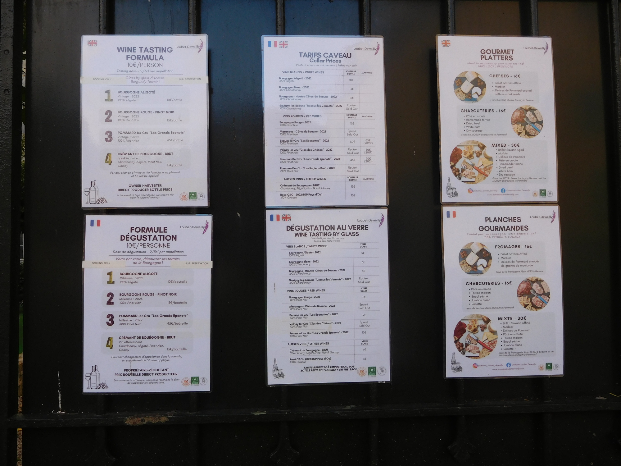 Below is an example of one of the tasting and restaurant domaines, of which there were scads. If you are interested, the menus are legible idf blown up a bit. But here is one takeaway, 10€ can buy a bottle of local wine. That could be competitive with local Coca Cola prices!